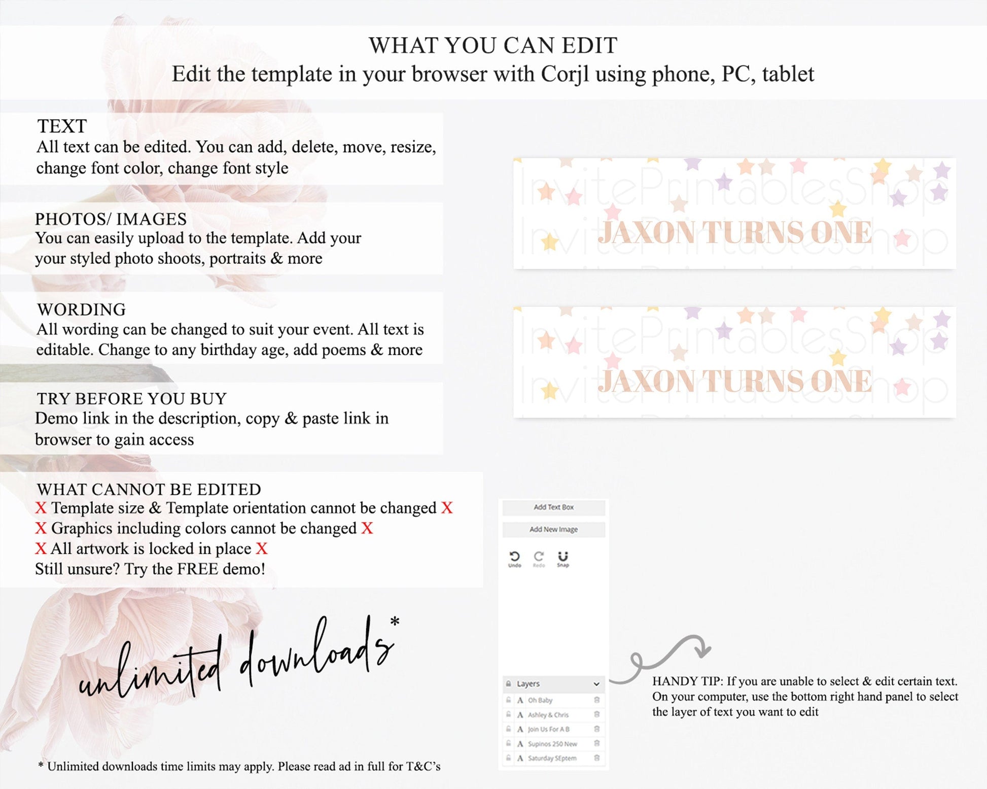 Twinkle Stars Water Label Template Pastel Twinkle Little Star Party Decor Shooting Star Confetti 1st Birthday Baptism Baby Shower D10810