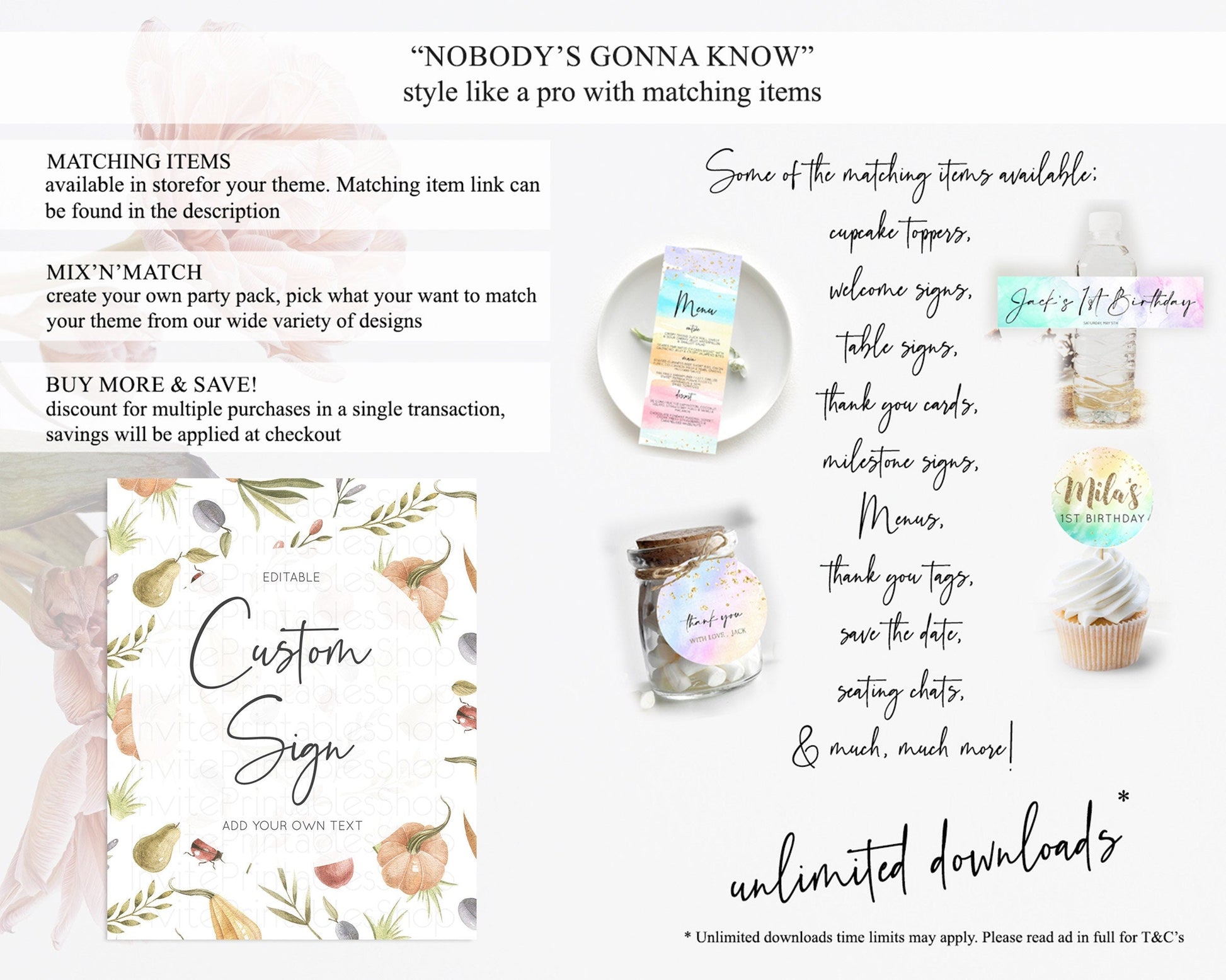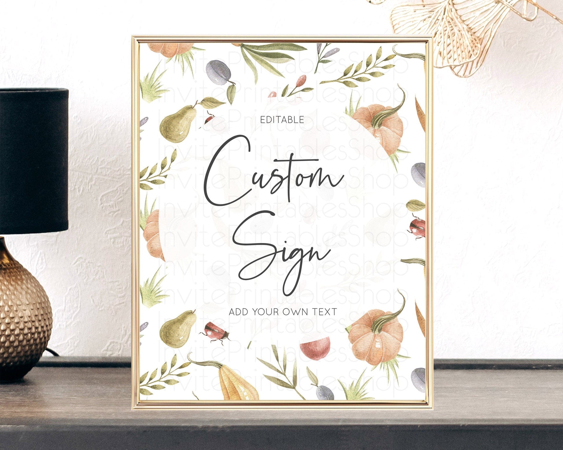 Vegetable Garden Table Sign Decor Pear Ladybug Plum Pumpkin Country Homestead Party 1st Birthday Baby Shower Wedding Baptism 8x10 D10543