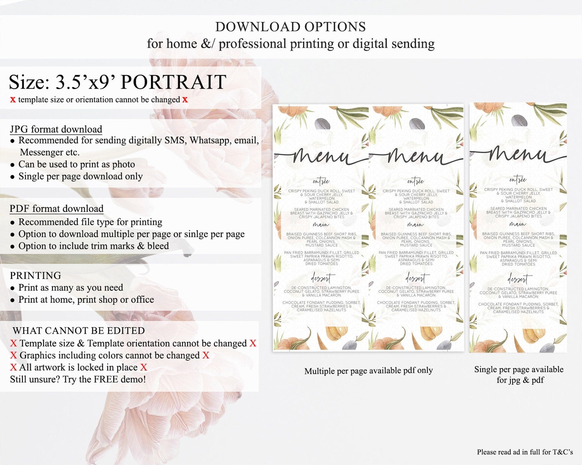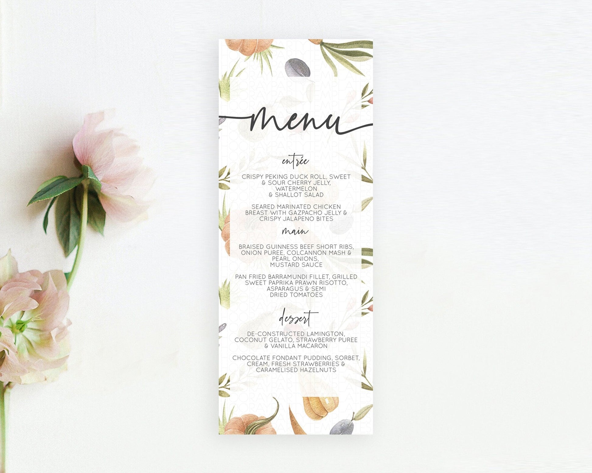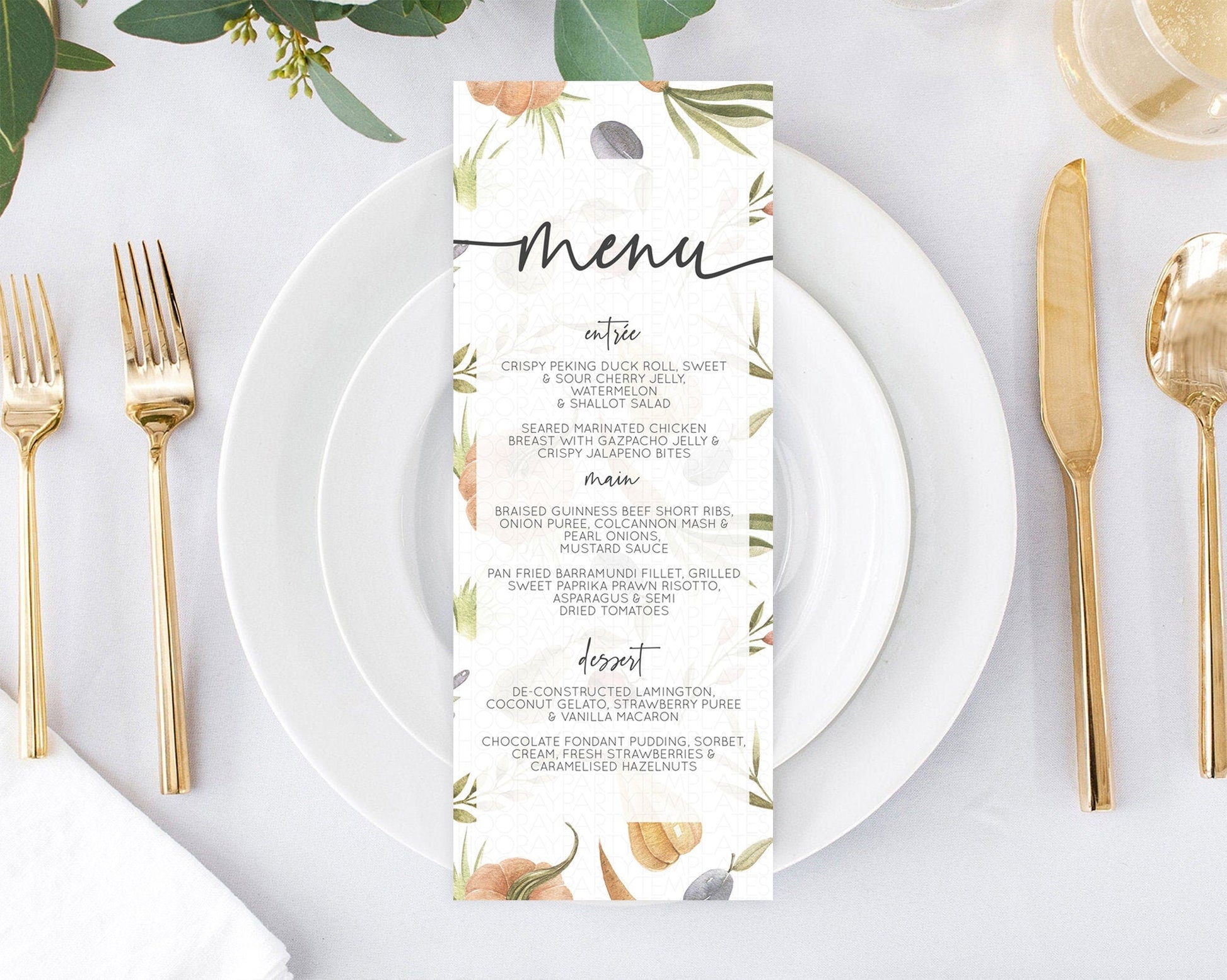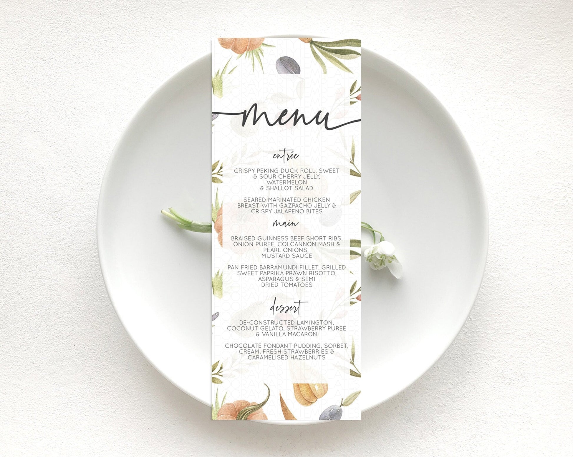 Vegetable Menu Template Pear Ladybug Plum Pumpkin Table Decor Vegetable Country Garden Farm Decor Dinner Dessert Party Food Menu D10543
