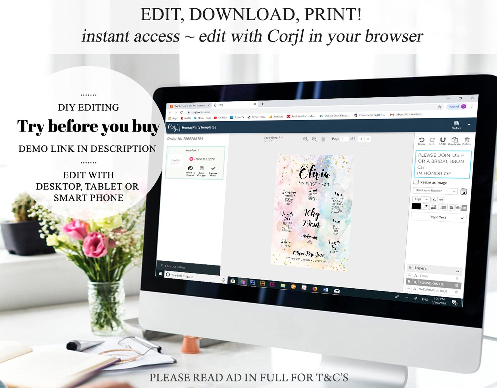 • You edit/ DIY editing. Edit online with Corjl in your browser using your desktop or smartphone