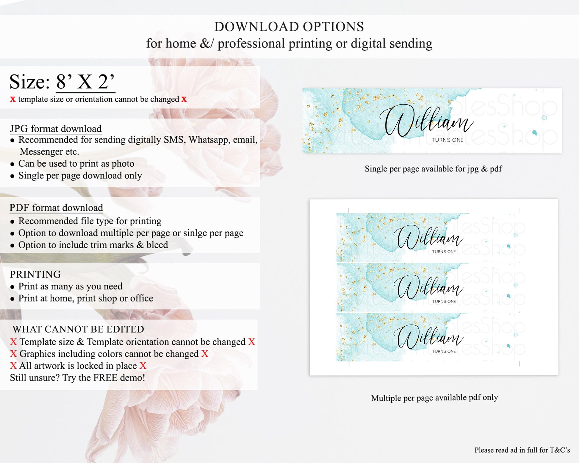 Copyright © 2023 by InvitePrintablesShop PTY LTD All rights reserved. This file or any portion thereof may not be reproduced or resold without the express written permission of the publisher (including edits to the design). Our files are provided as high-resolution PDFs – the end result is dependent upon the printer and paper used. If using a professional printing company, InvitePrintablesShop are not responsible for their specific printing requirements, paper or colour quality. Any changes required to the template are not included with your purchase – the files come as described in the listing only and cannot be changed.