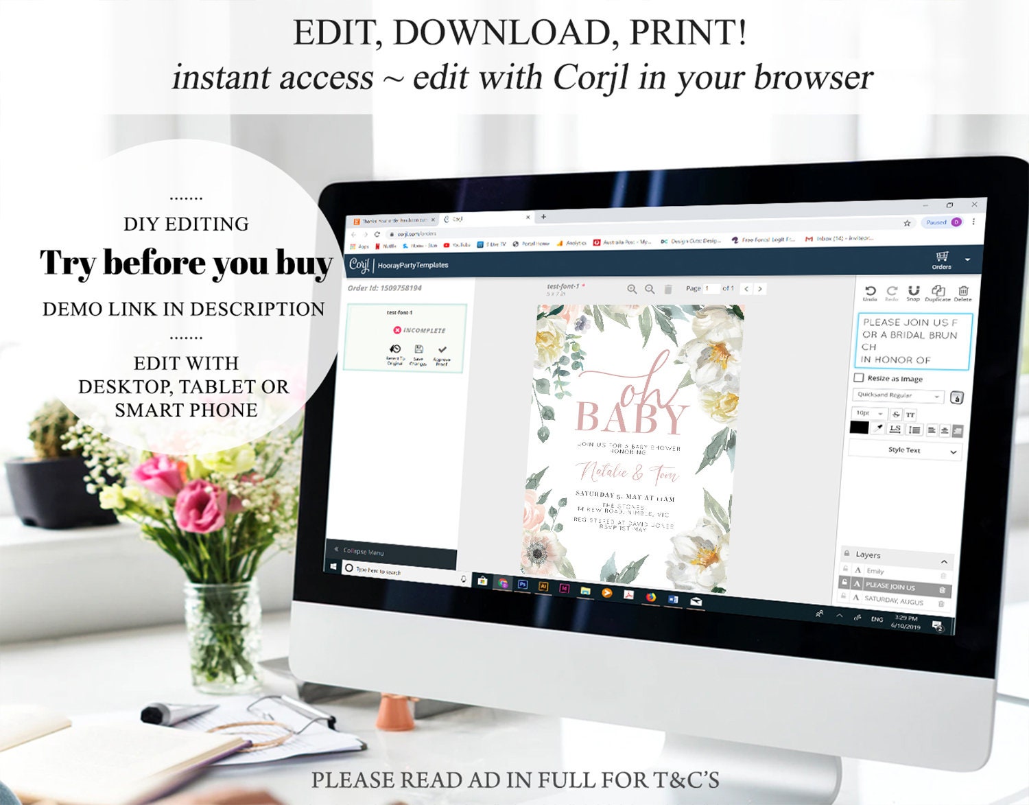 • After purchase, Corjl emails your editing link. Allow up to 15 minutes for delivery.