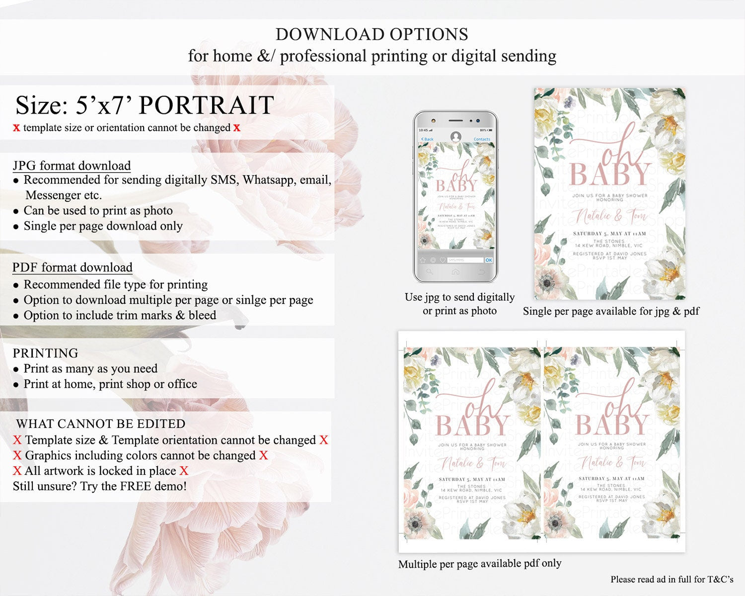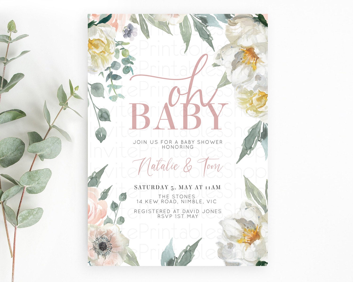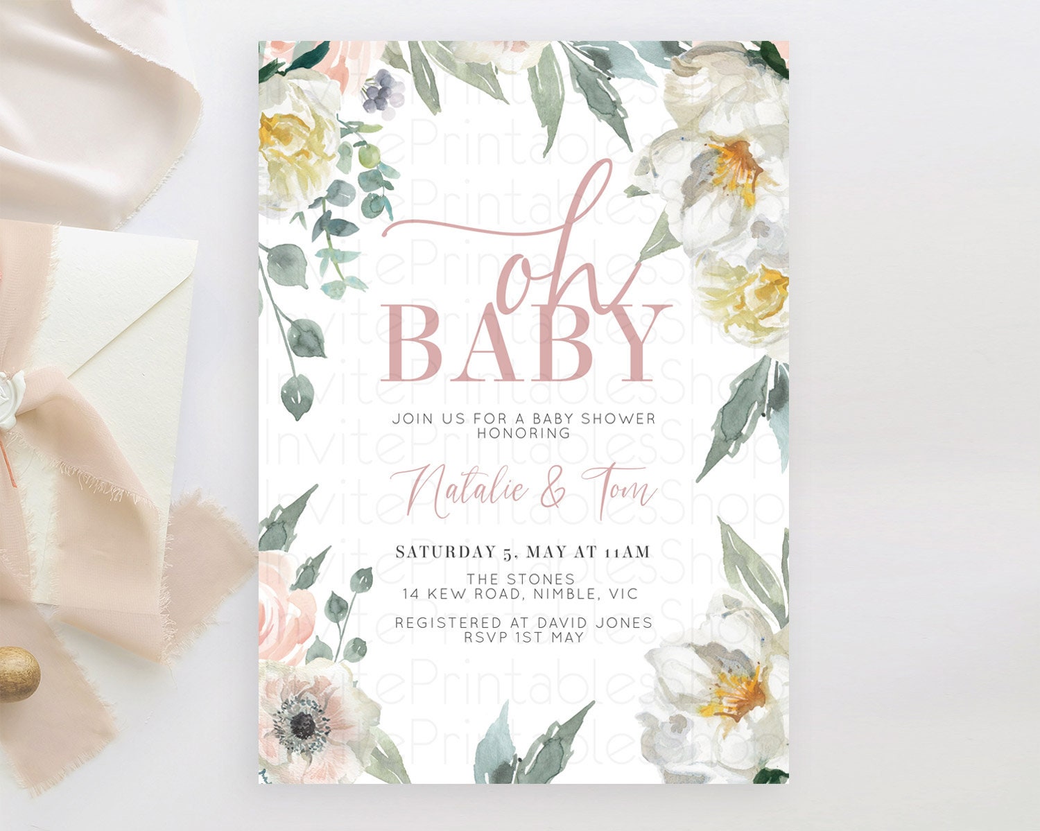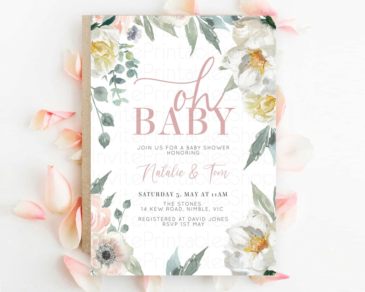 Wildflower Baby Shower Invitation Secret Garden Baby Shower Invitation Pastel Flowers Invite Enchanted Garden Shower Floral Theme D10121