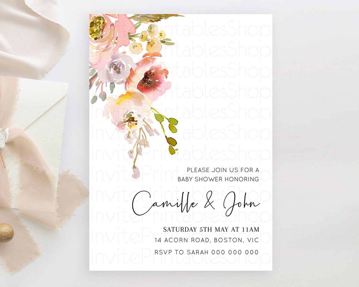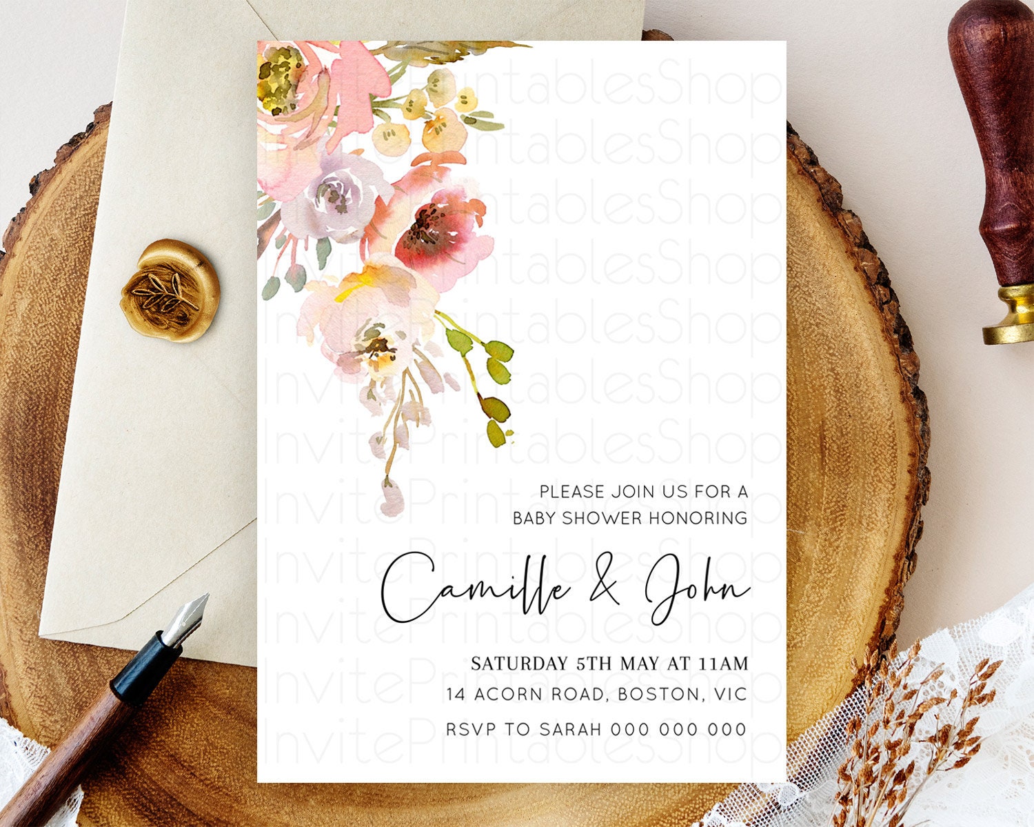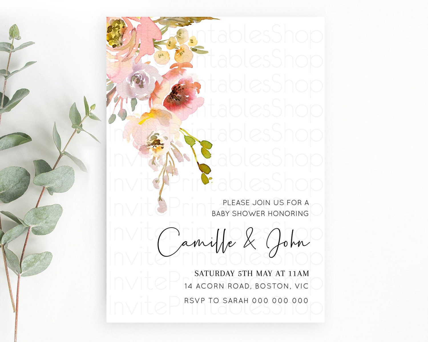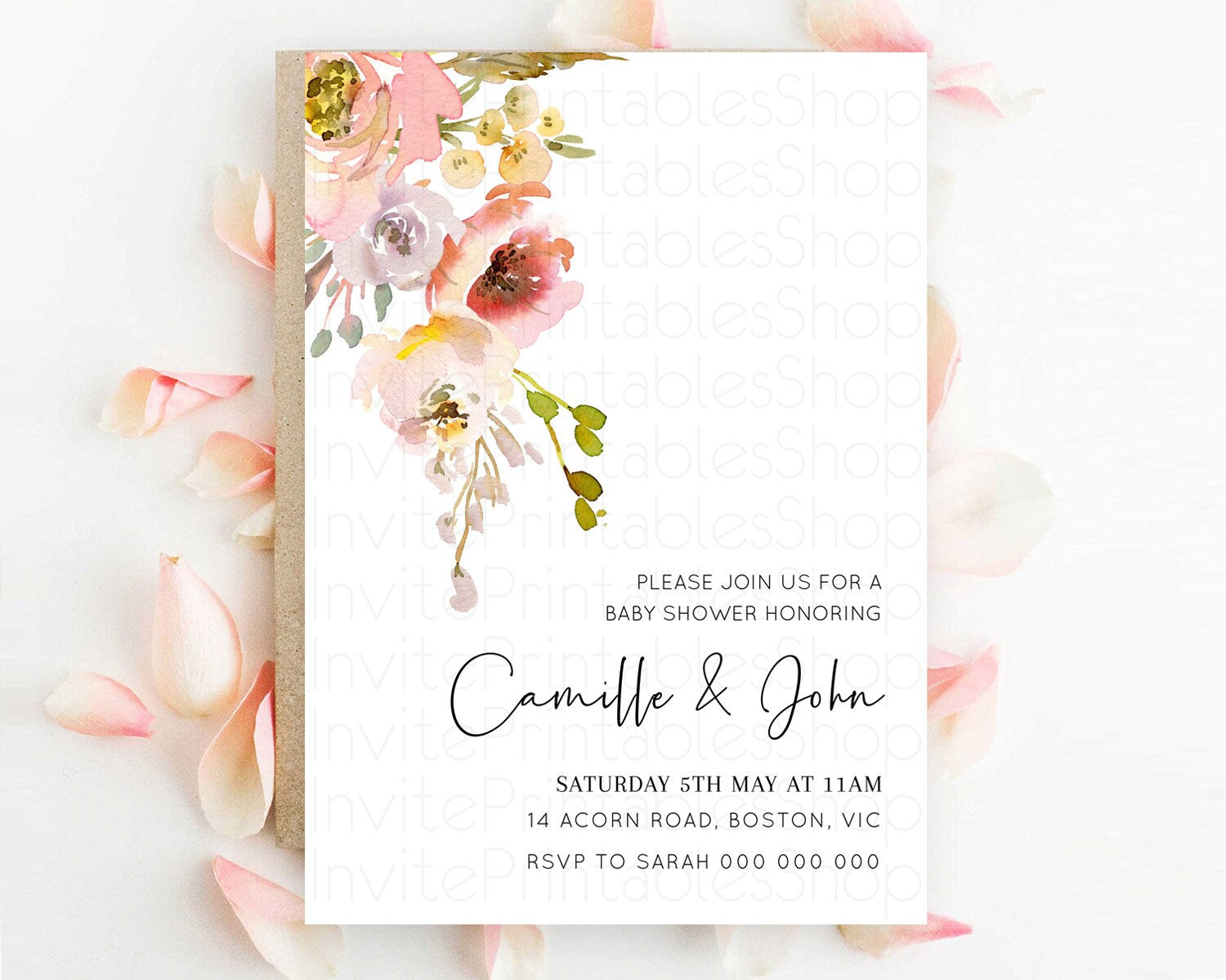 Wildflower Baby Shower Invitation Secret Garden Baby Shower Invitation Pastel Flowers Invite Enchanted Garden Shower Floral Theme D10194