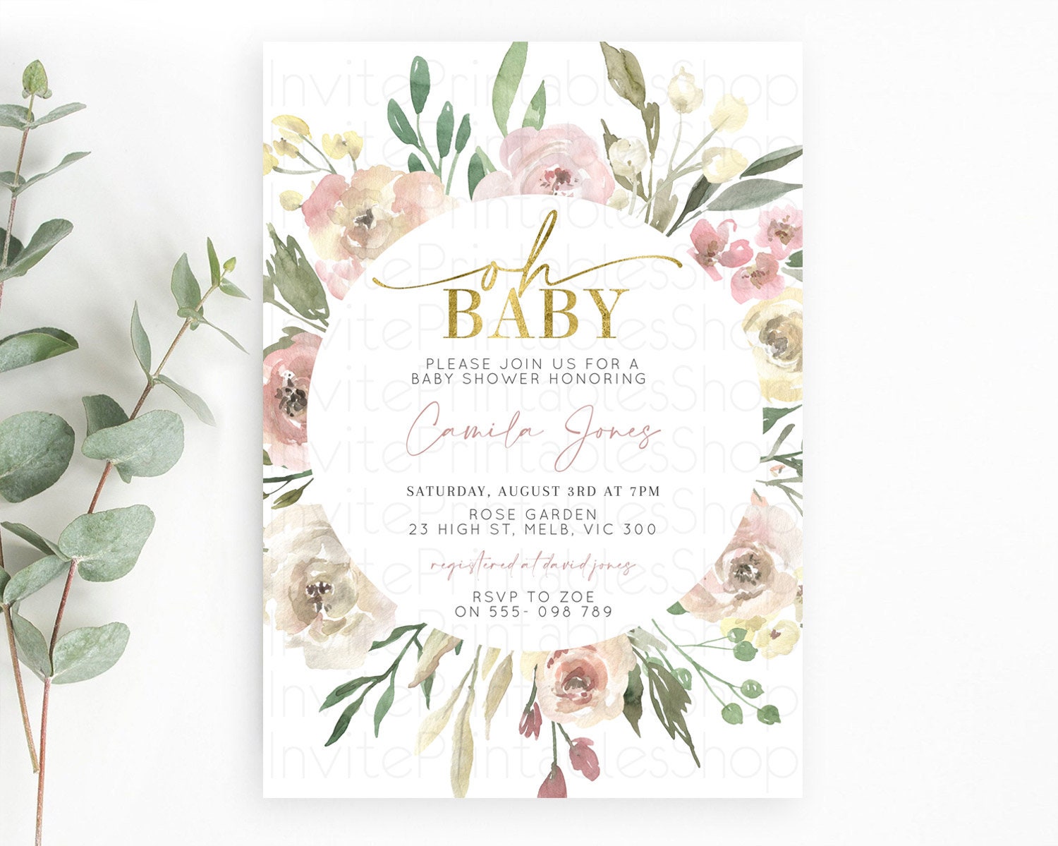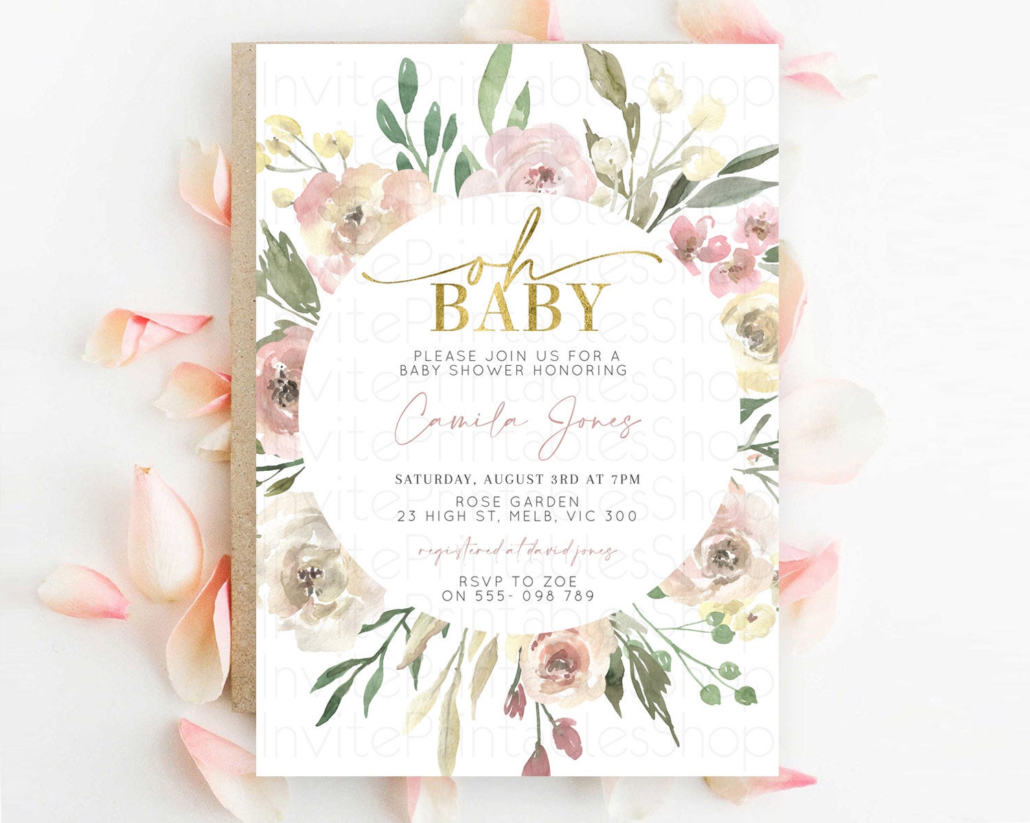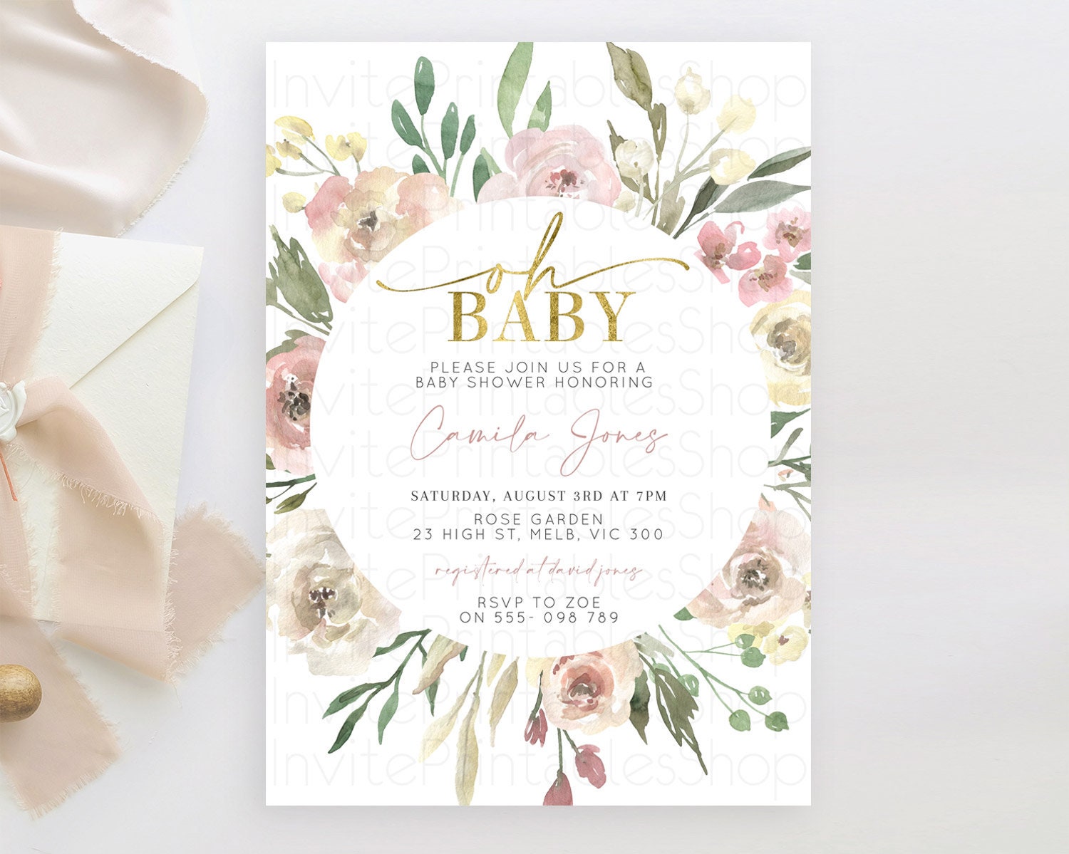 Wildflower Baby Shower Invitation Secret Garden Baby Shower Invitation Pastel Flowers Invite Enchanted Garden Shower Floral Theme D10202