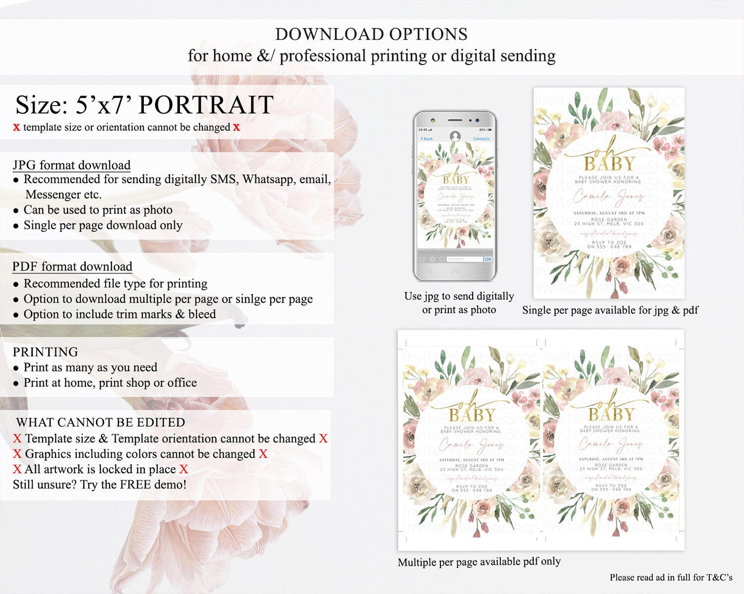 • Template size & orientation cannot be changed. Please use the demo link to confirm this product suits your needs.
