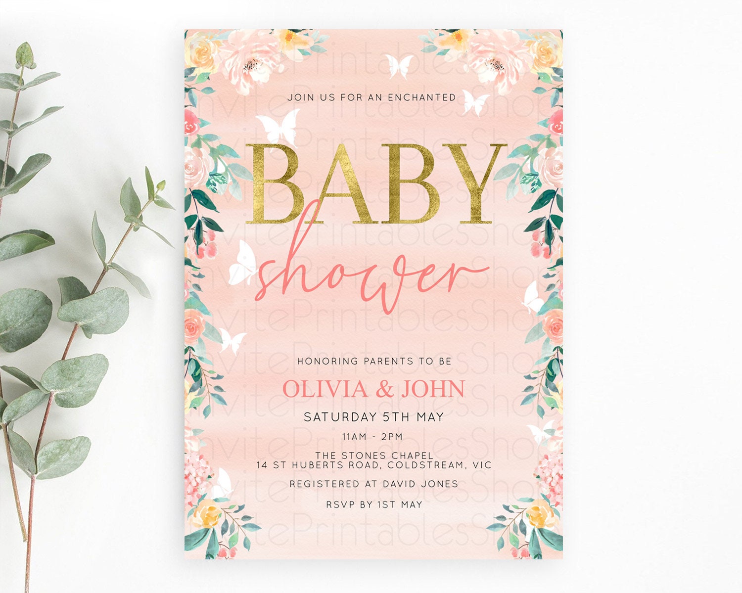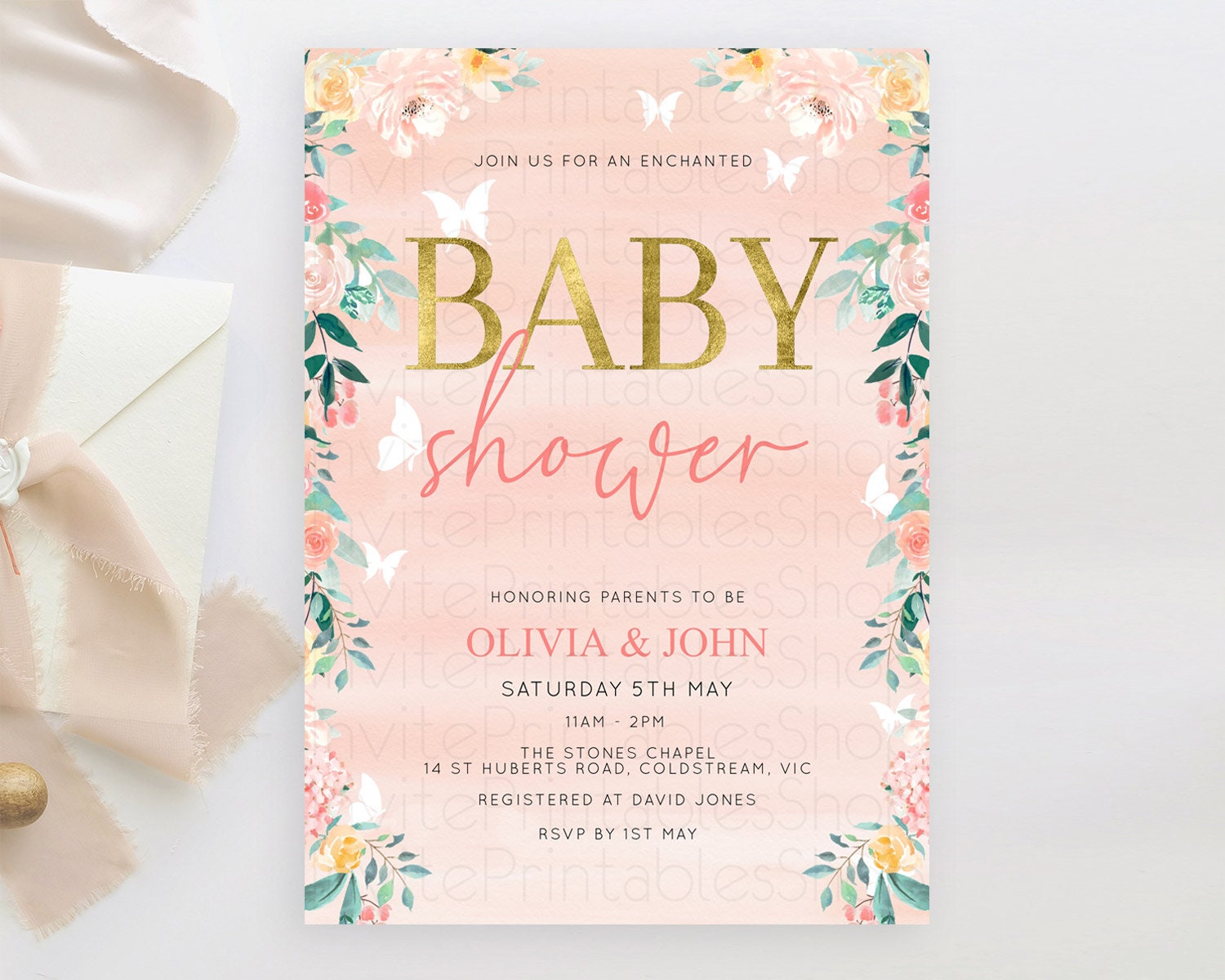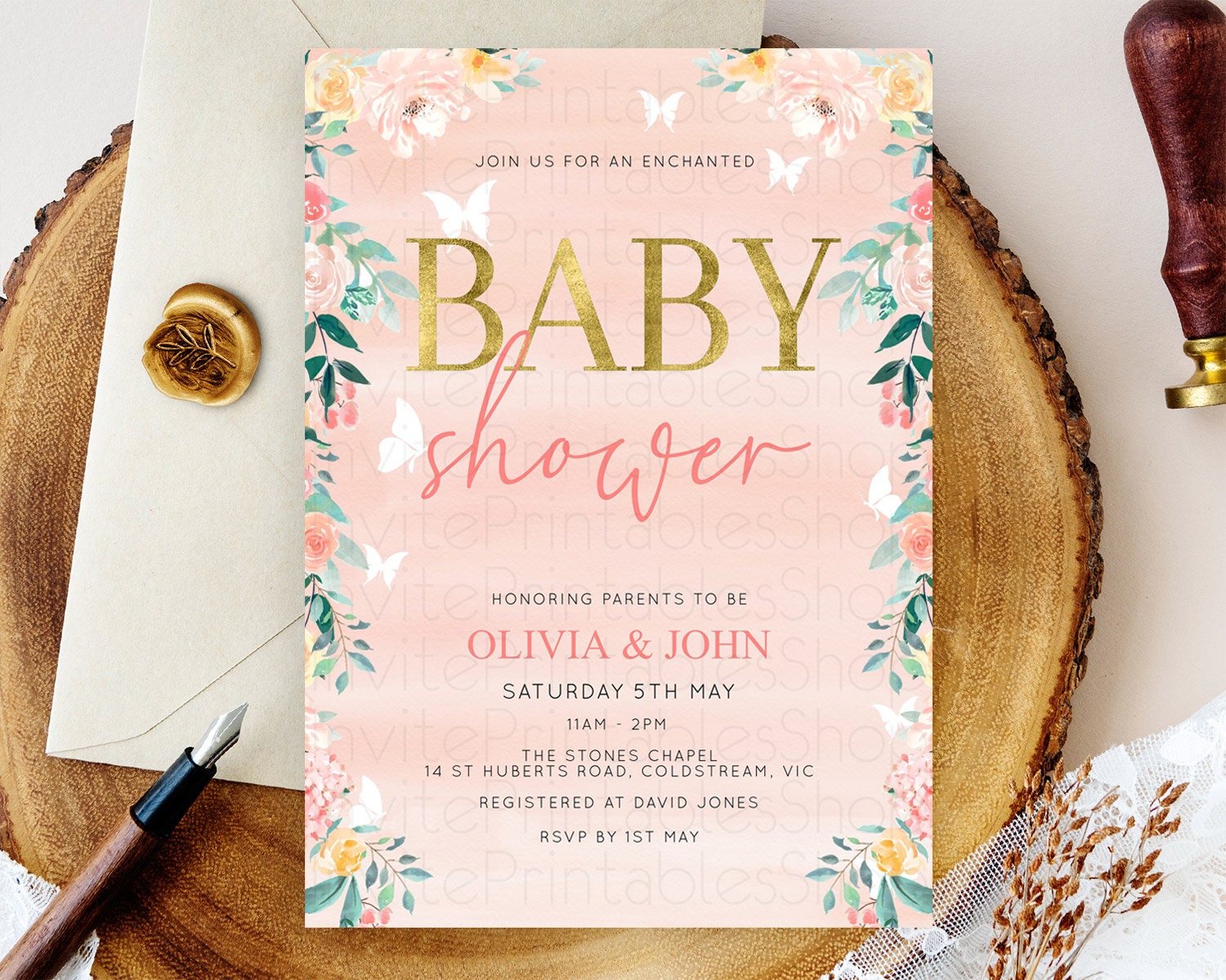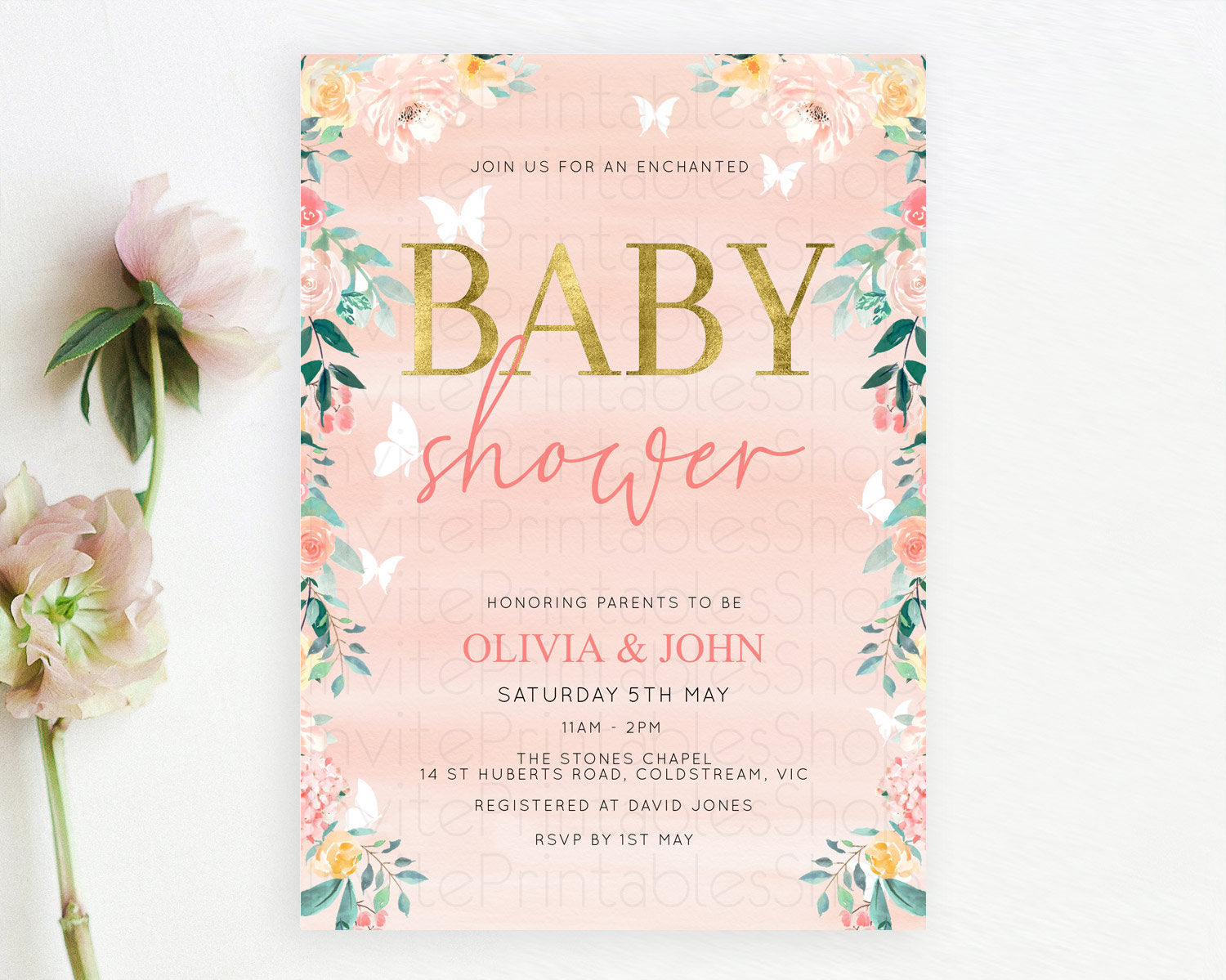 Wildflower Baby Shower Invitation Secret Garden Baby Shower Invitation Pastel Flowers Invite Enchanted Garden Shower Floral Theme D10245