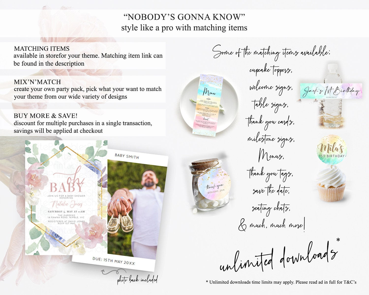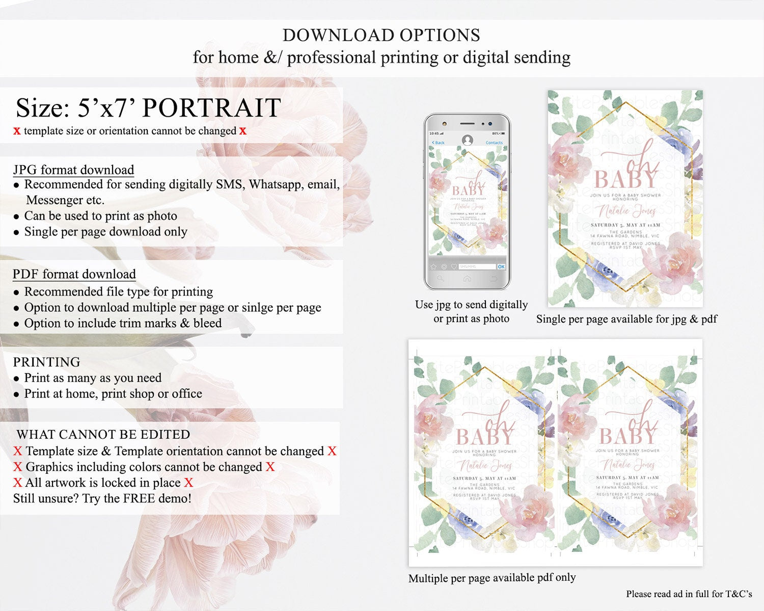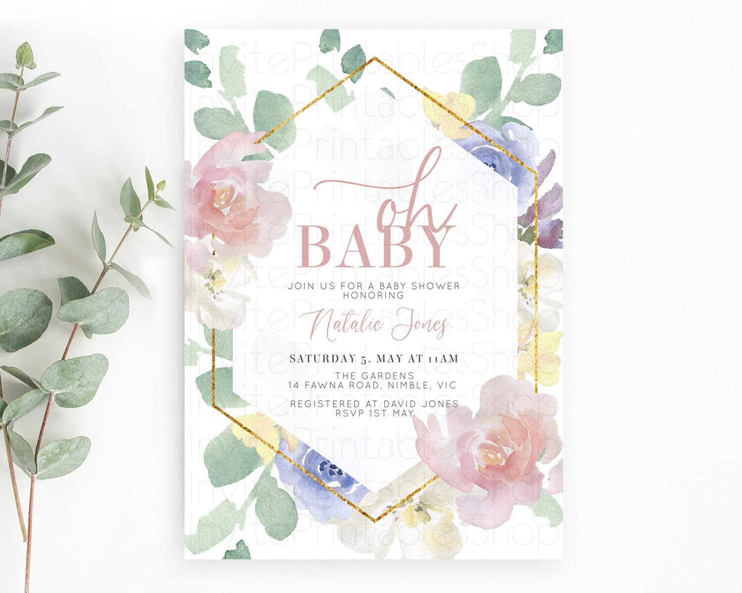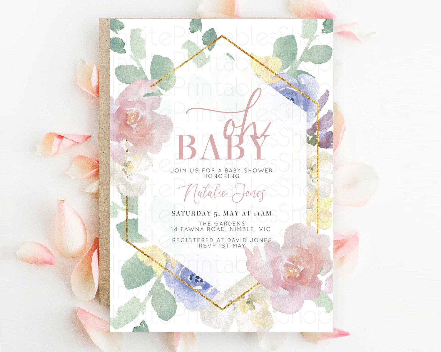 Wildflower Baby Shower Invitation Secret Garden Baby Shower Invitation Pastel Flowers Invite Enchanted Garden Shower Floral Theme D10254