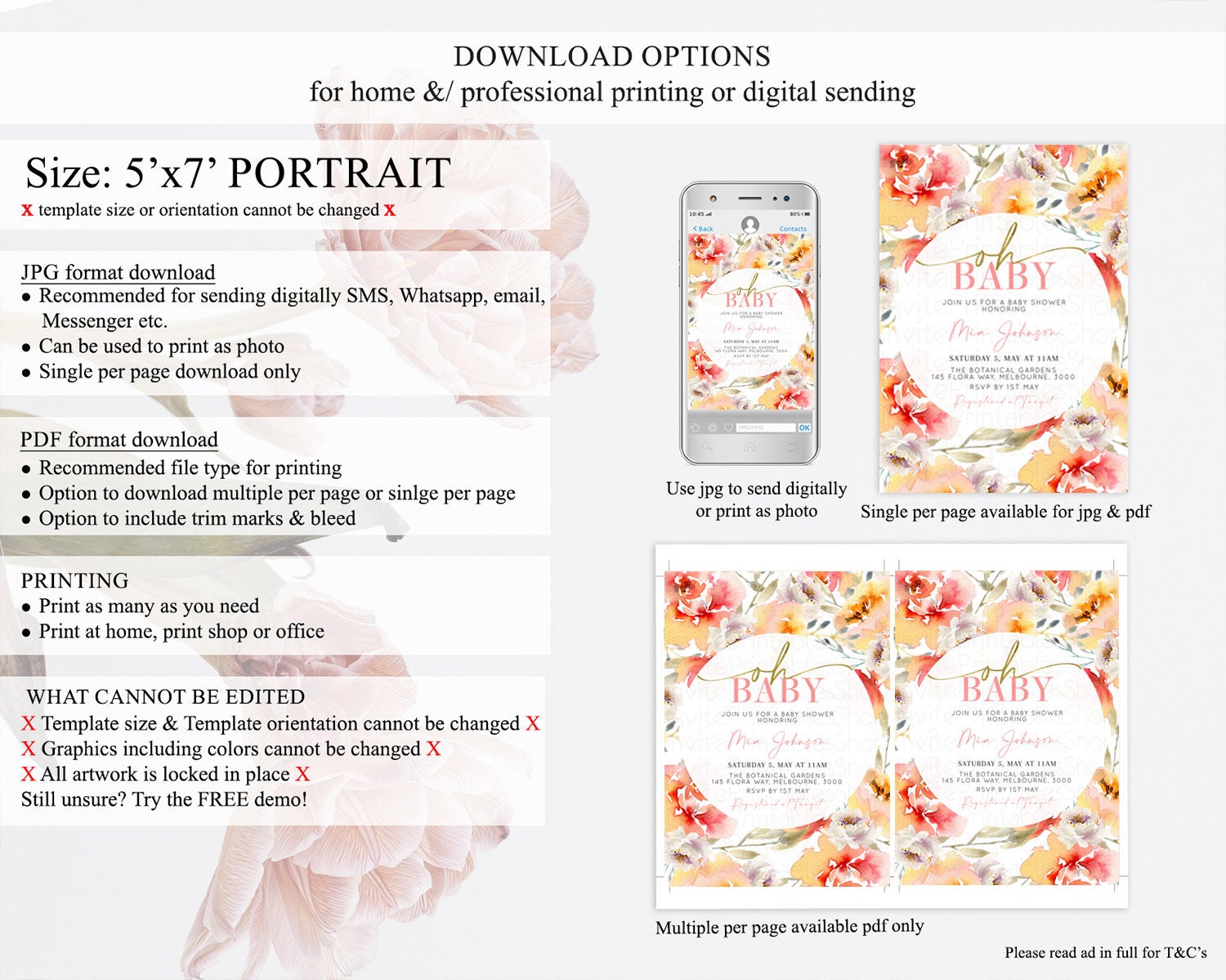 • Template size & orientation cannot be changed. Please use the demo link to confirm this product suits your needs.