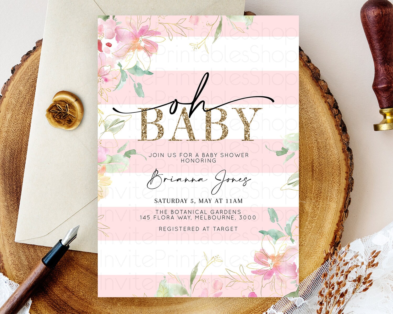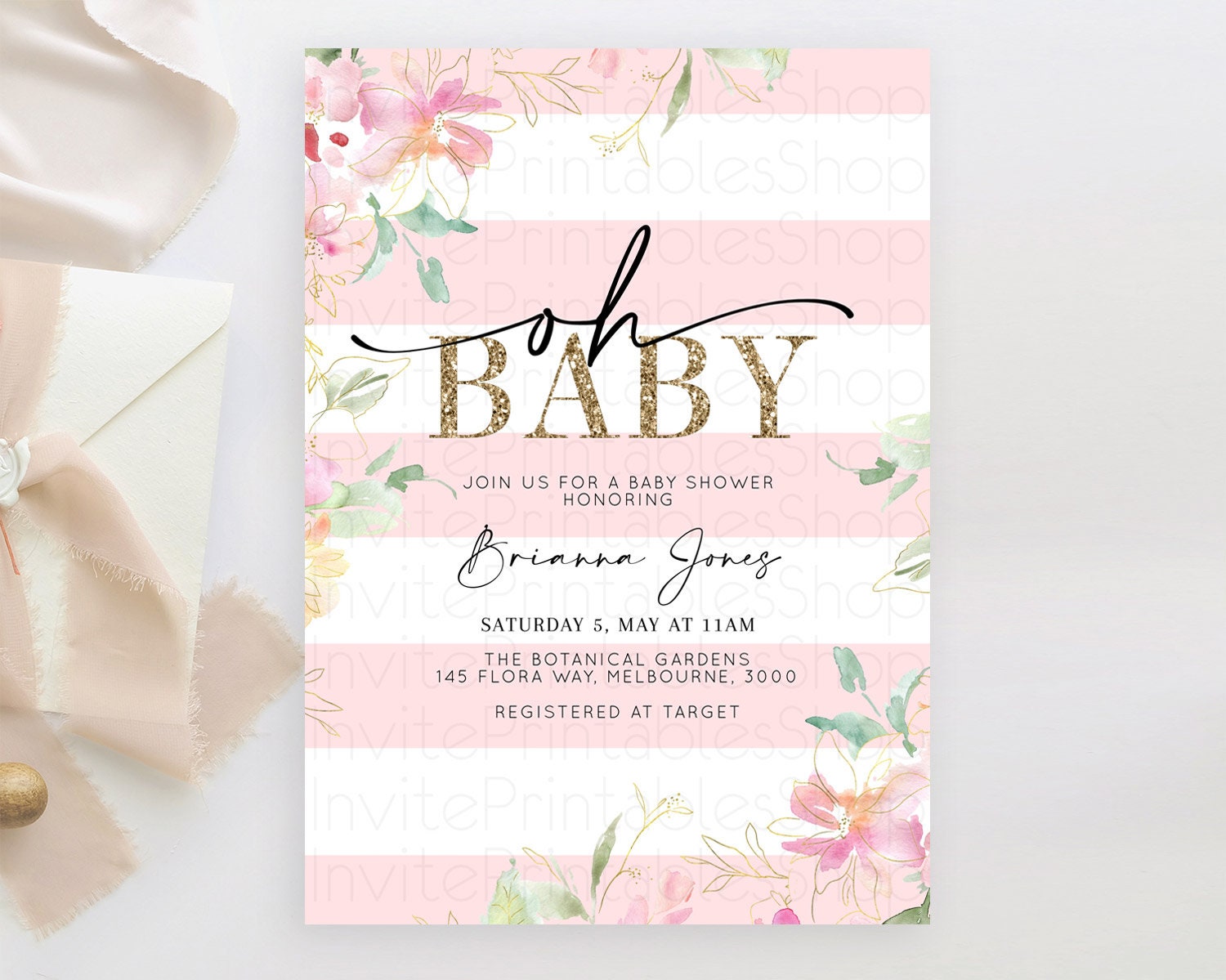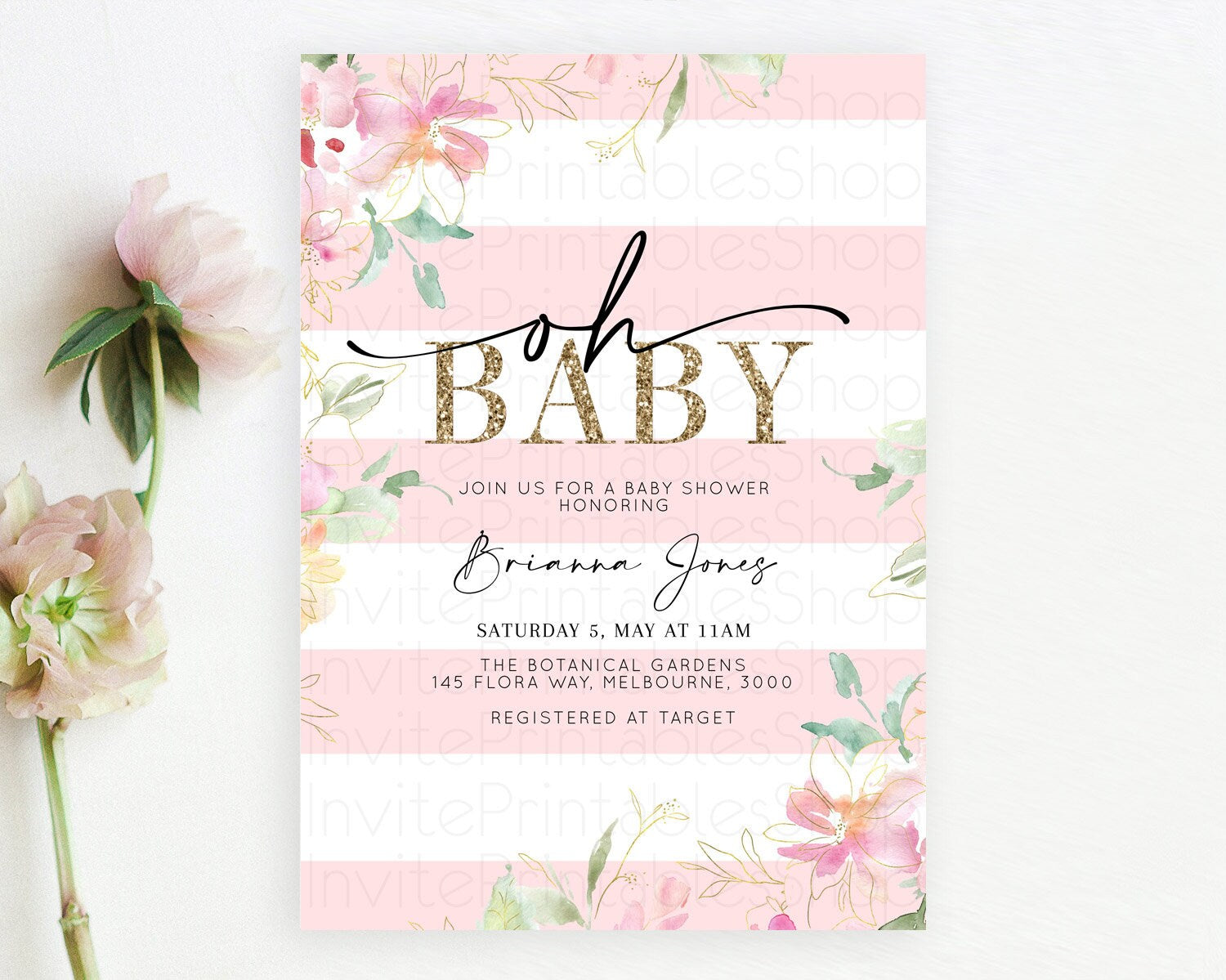 Wildflower Baby Shower Invitation Secret Garden Baby Shower Invitation Pastel Flowers Invite Enchanted Garden Shower Floral Theme D10301