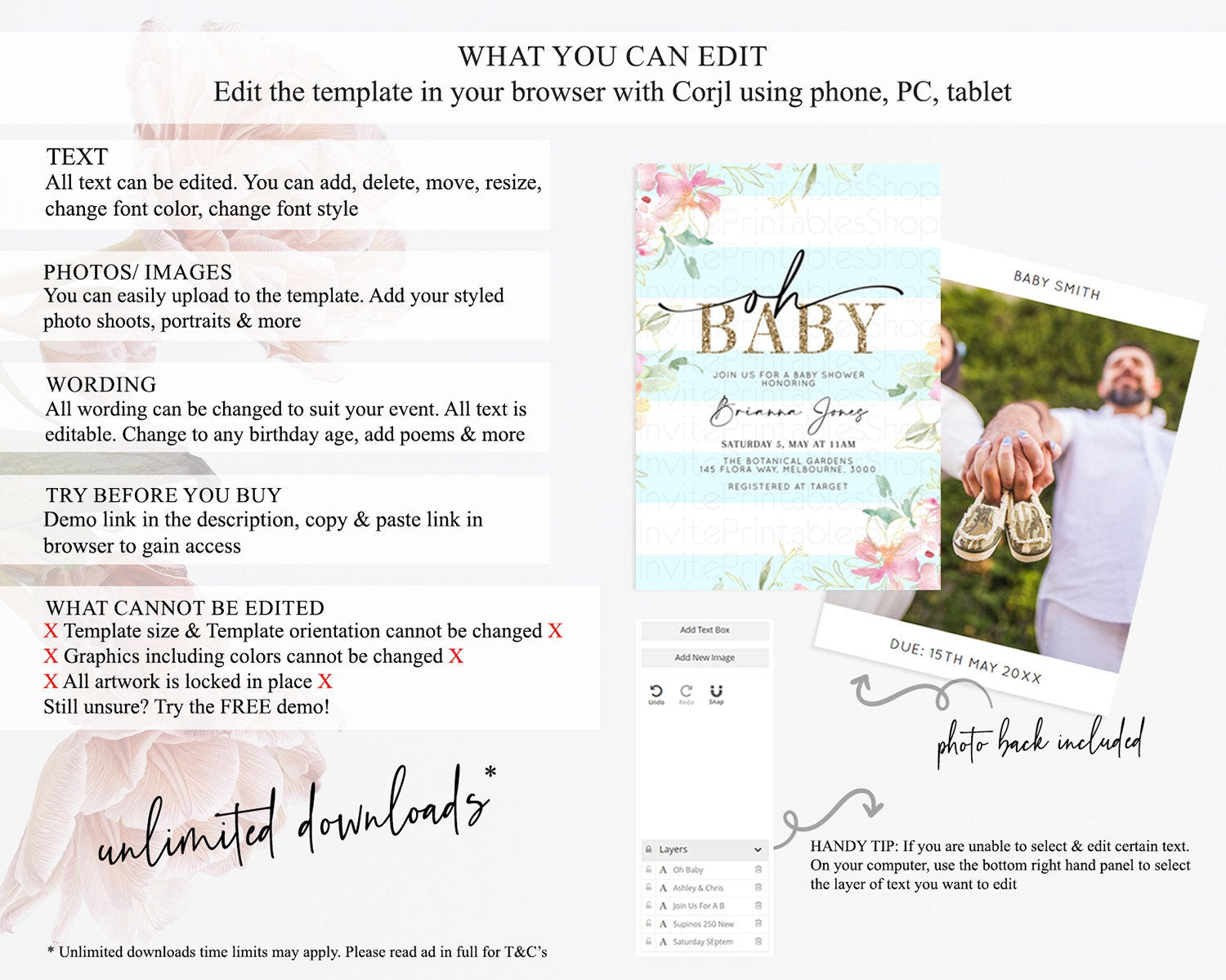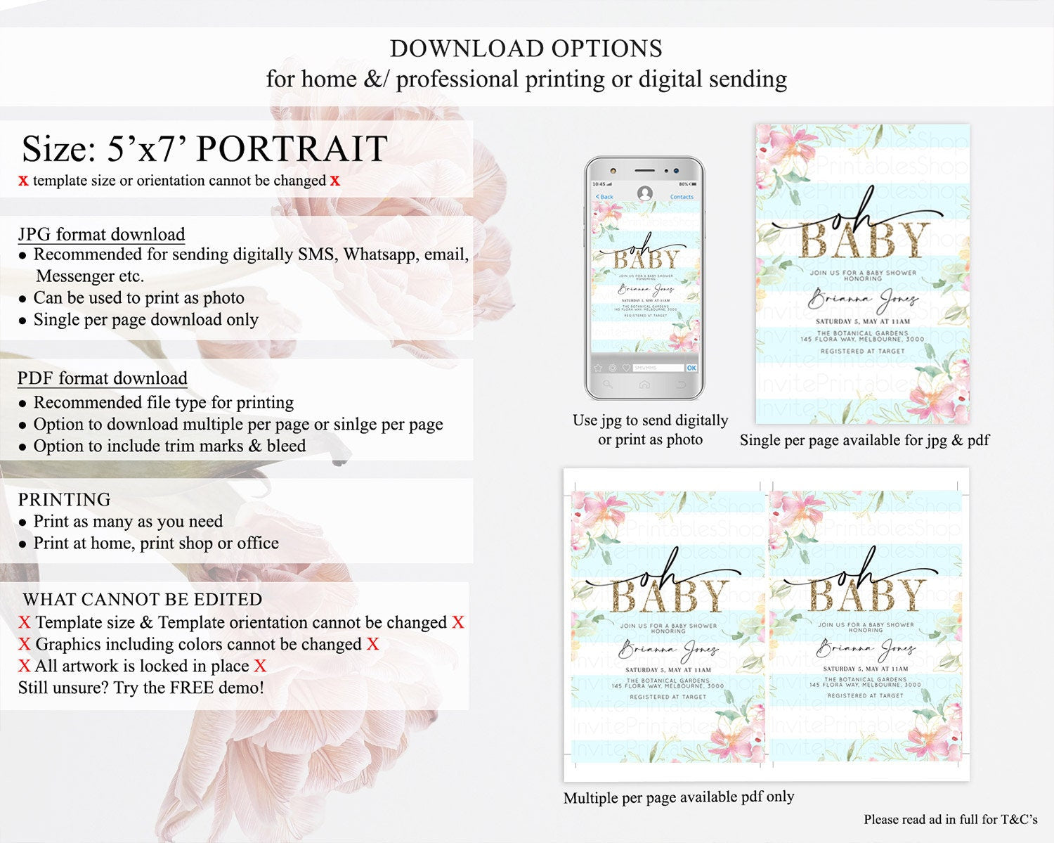 Wildflower Baby Shower Invitation Secret Garden Baby Shower Invitation Pastel Flowers Invite Enchanted Garden Shower Floral Theme D10304