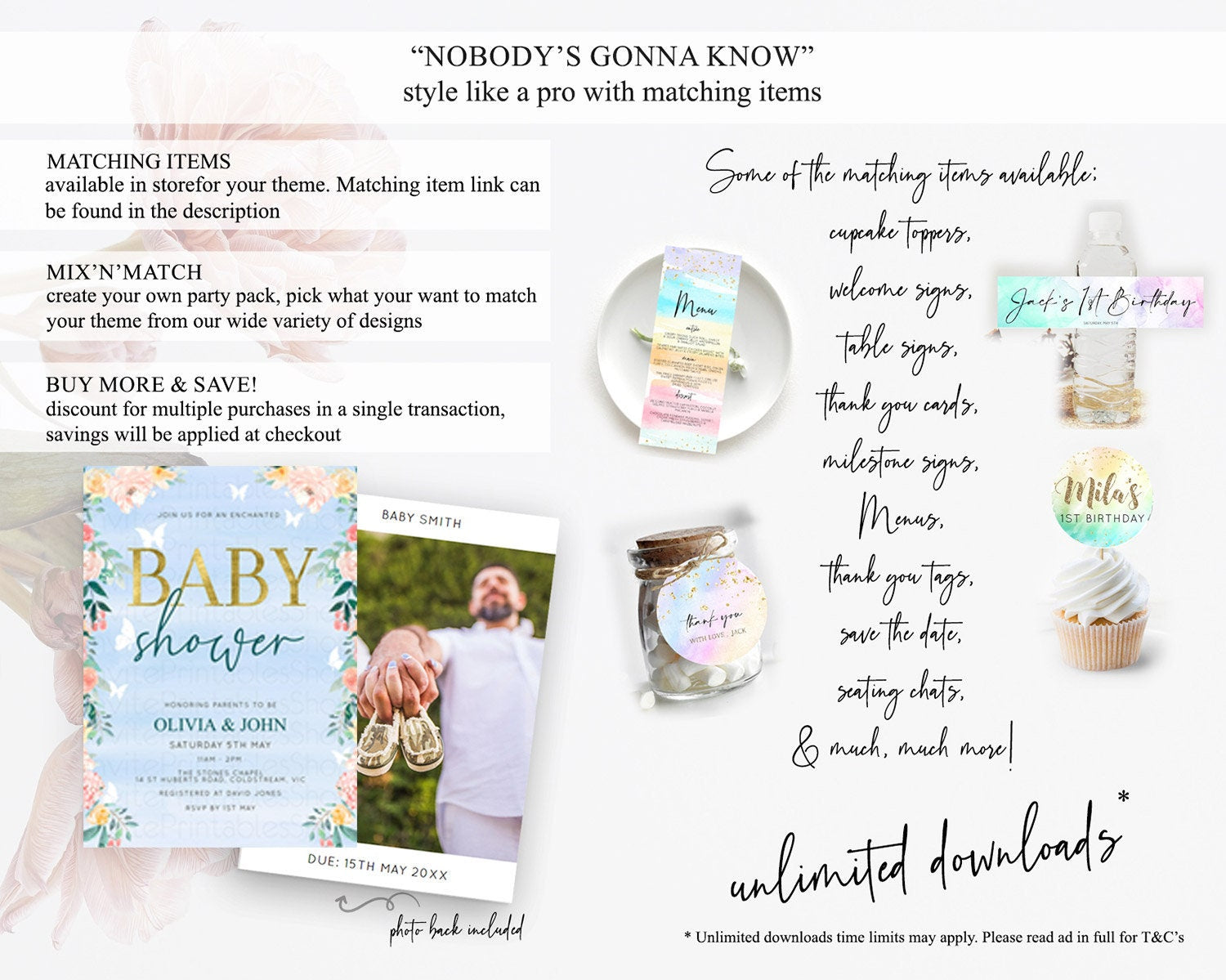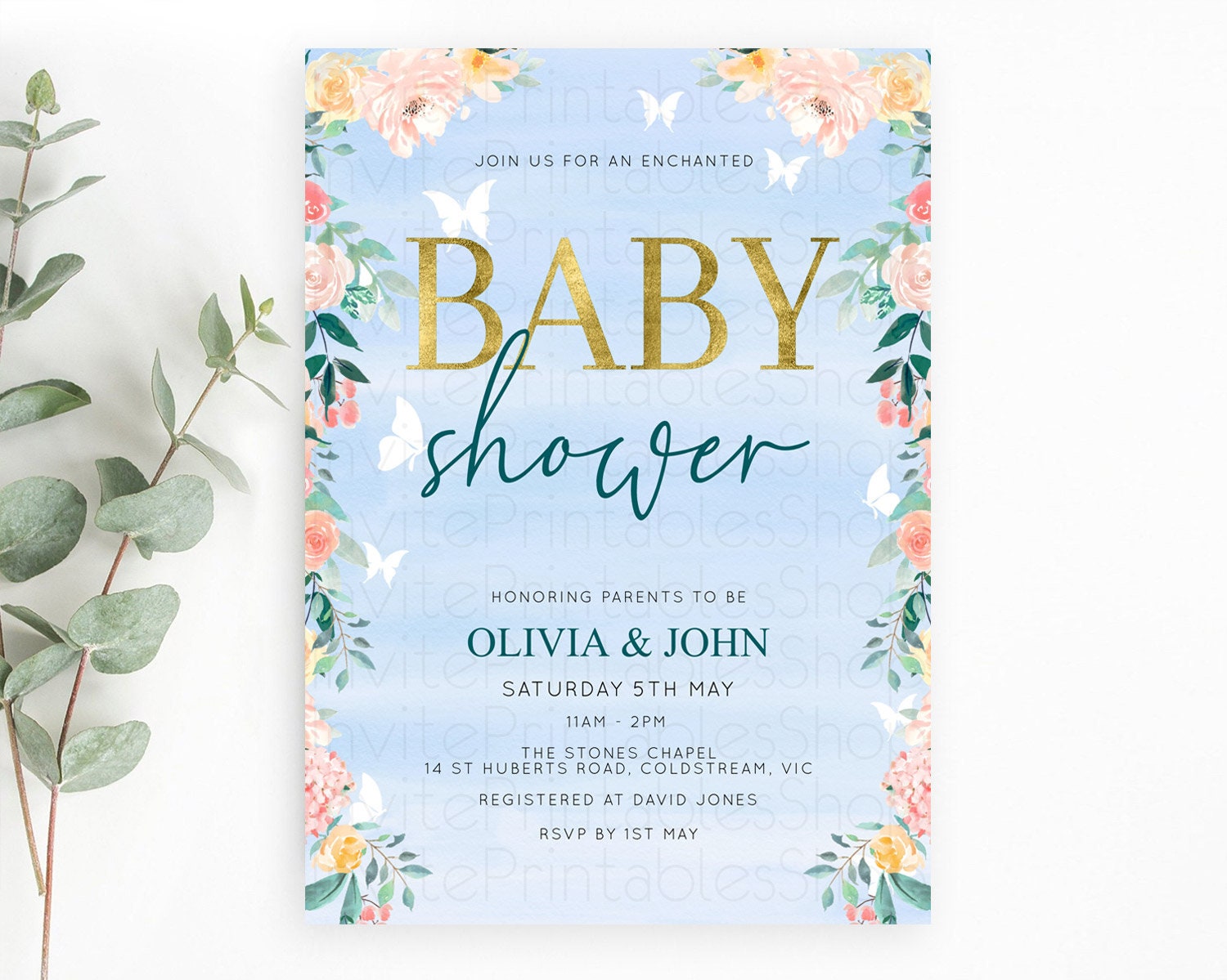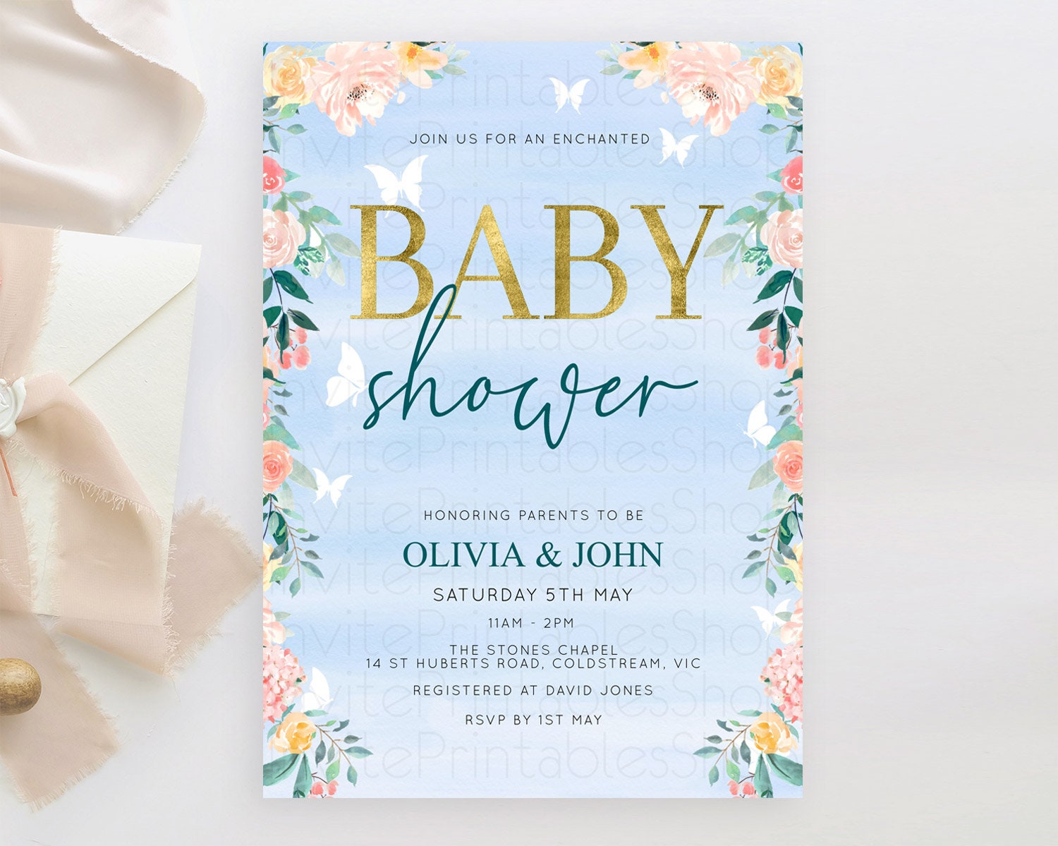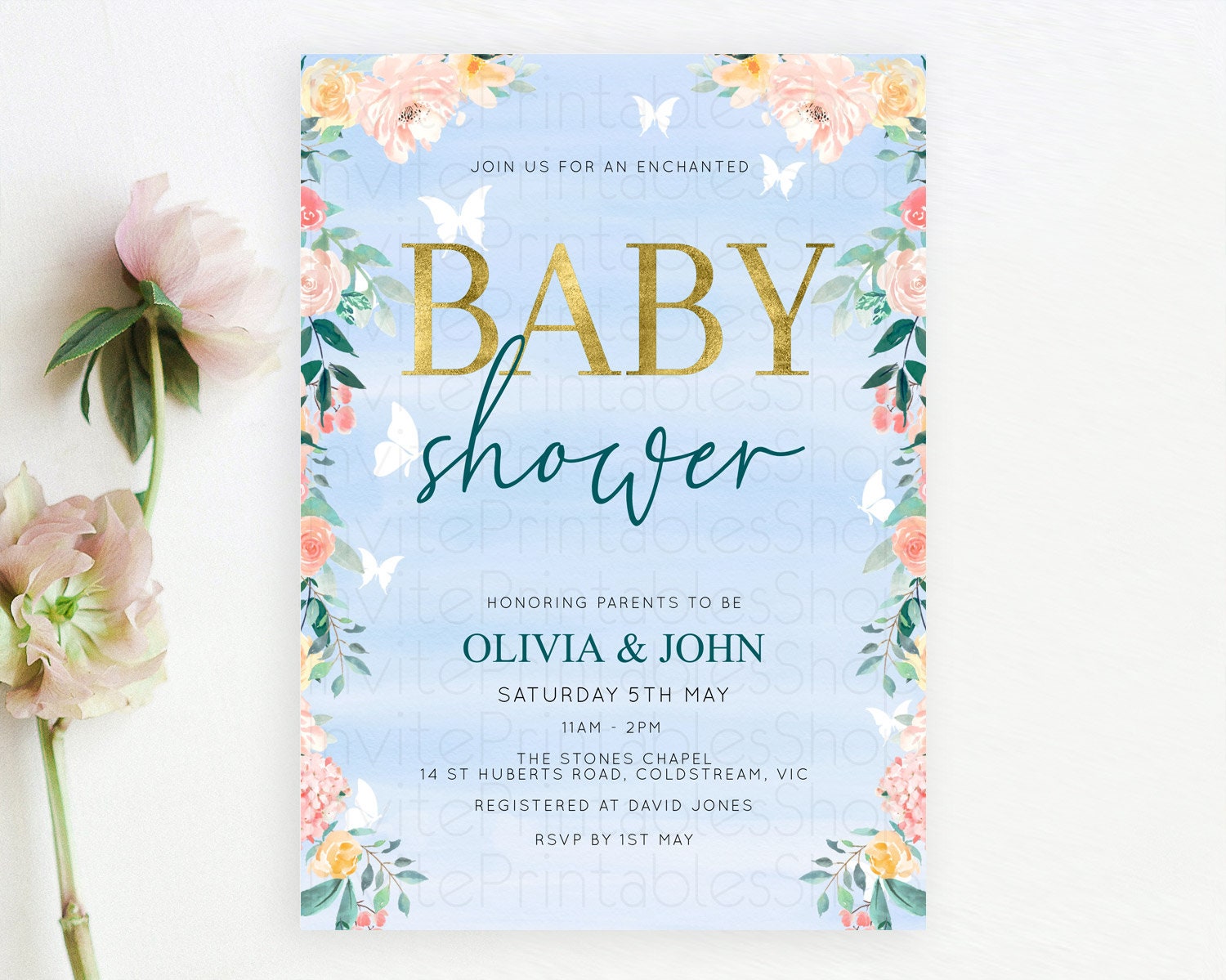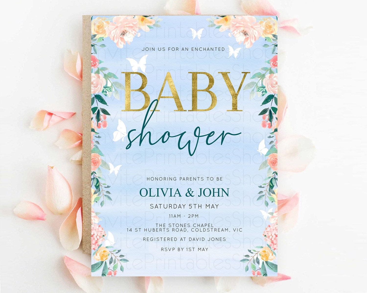 Wildflower Baby Shower Invitation Secret Garden Baby Shower Invitation Pastel Flowers Invite Enchanted Garden Shower Floral Theme D10337