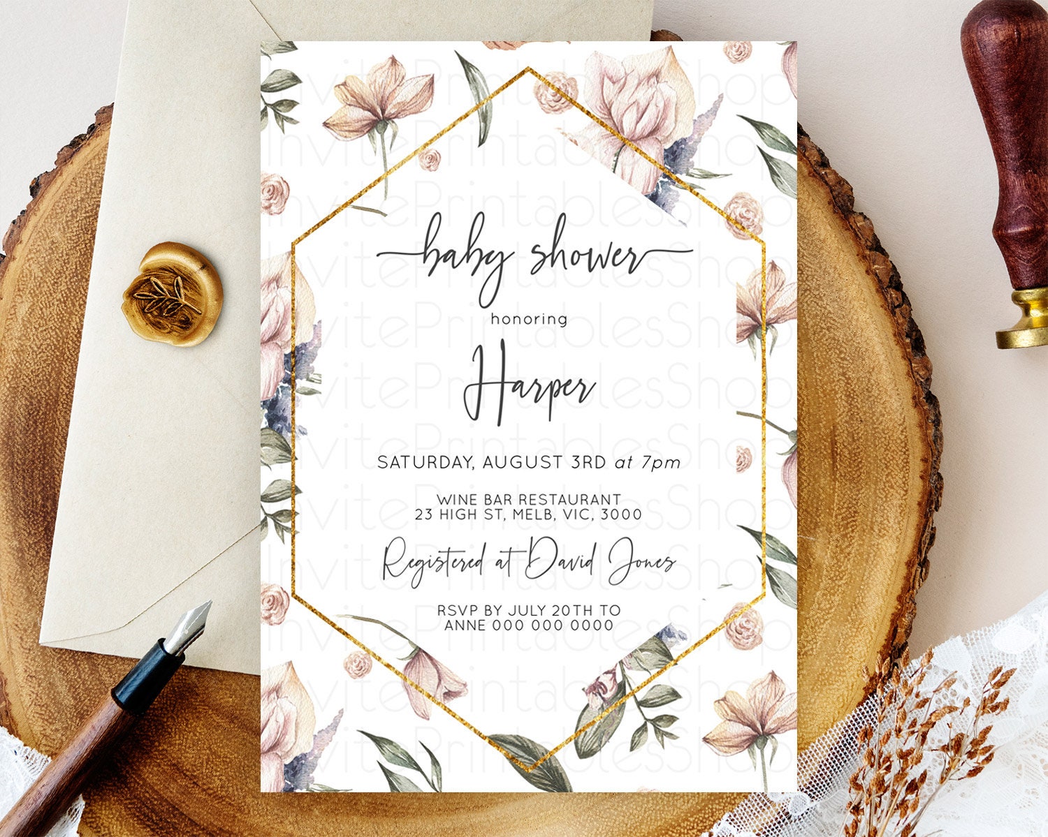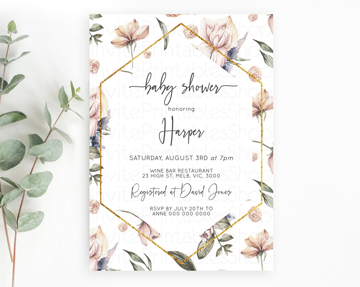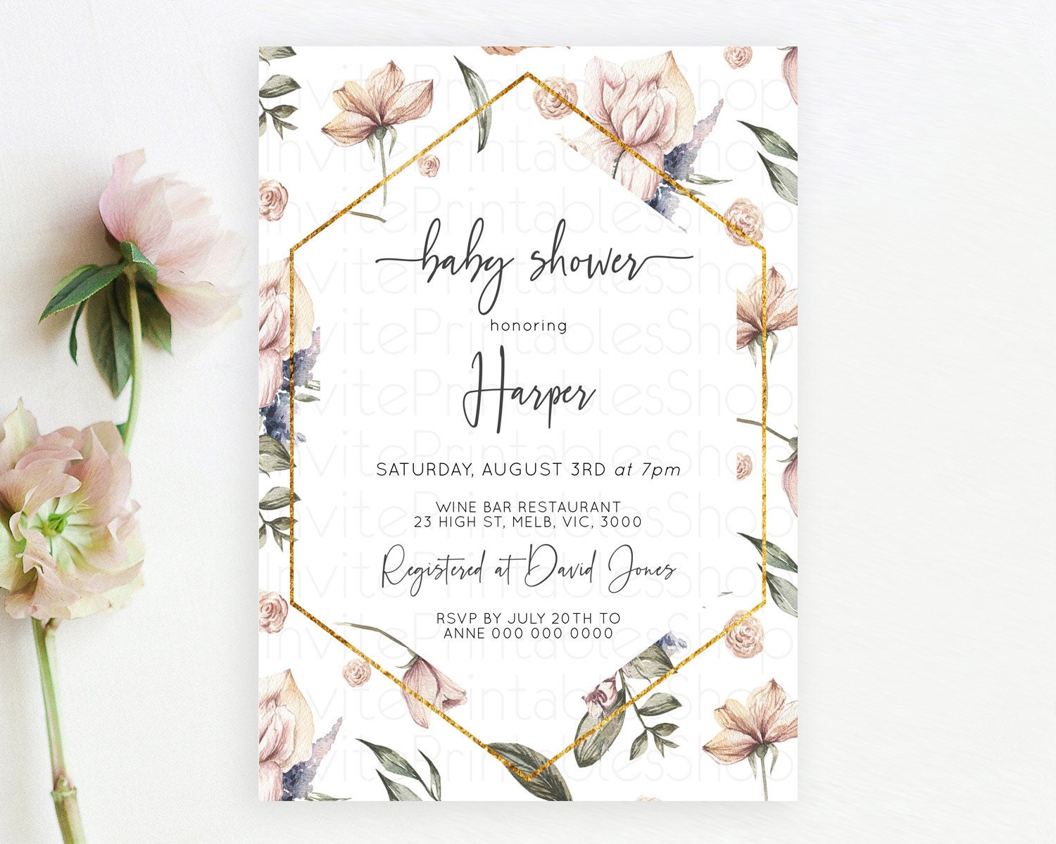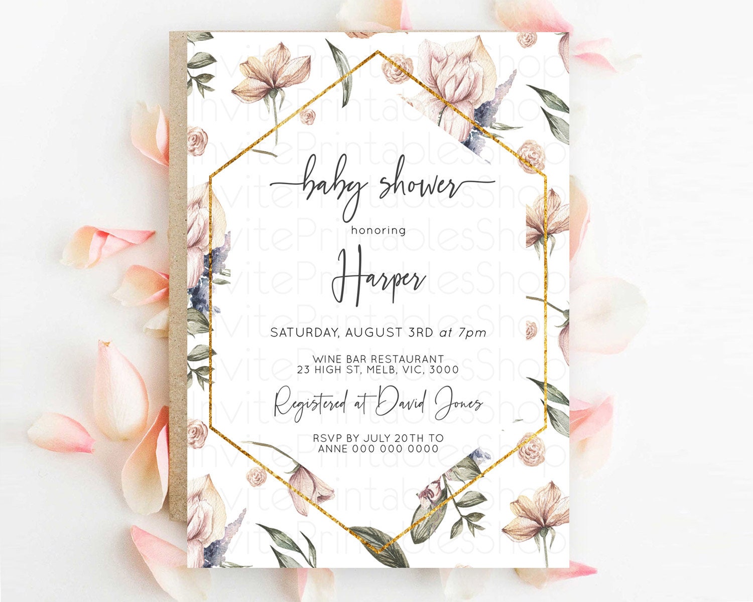 Wildflower Baby Shower Invitation Secret Garden Baby Shower Invitation Pastel Flowers Invite Enchanted Garden Shower Floral Theme D10504