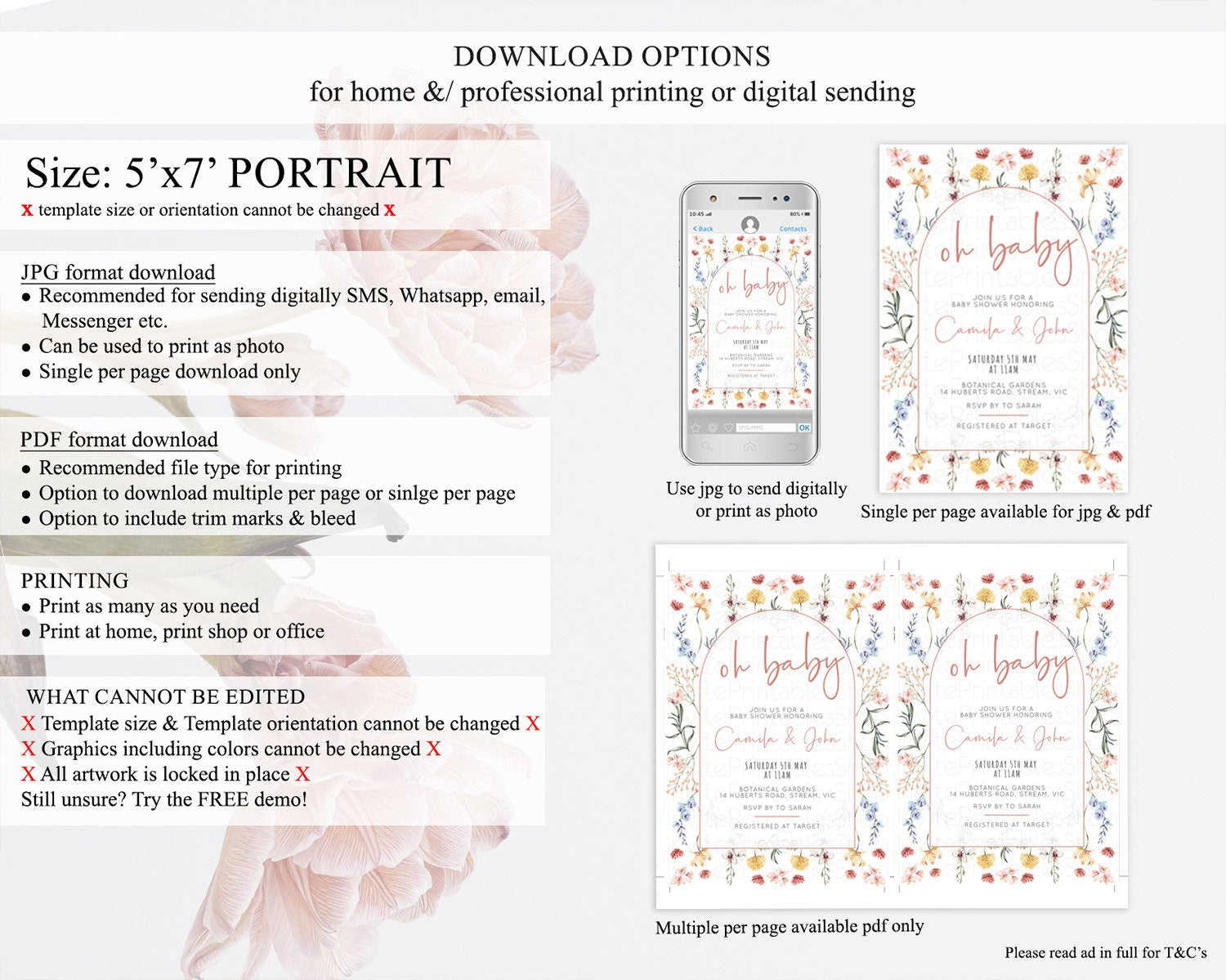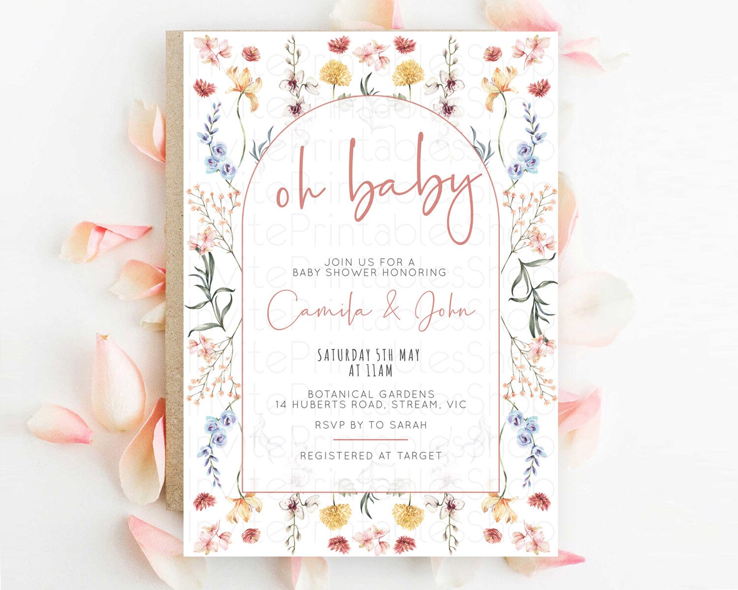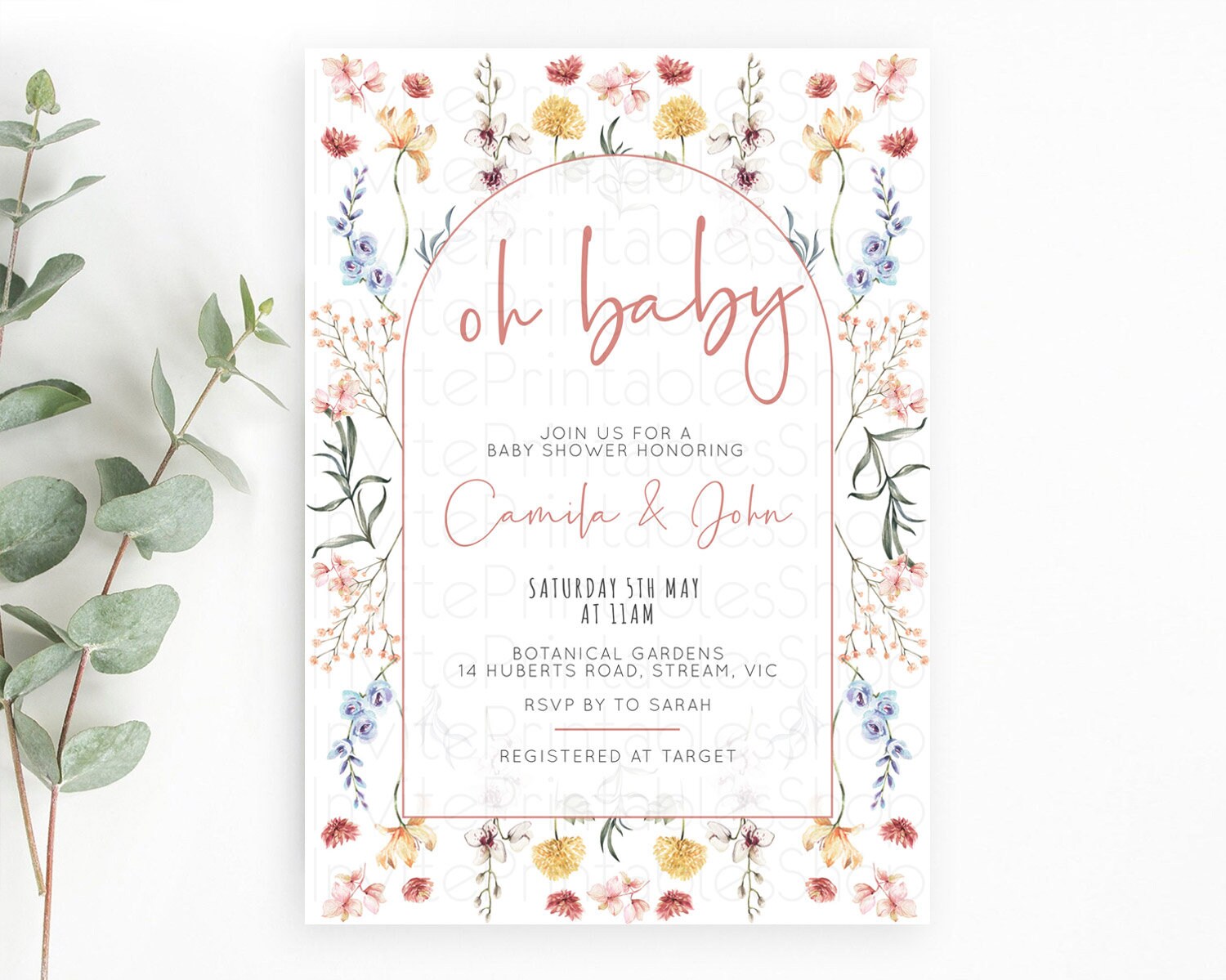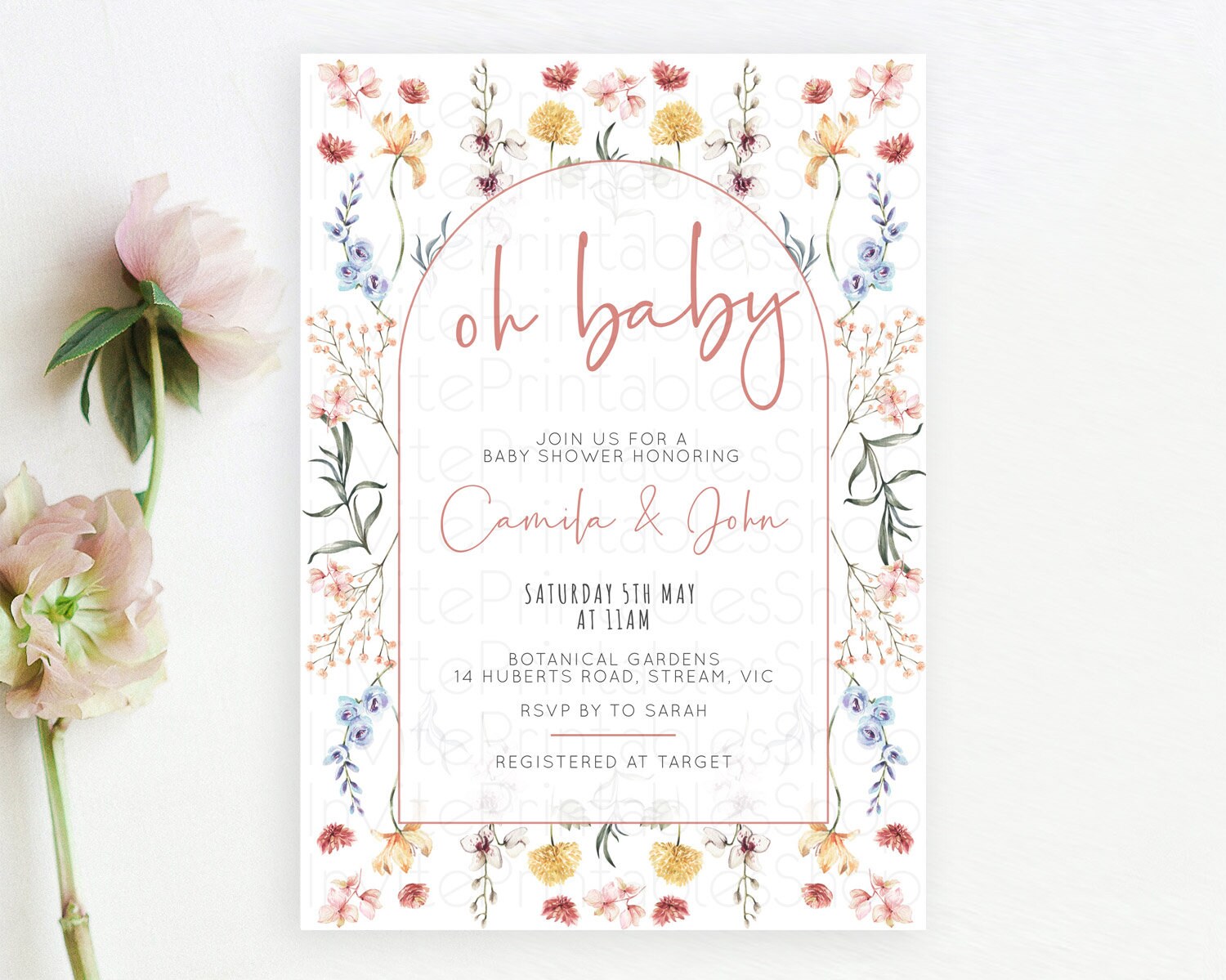 Wildflower Baby Shower Invitation Secret Garden Baby Shower Invitation Pastel Flowers Invite Enchanted Garden Shower Floral Theme D10682