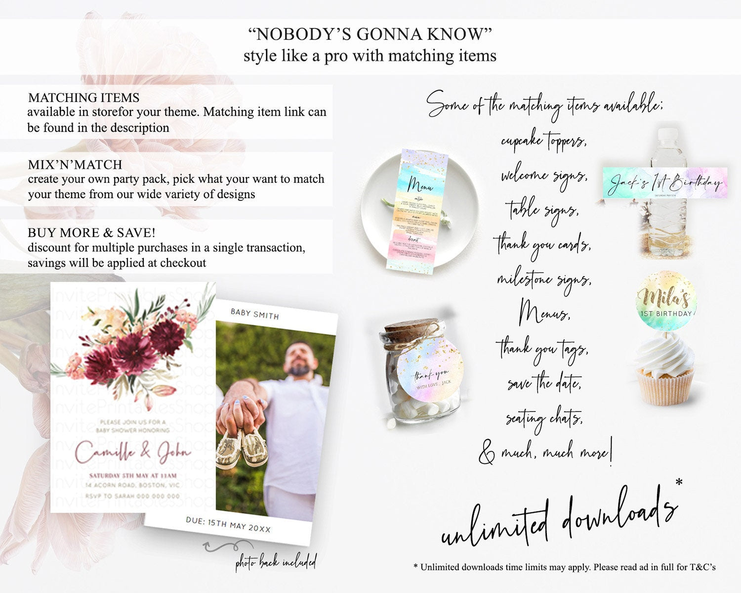 Wildflower Baby Shower Invitation Secret Garden Baby Shower Invitation Pastel Flowers Invite Enchanted Garden Shower Floral Theme D10685