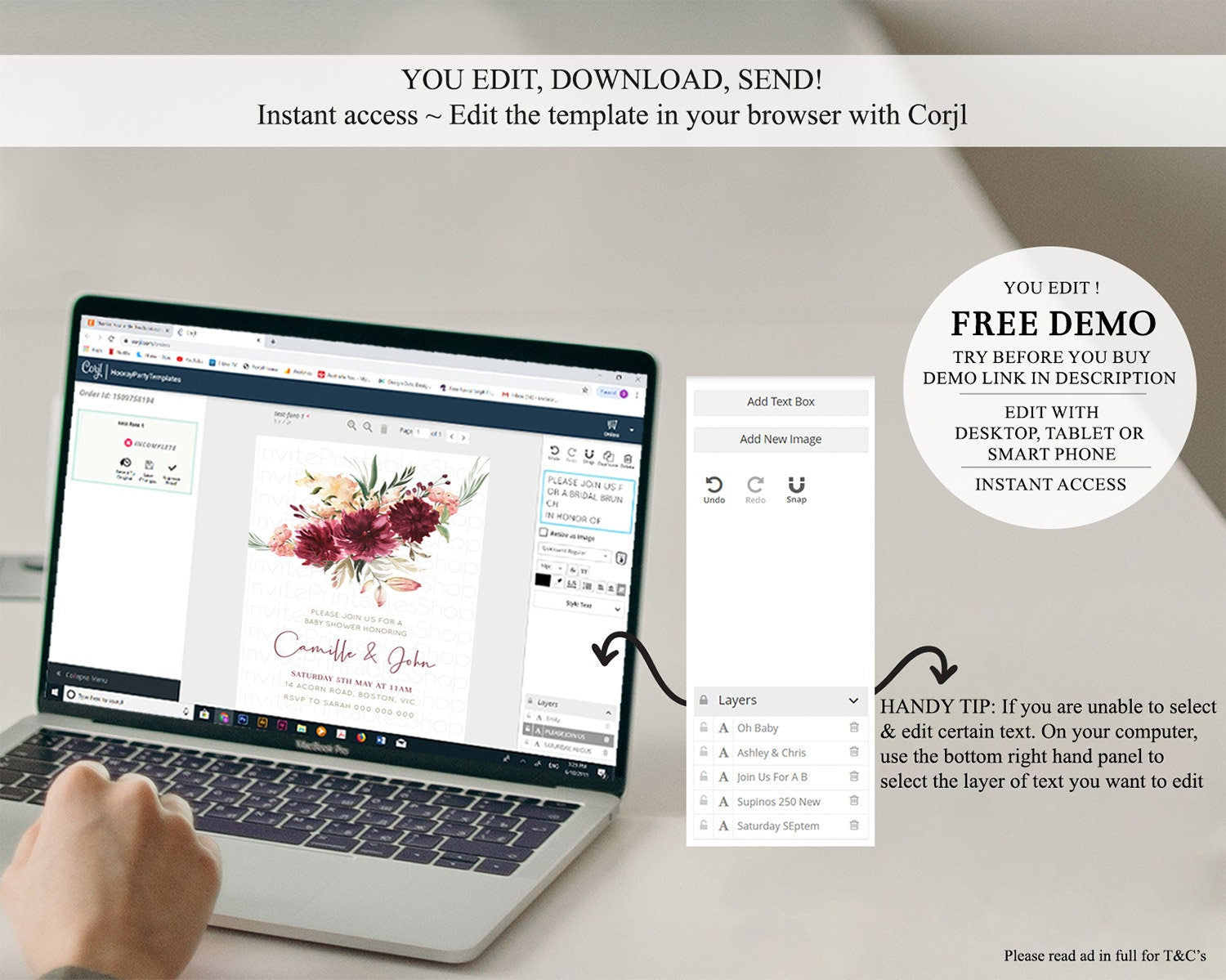 • After purchase, Corjl emails your editing link. Allow up to 15 minutes for delivery.