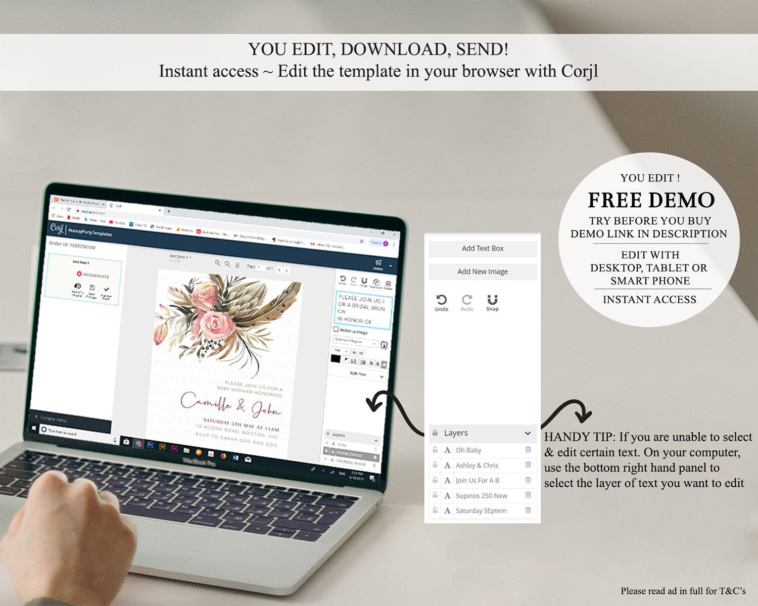 • After purchase, Corjl emails your editing link. Allow up to 15 minutes for delivery.