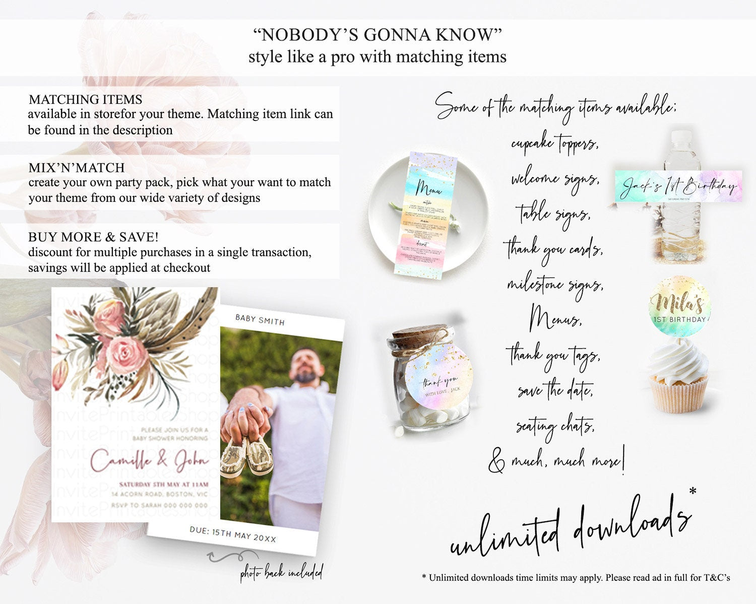 Wildflower Baby Shower Invitation Secret Garden Baby Shower Invitation Pastel Flowers Invite Enchanted Garden Shower Floral Theme D10686