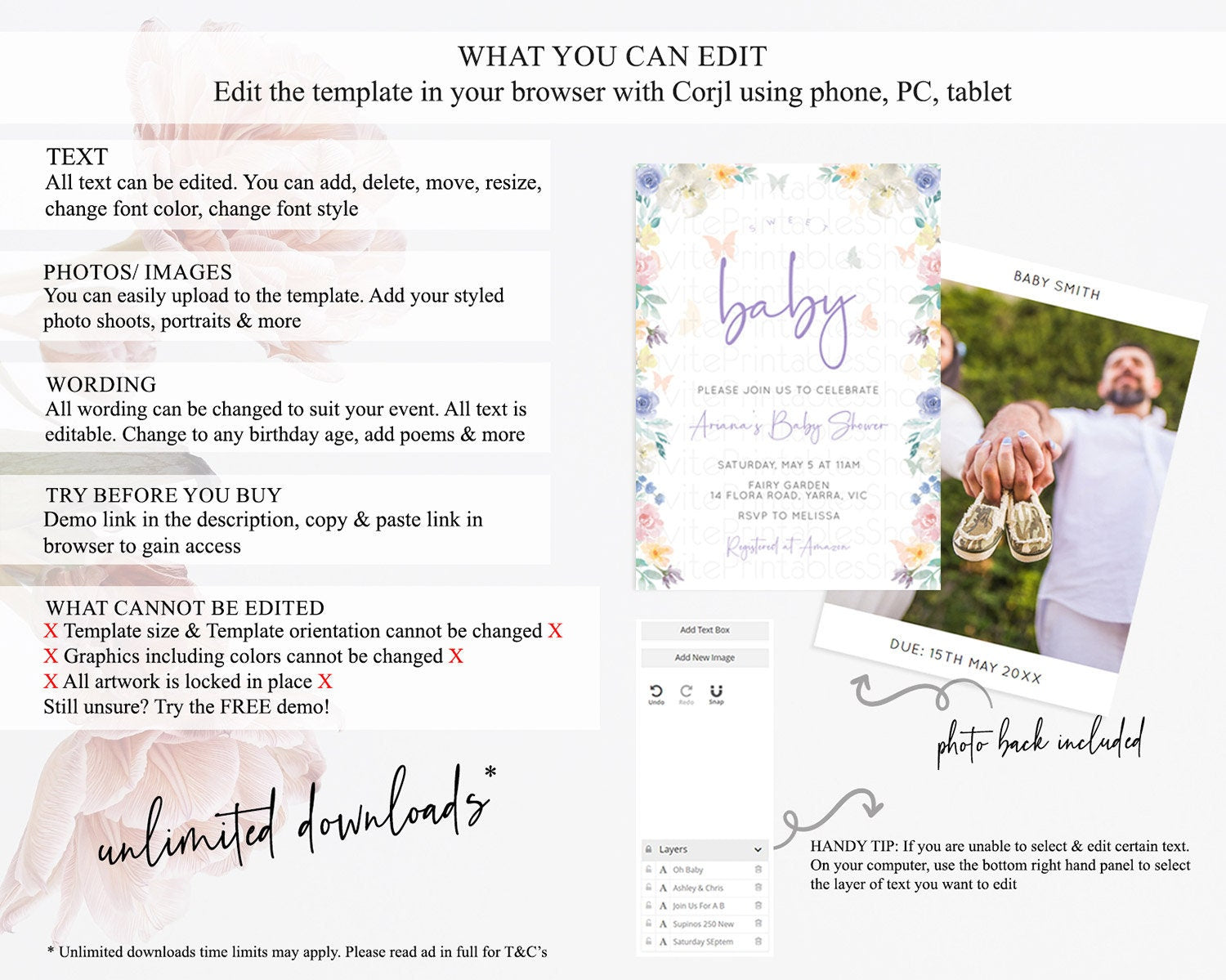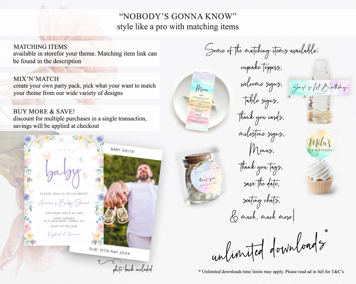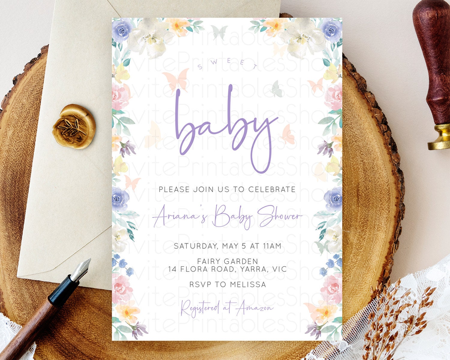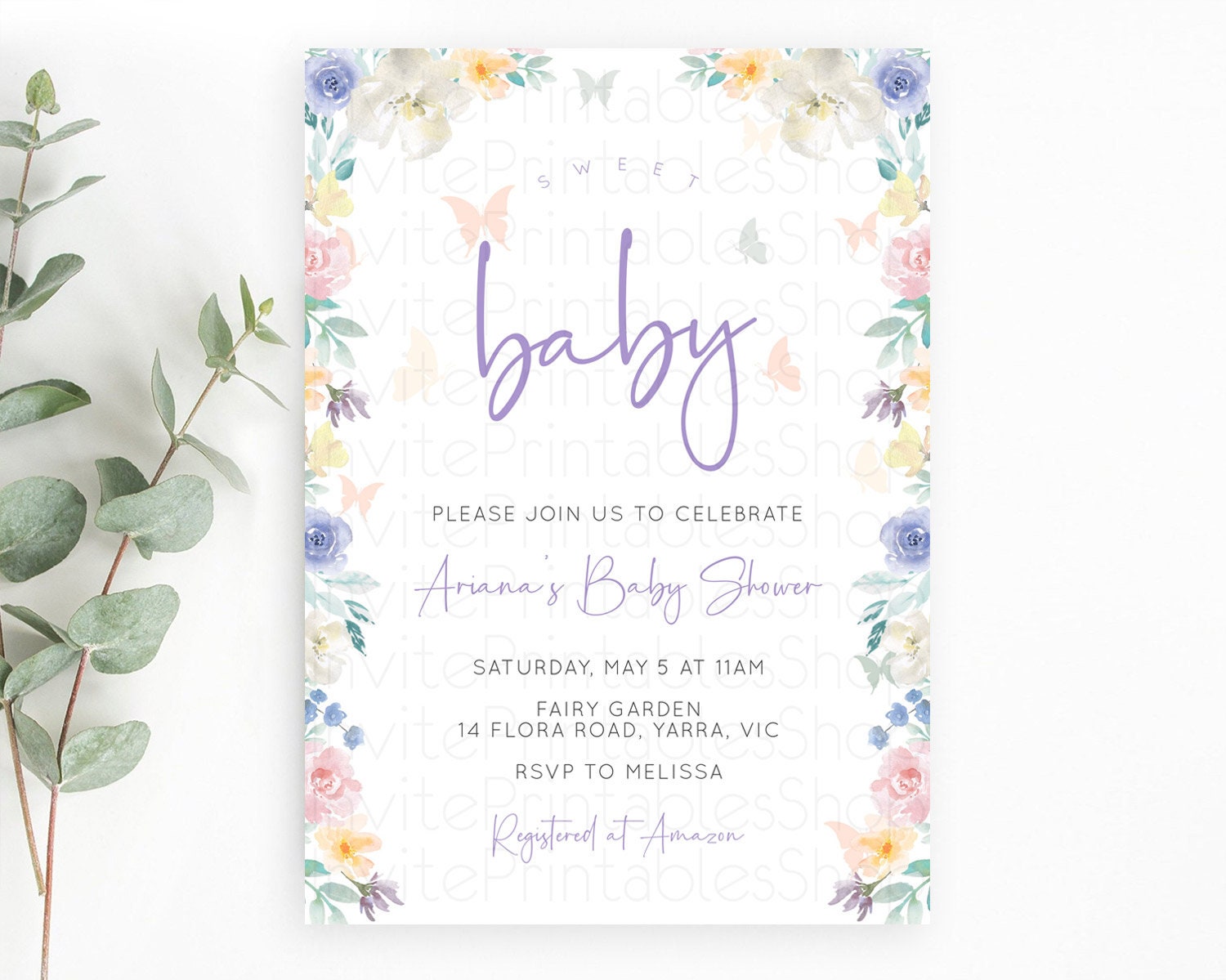 Wildflower Baby Shower Invitation Secret Garden Baby Shower Invitation Pastel Flowers Invite Enchanted Garden Shower Floral Theme D10710