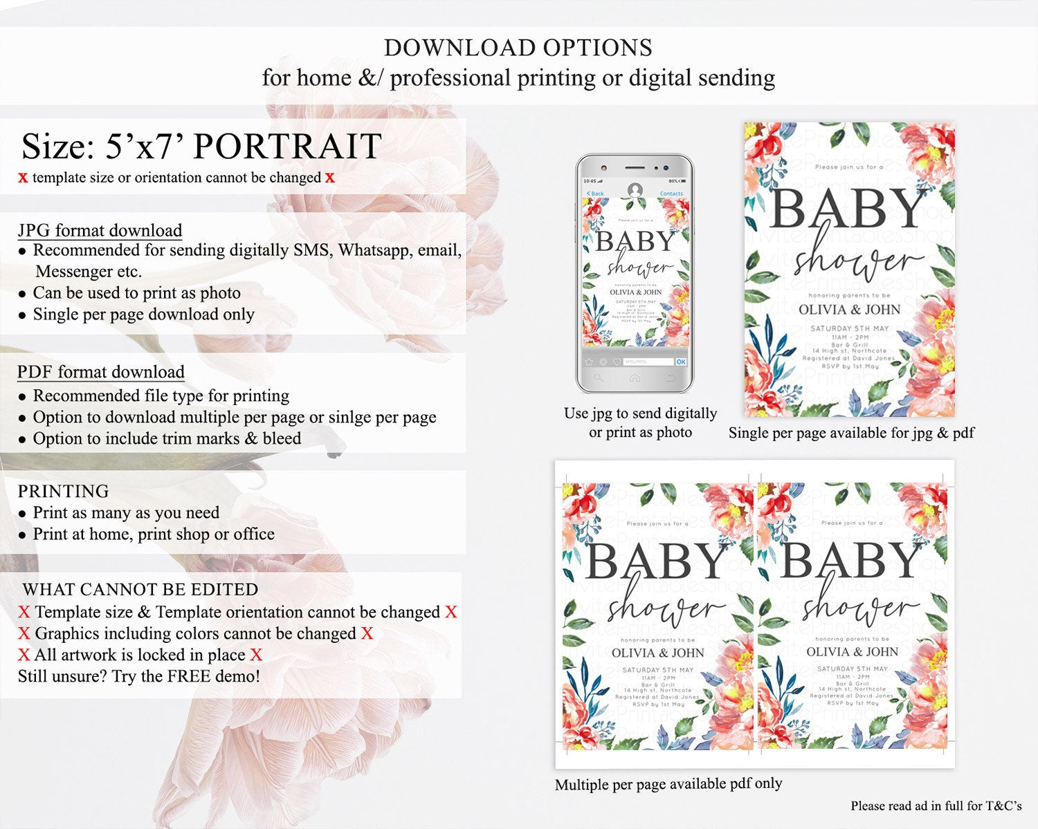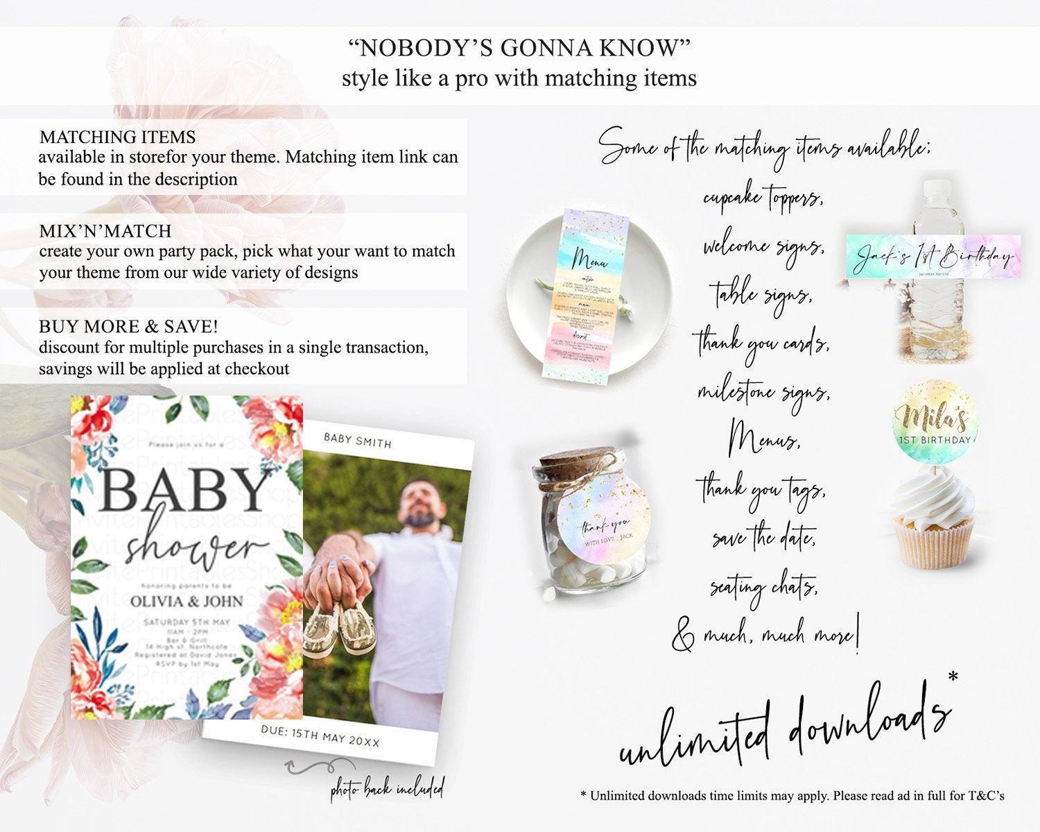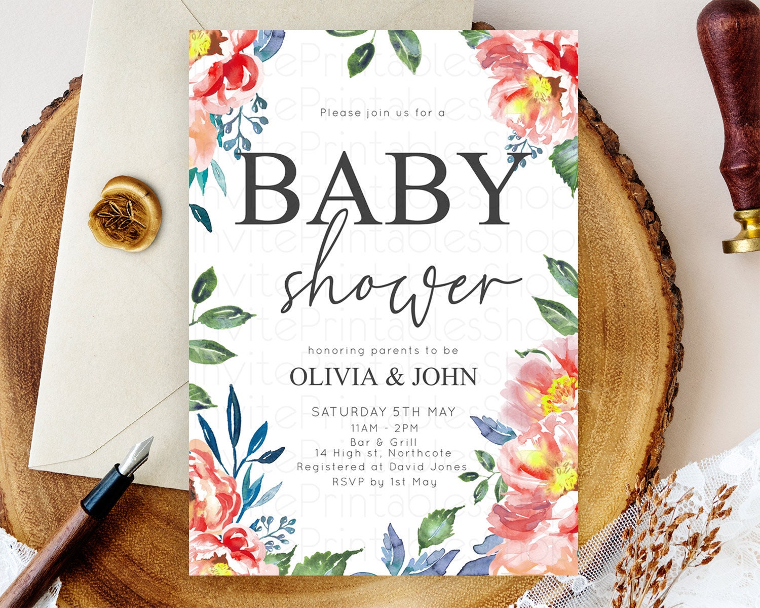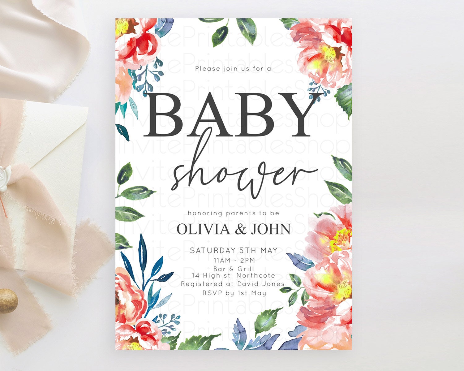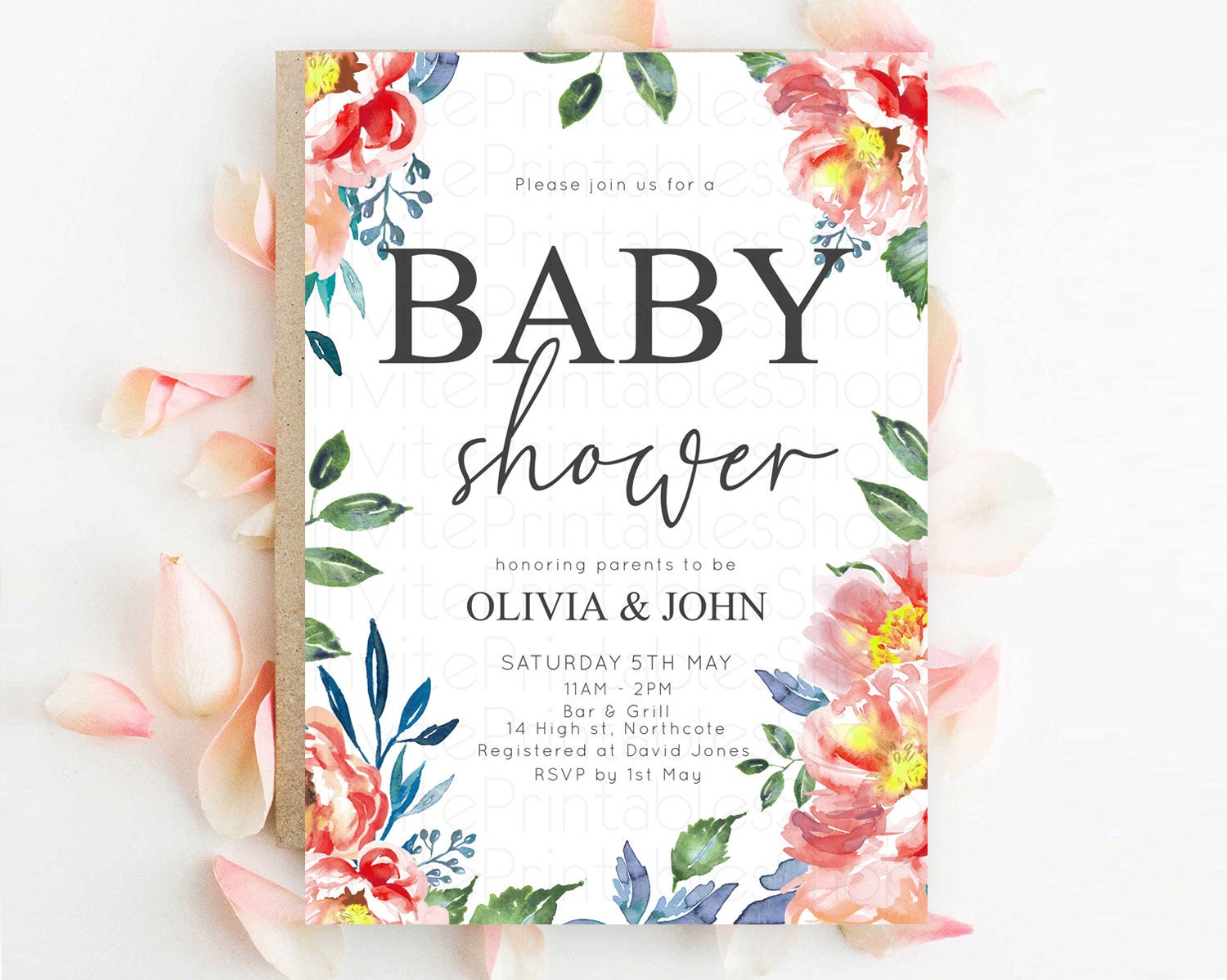 Wildflower Baby Shower Invitation Secret Garden Baby Shower Invitation Pastel Flowers Invite Enchanted Garden Shower Floral Theme D10751