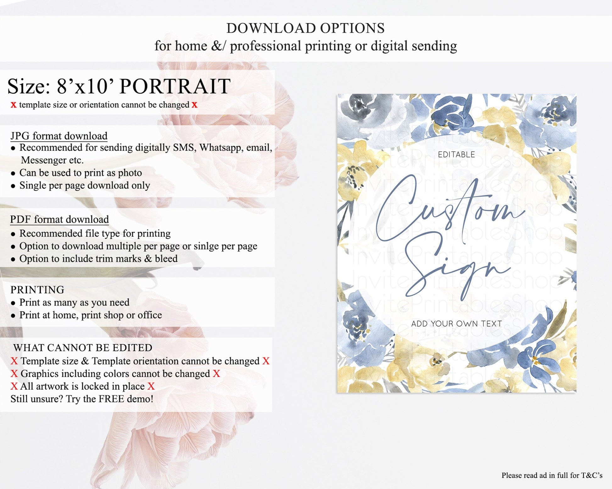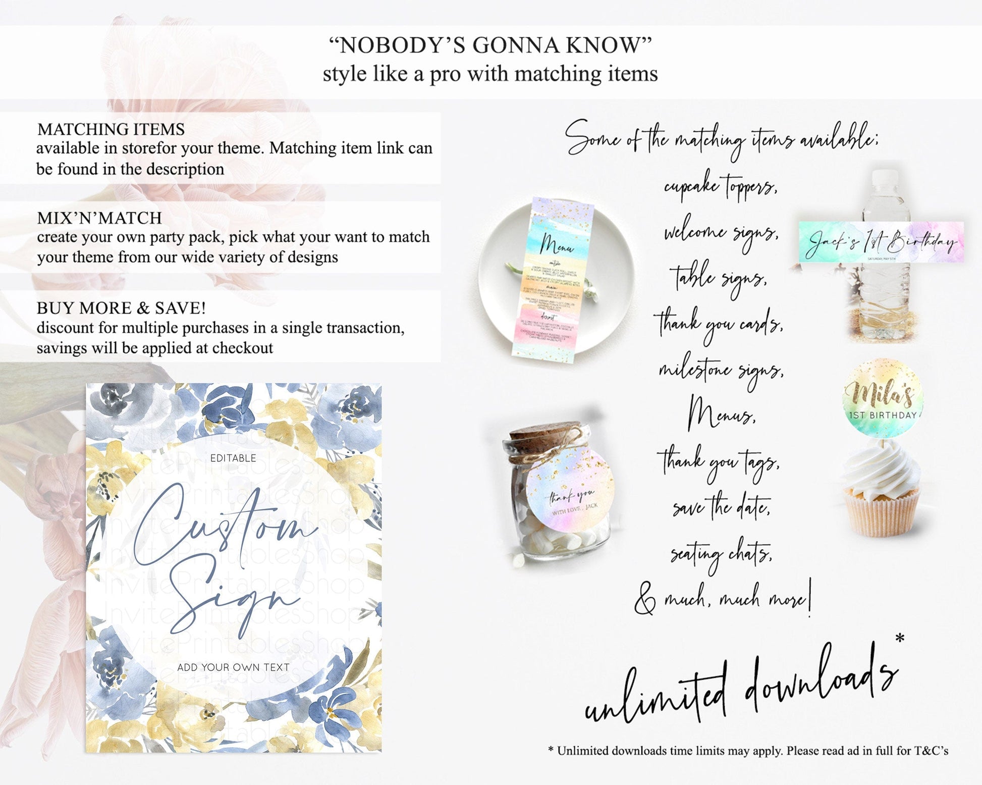 Wildflower Floral Table Sign Decor Secret Garden Sign Template Pastel Floral Garden Party Boho Flowers Birthday Baby Shower Wedding D10189
