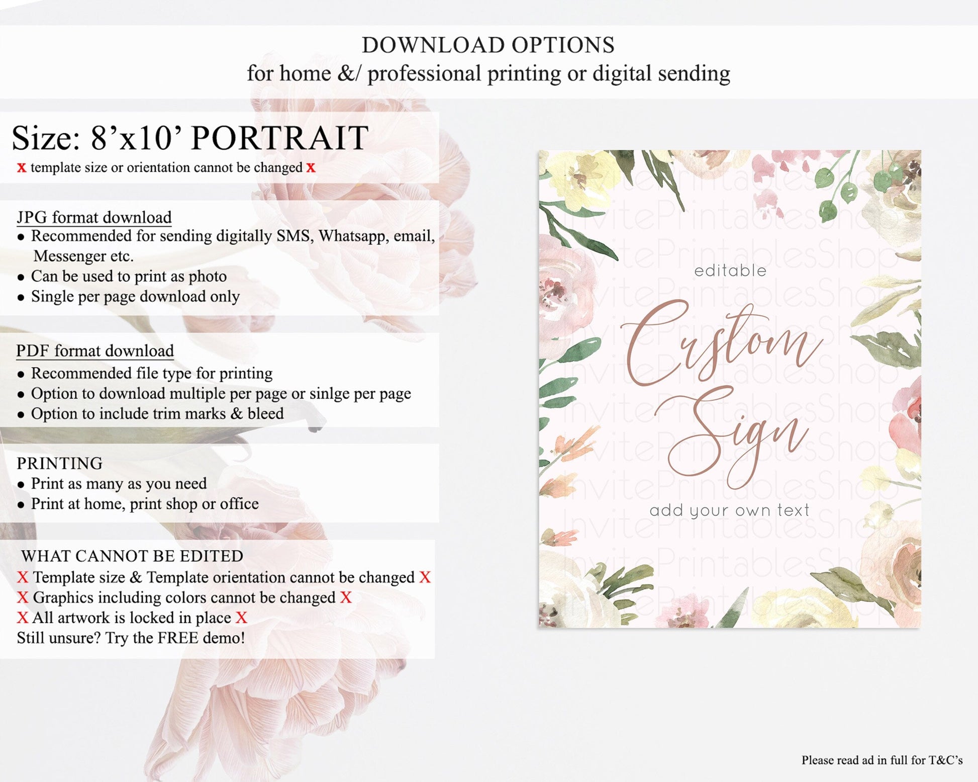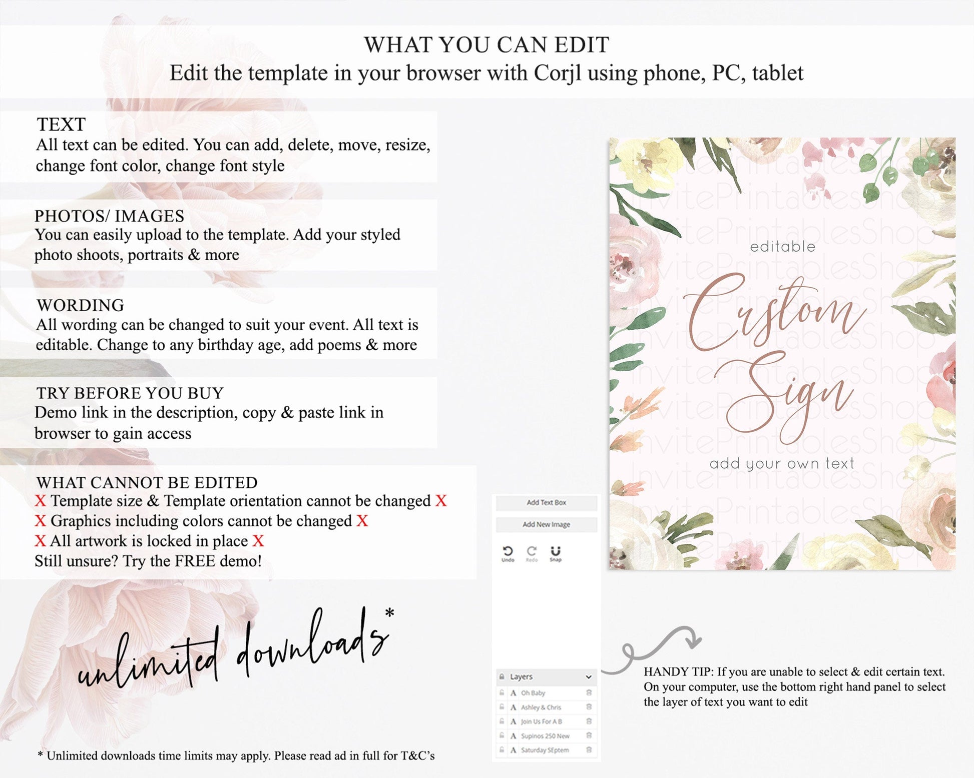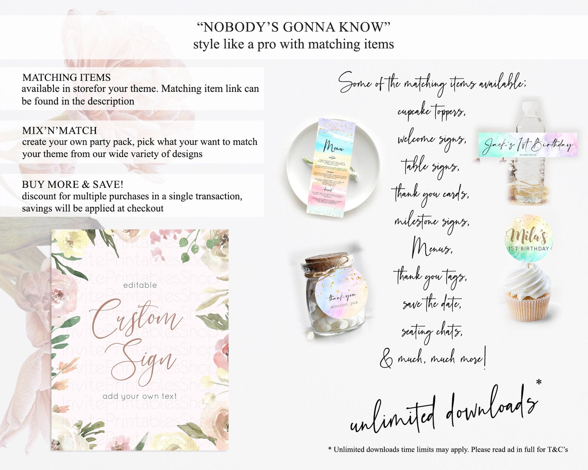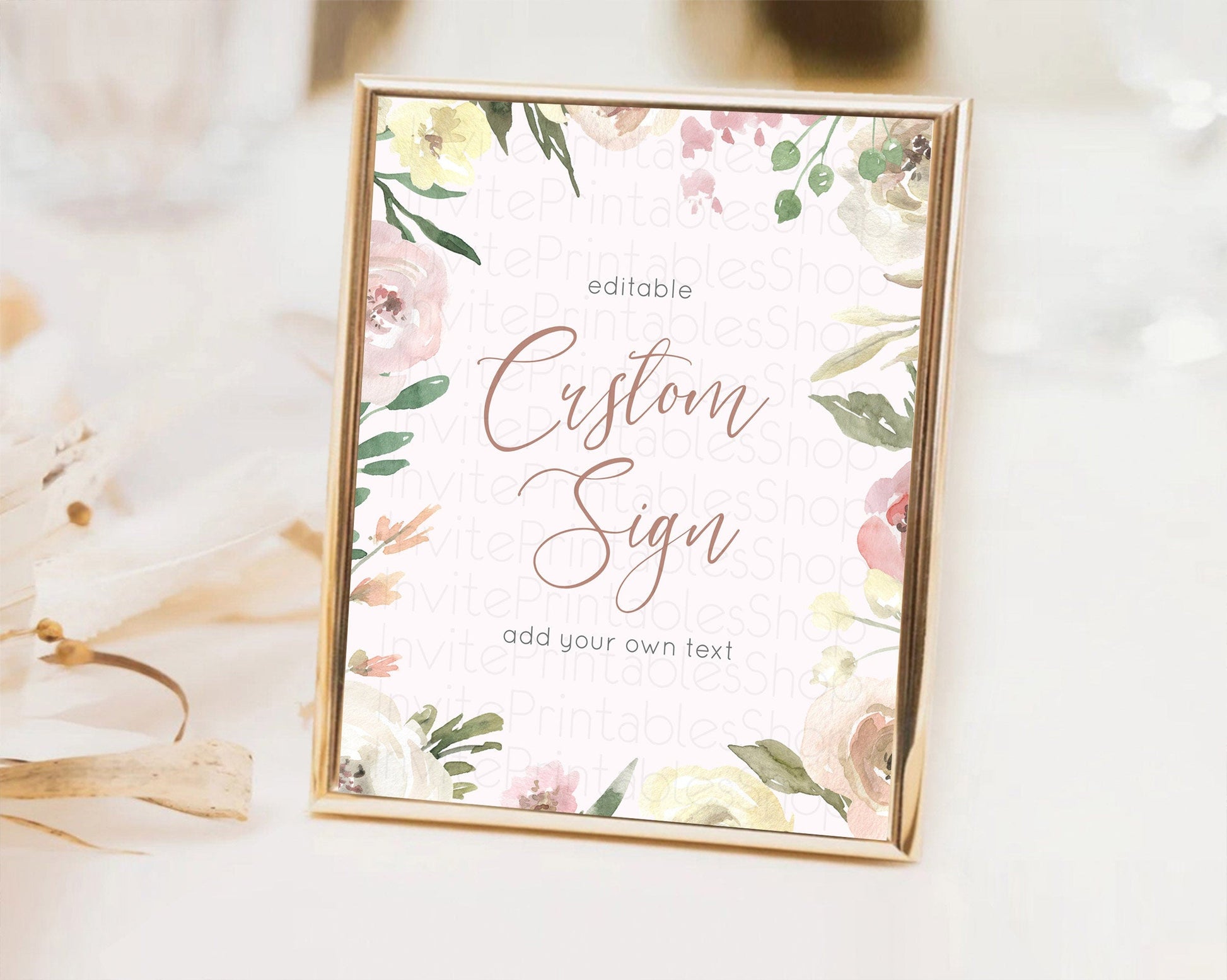 Wildflower Floral Table Sign Decor Secret Garden Sign Template Pastel Floral Garden Party Boho Flowers Birthday Baby Shower Wedding D10192