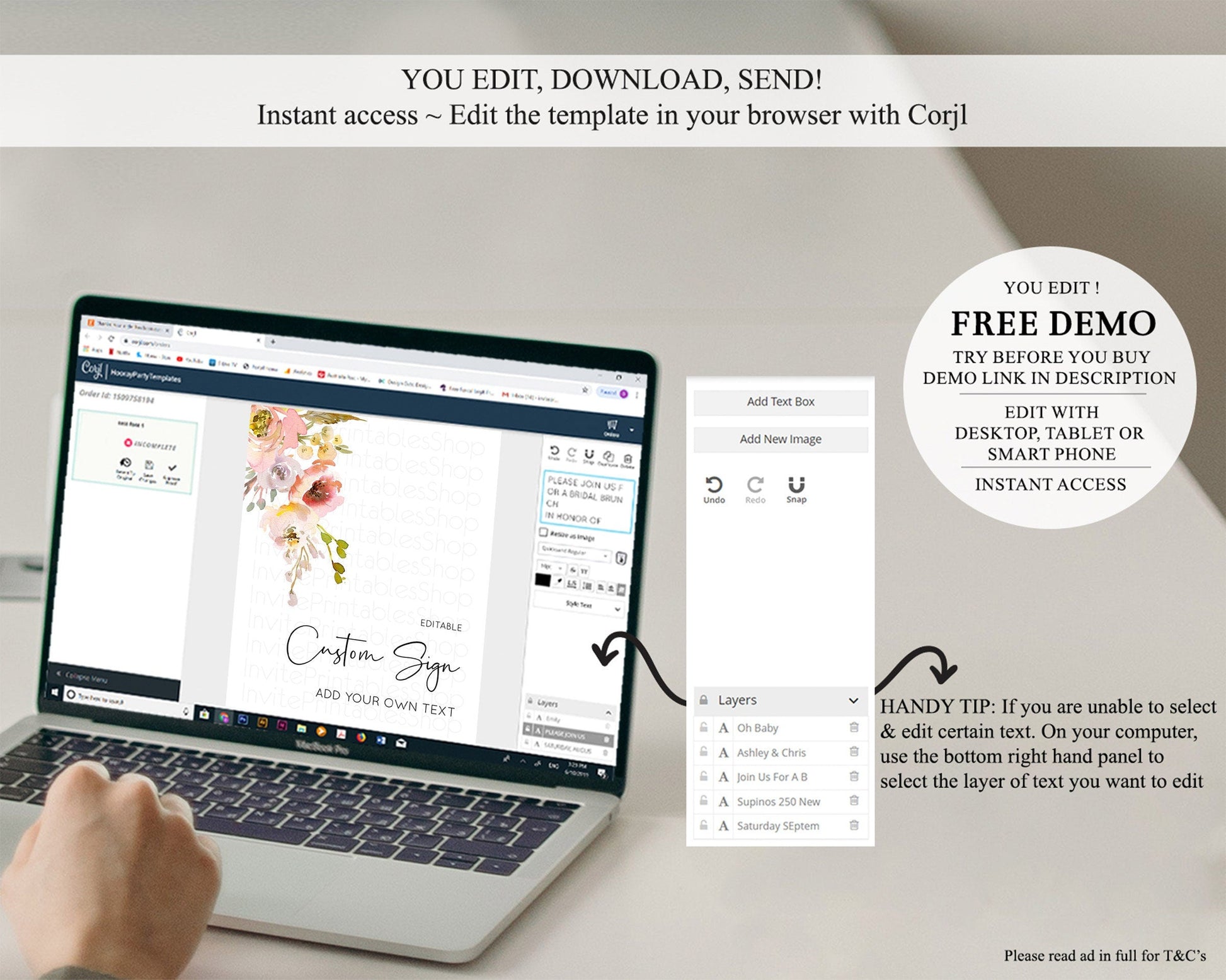 • After purchase, Corjl emails your editing link. Allow up to 15 minutes for delivery.