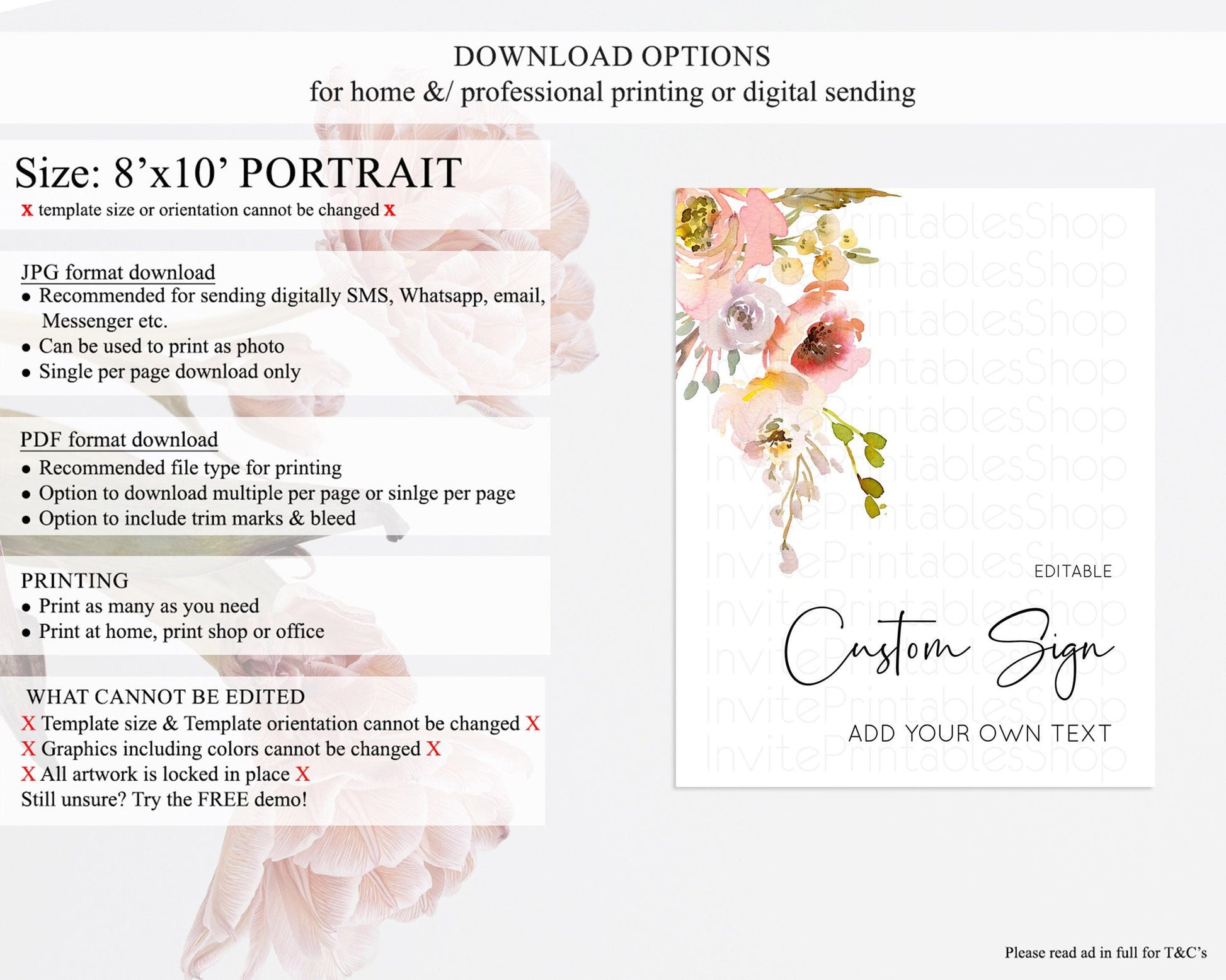 • Template size & orientation cannot be changed. Please use the demo link to confirm this product suits your needs.