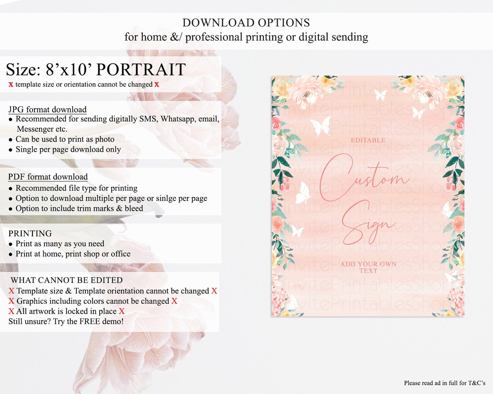 • Template size & orientation cannot be changed. Please use the demo link to confirm this product suits your needs.