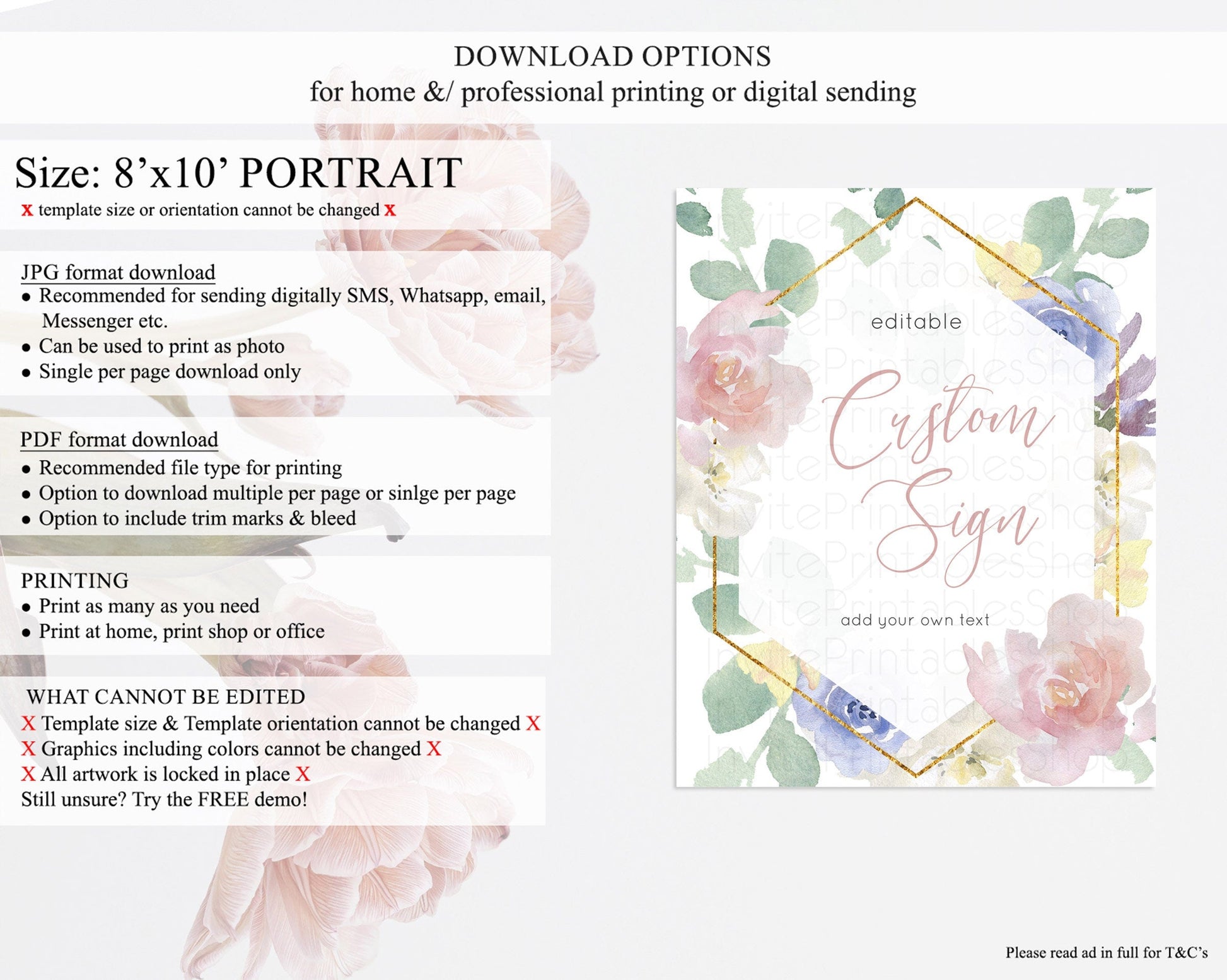 • Template size & orientation cannot be changed. Please use the demo link to confirm this product suits your needs.