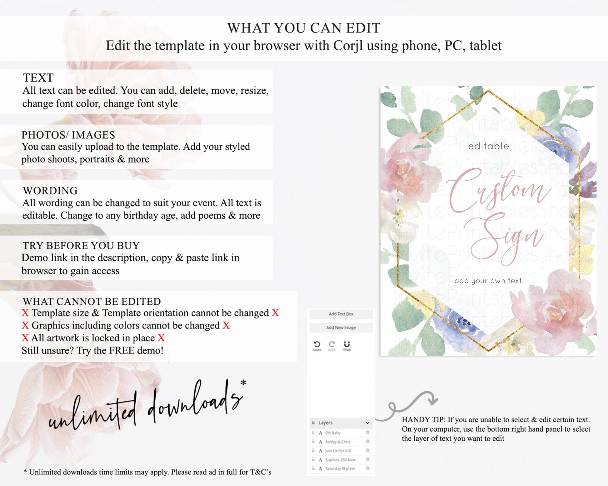 • After purchase, Corjl emails your editing link. Allow up to 15 minutes for delivery.