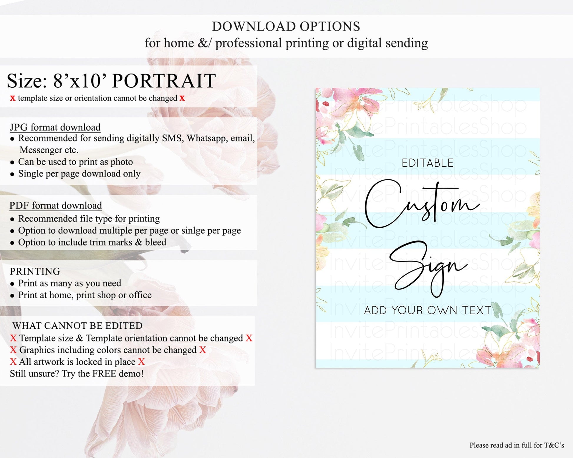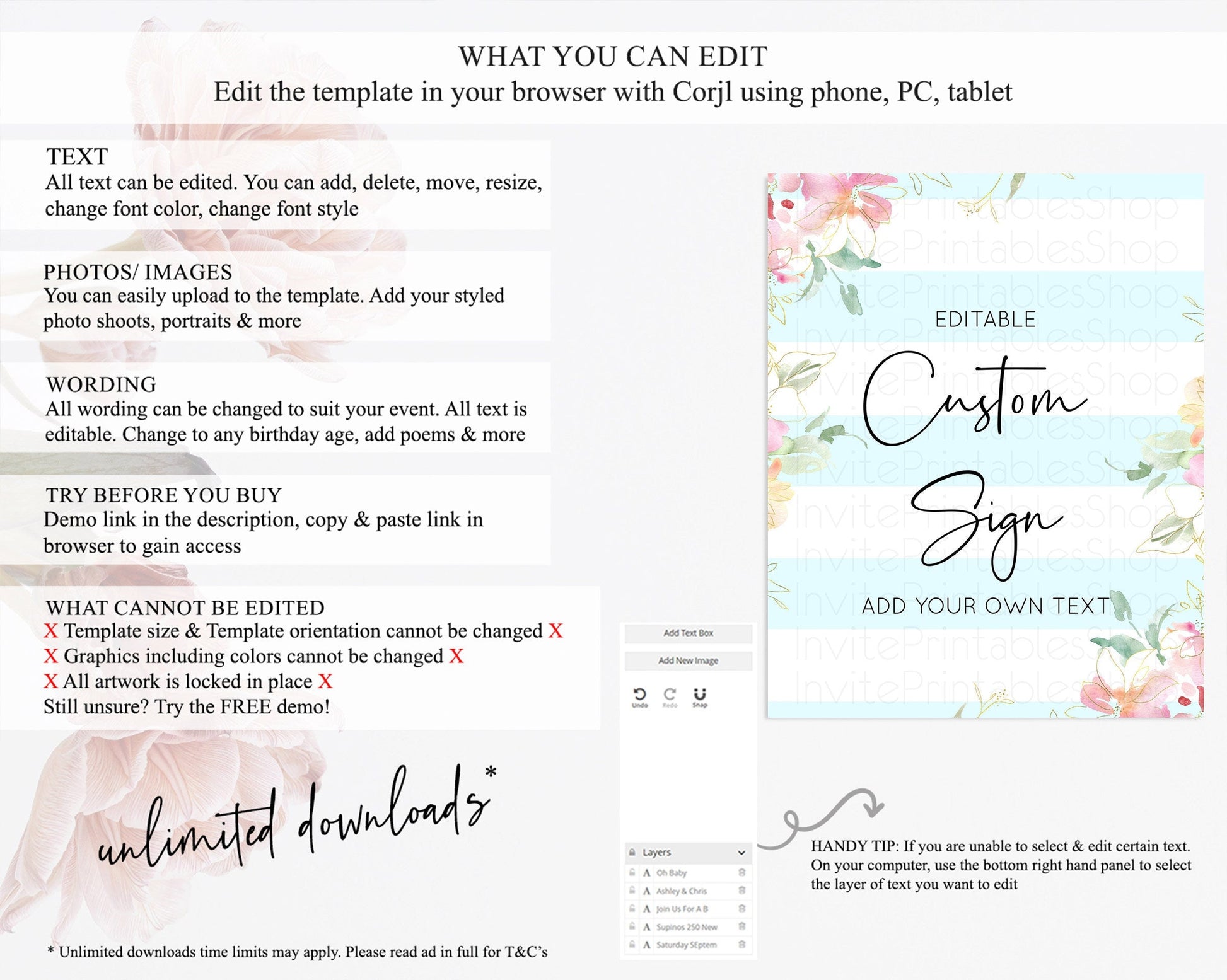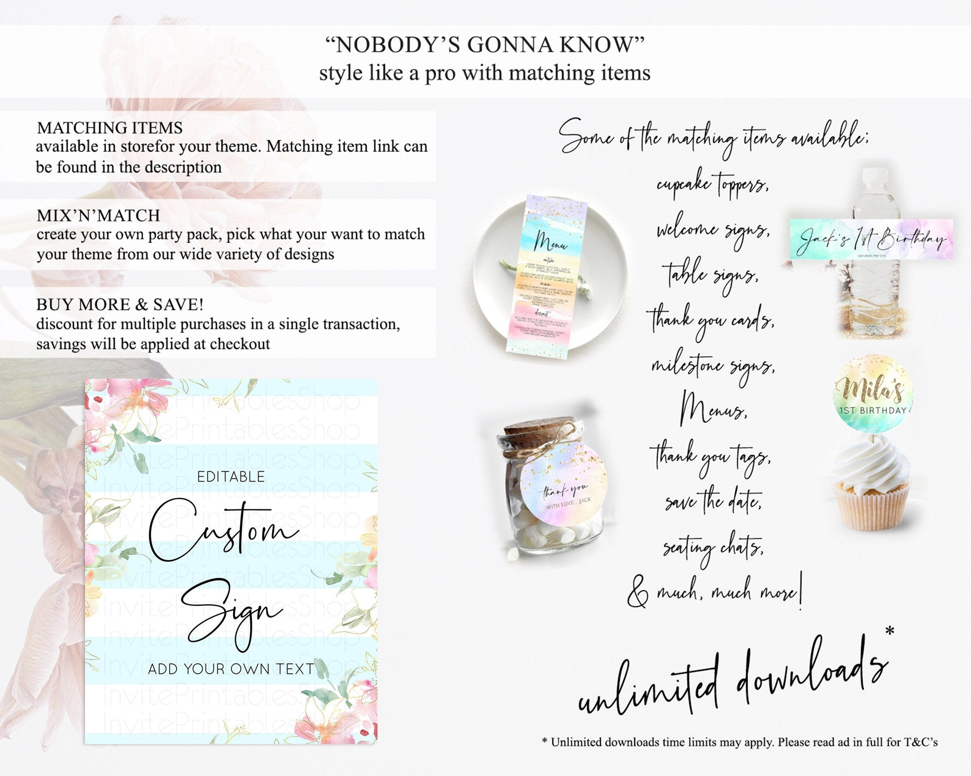 Wildflower Floral Table Sign Decor Secret Garden Sign Template Pastel Floral Garden Party Boho Flowers Birthday Baby Shower Wedding D10303