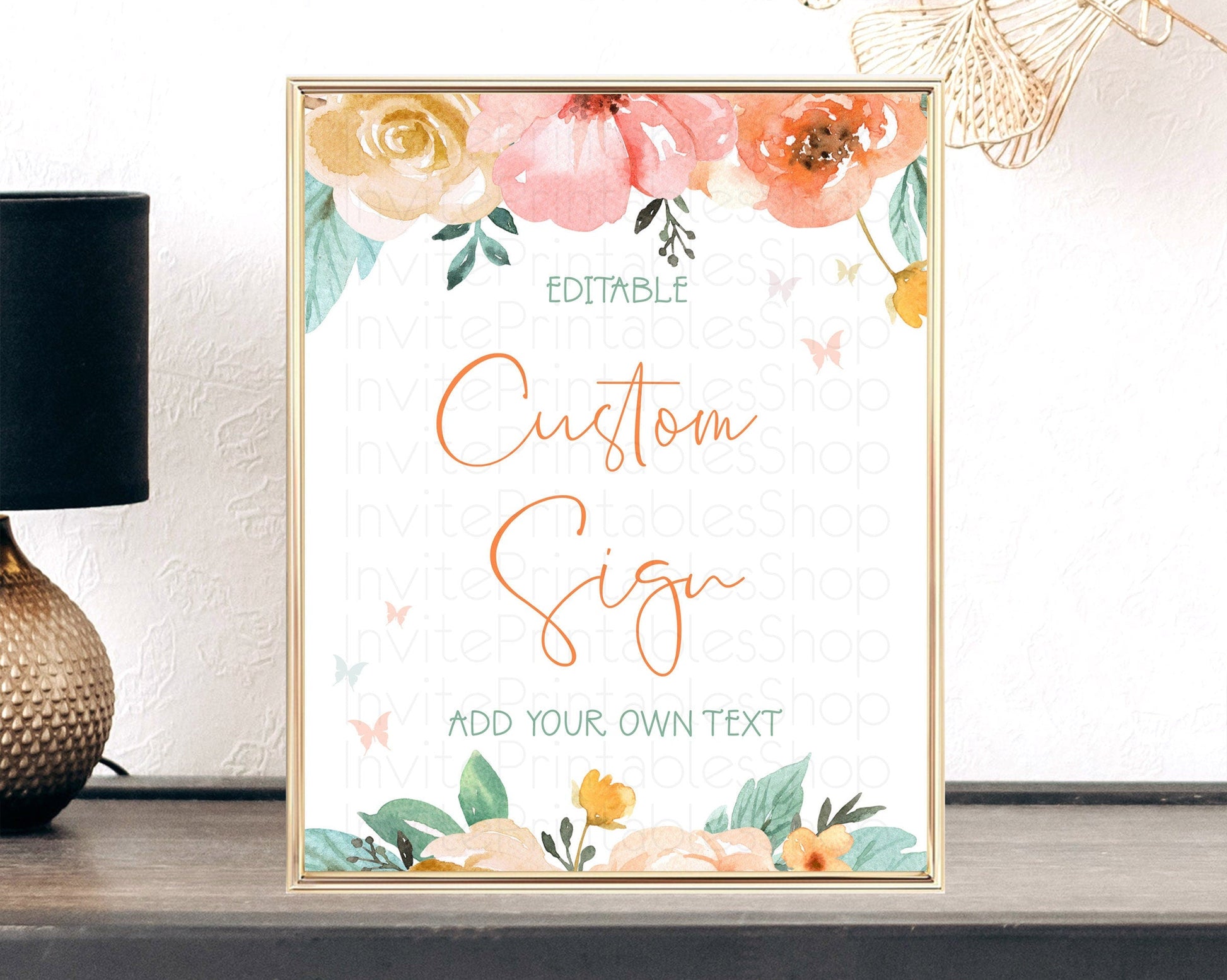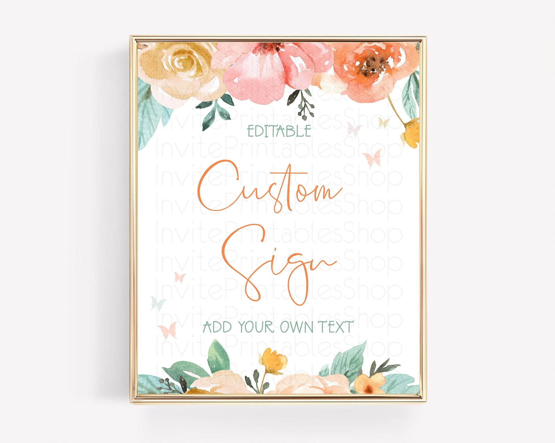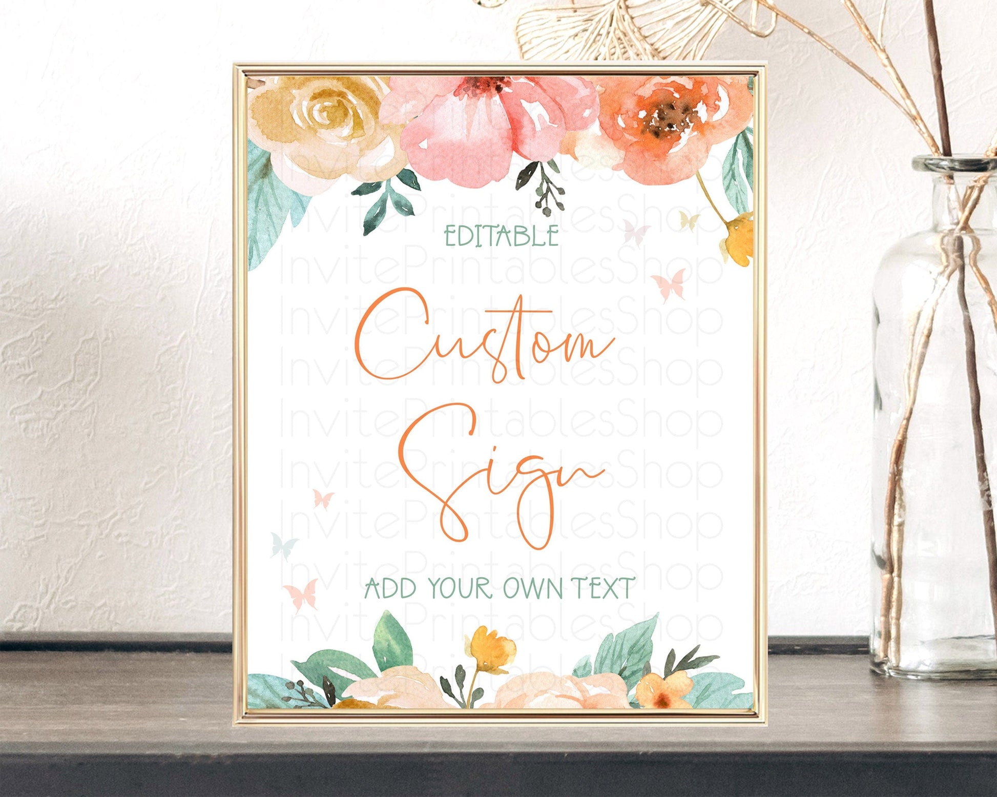 Wildflower Floral Table Sign Decor Secret Garden Sign Template Pastel Floral Garden Party Boho Flowers Birthday Baby Shower Wedding D10347