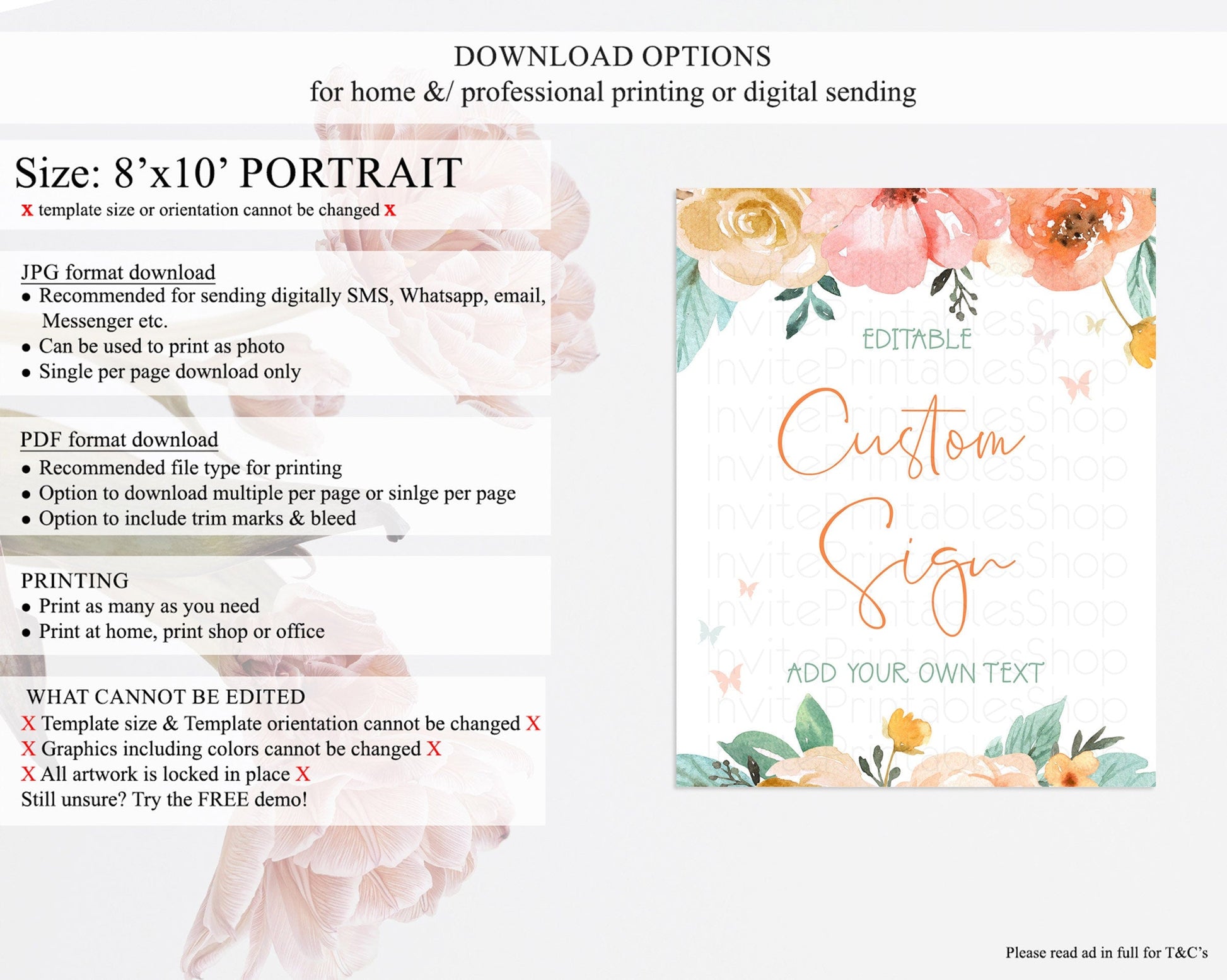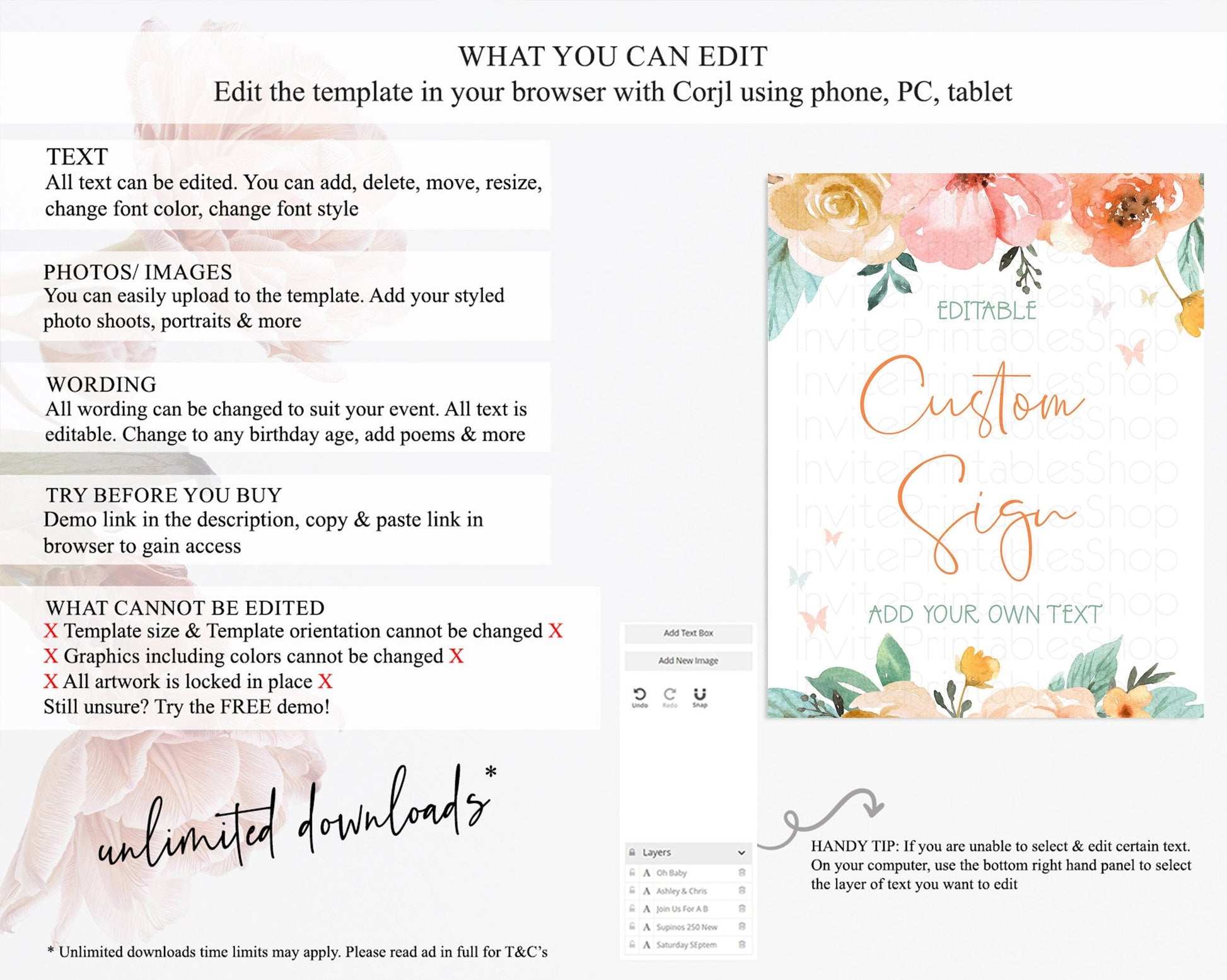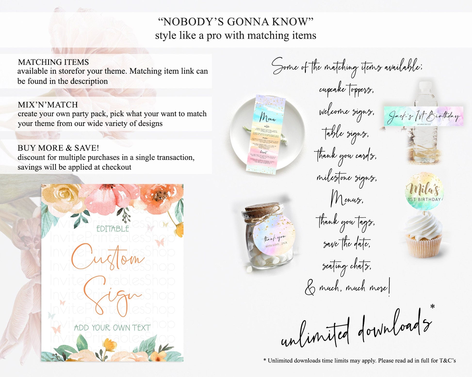 Wildflower Floral Table Sign Decor Secret Garden Sign Template Pastel Floral Garden Party Boho Flowers Birthday Baby Shower Wedding D10347