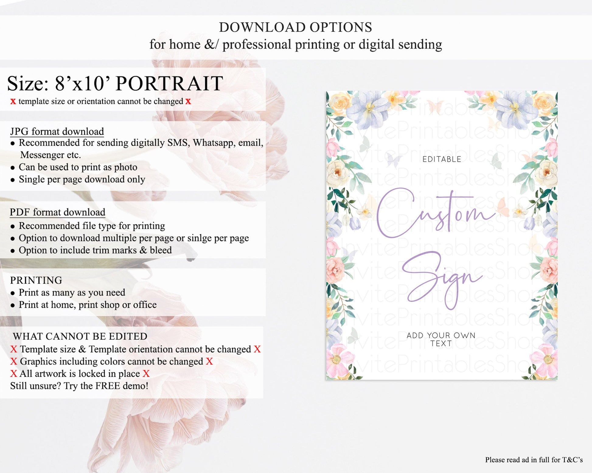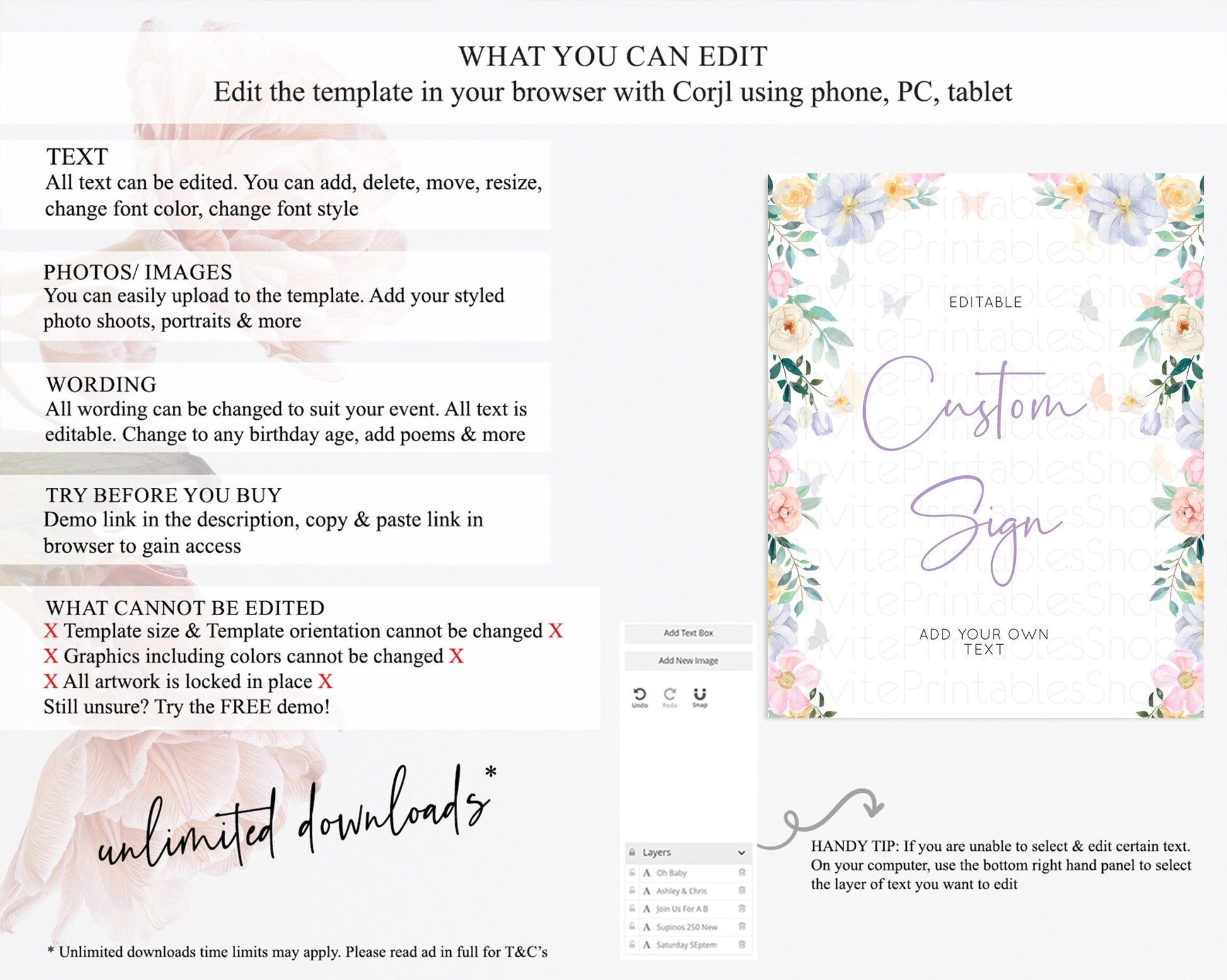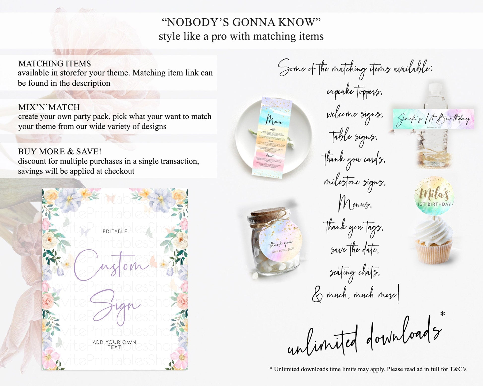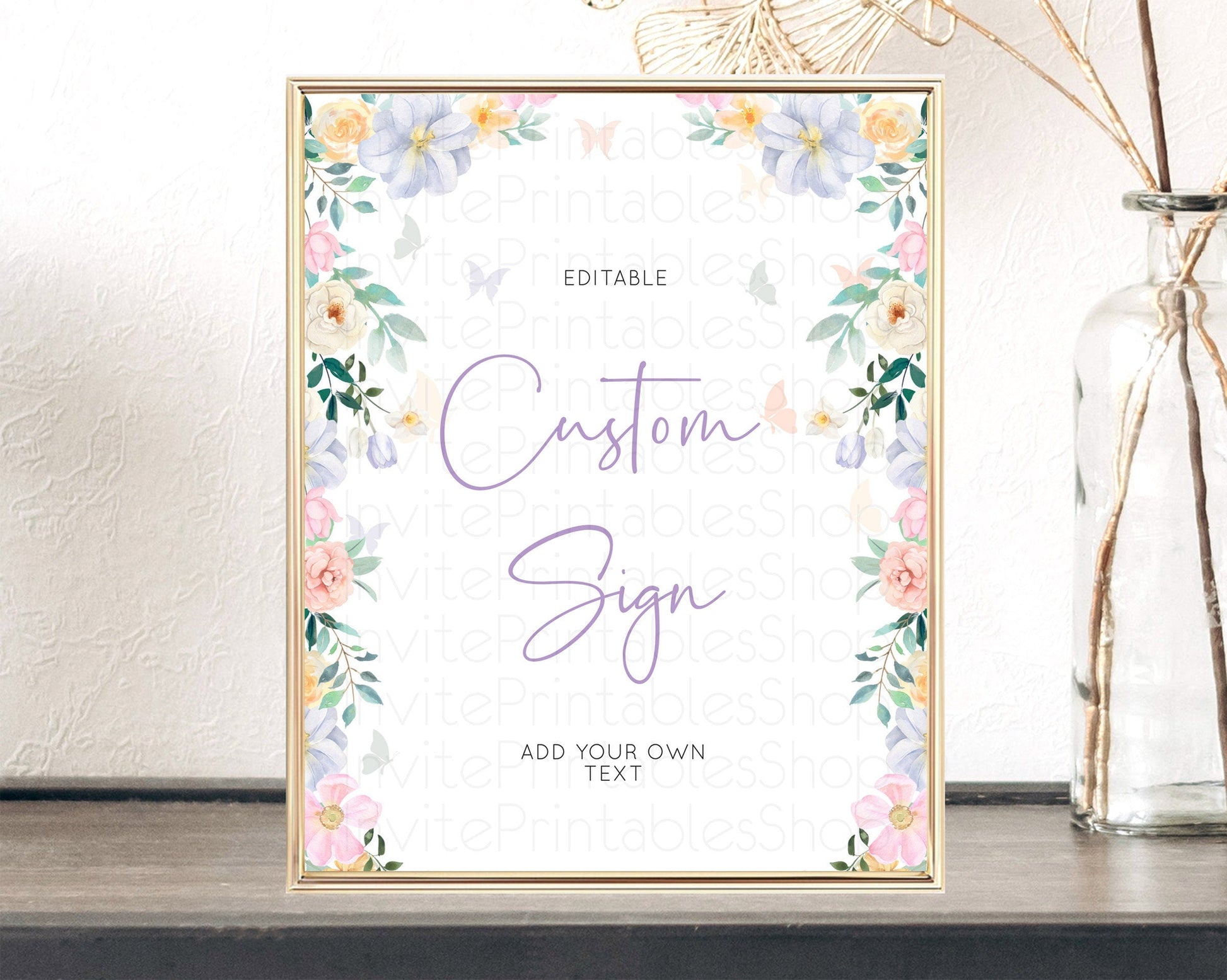 Wildflower Floral Table Sign Decor Secret Garden Sign Template Pastel Floral Garden Party Boho Flowers Birthday Baby Shower Wedding D10472