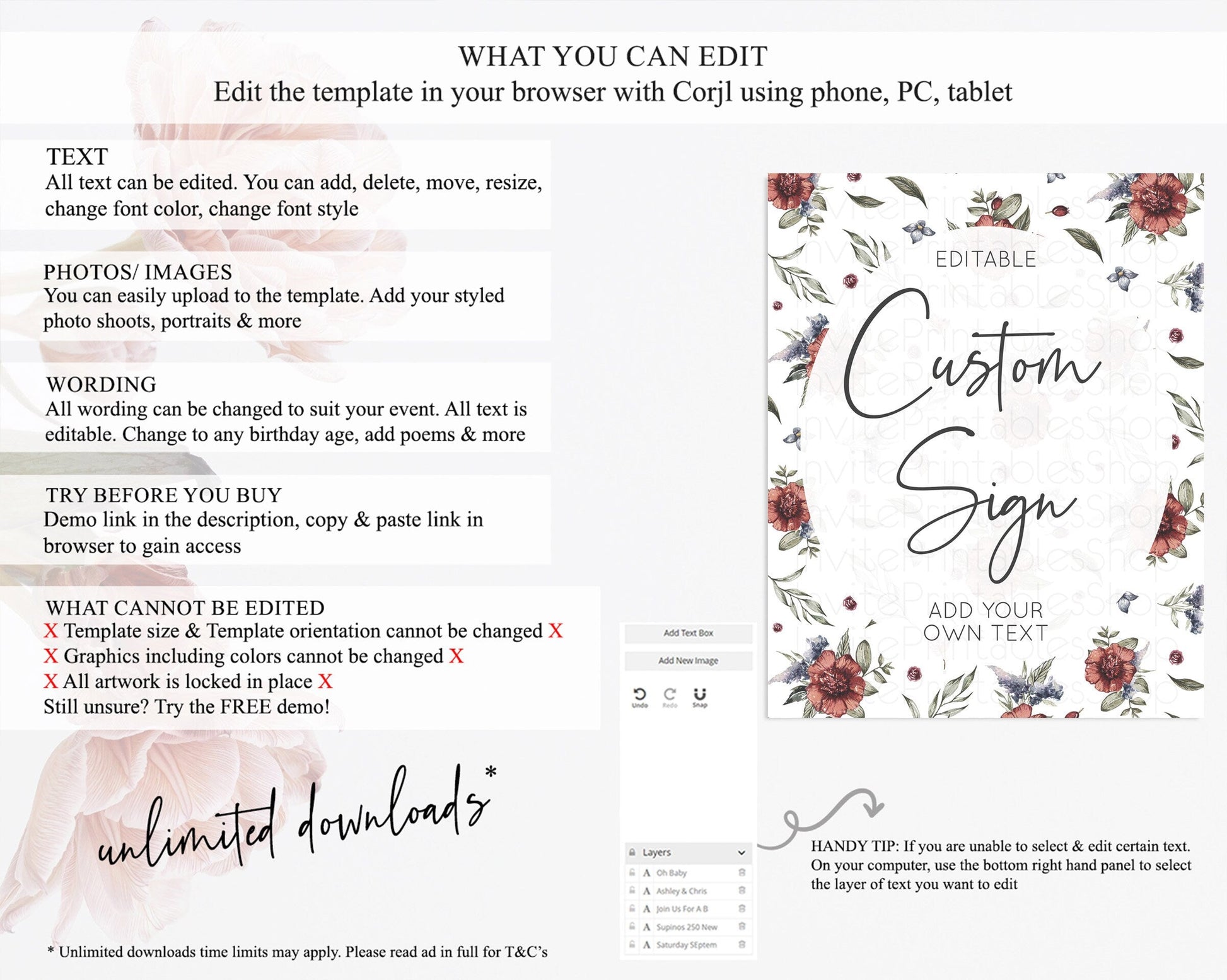 • After purchase, Corjl emails your editing link. Allow up to 15 minutes for delivery.