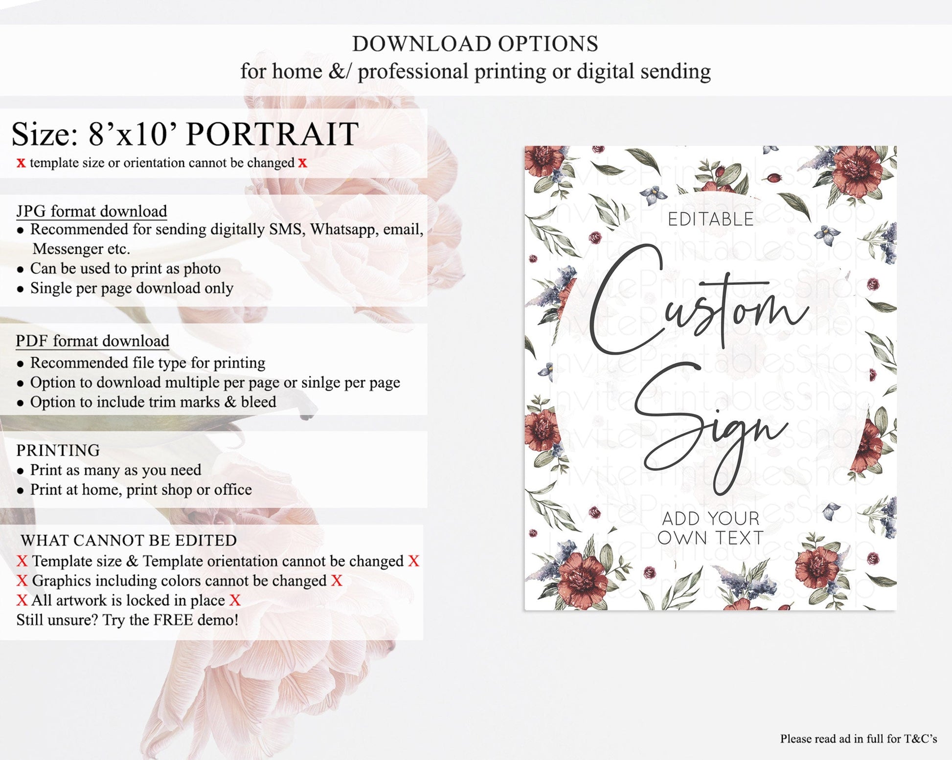 • Template size & orientation cannot be changed. Please use the demo link to confirm this product suits your needs.