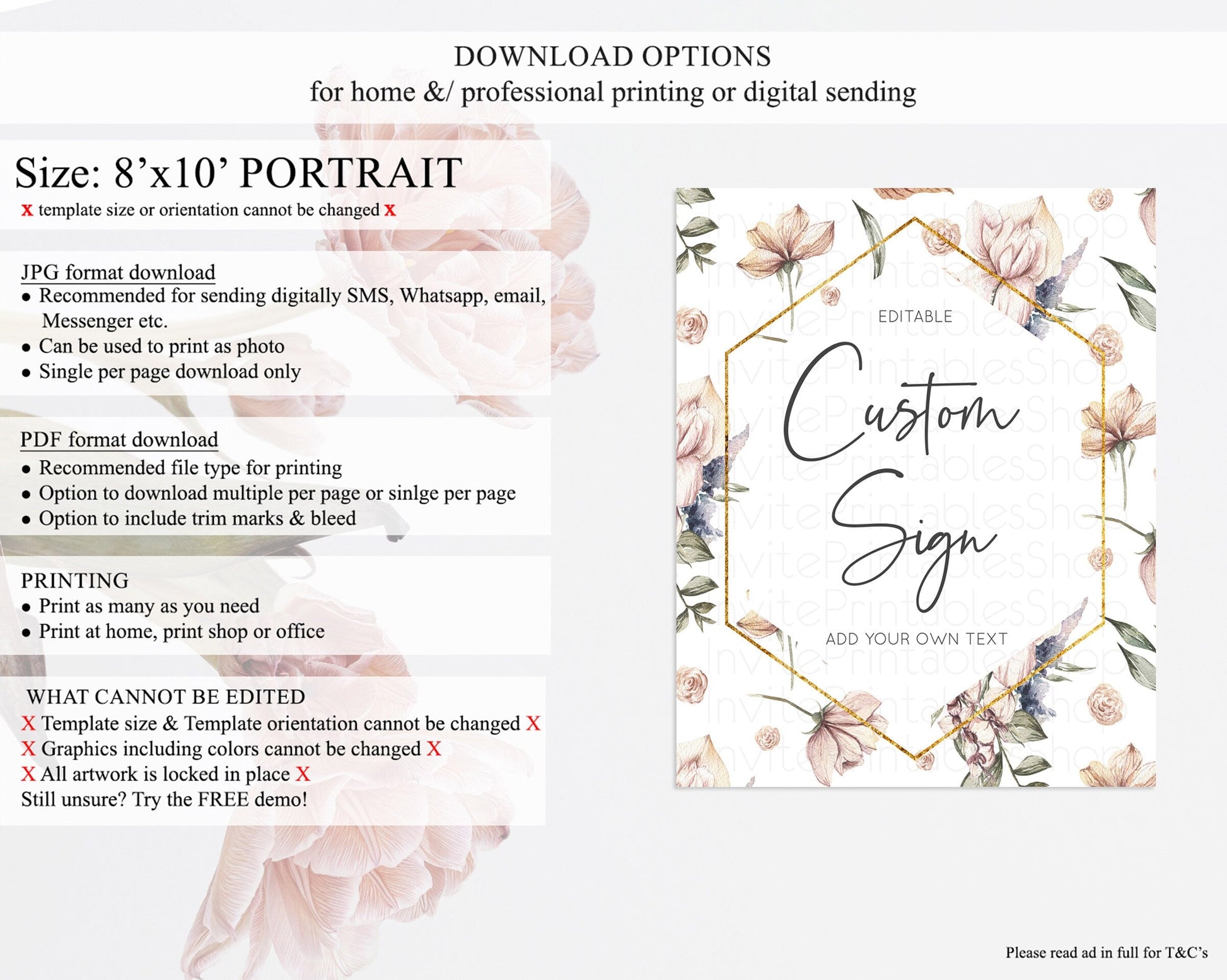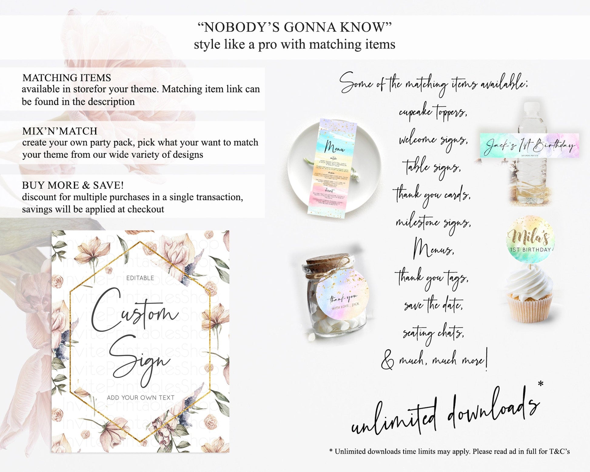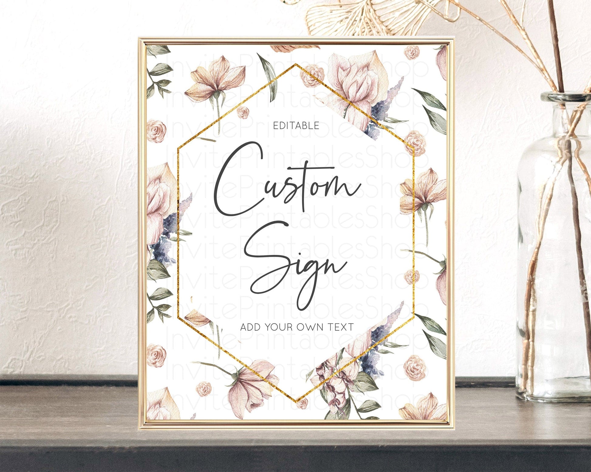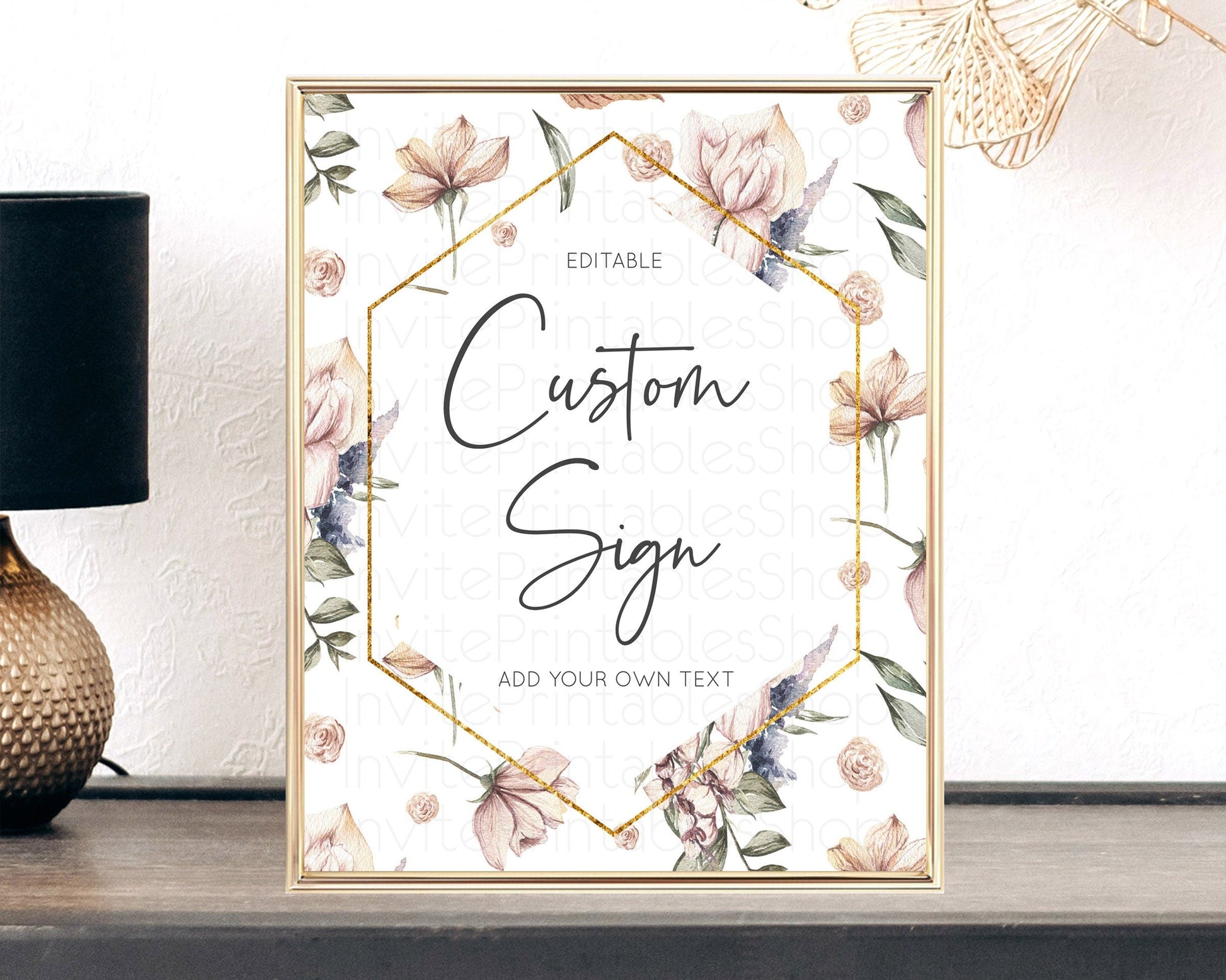 Wildflower Floral Table Sign Decor Secret Garden Sign Template Pastel Floral Garden Party Boho Flowers Birthday Baby Shower Wedding D10504