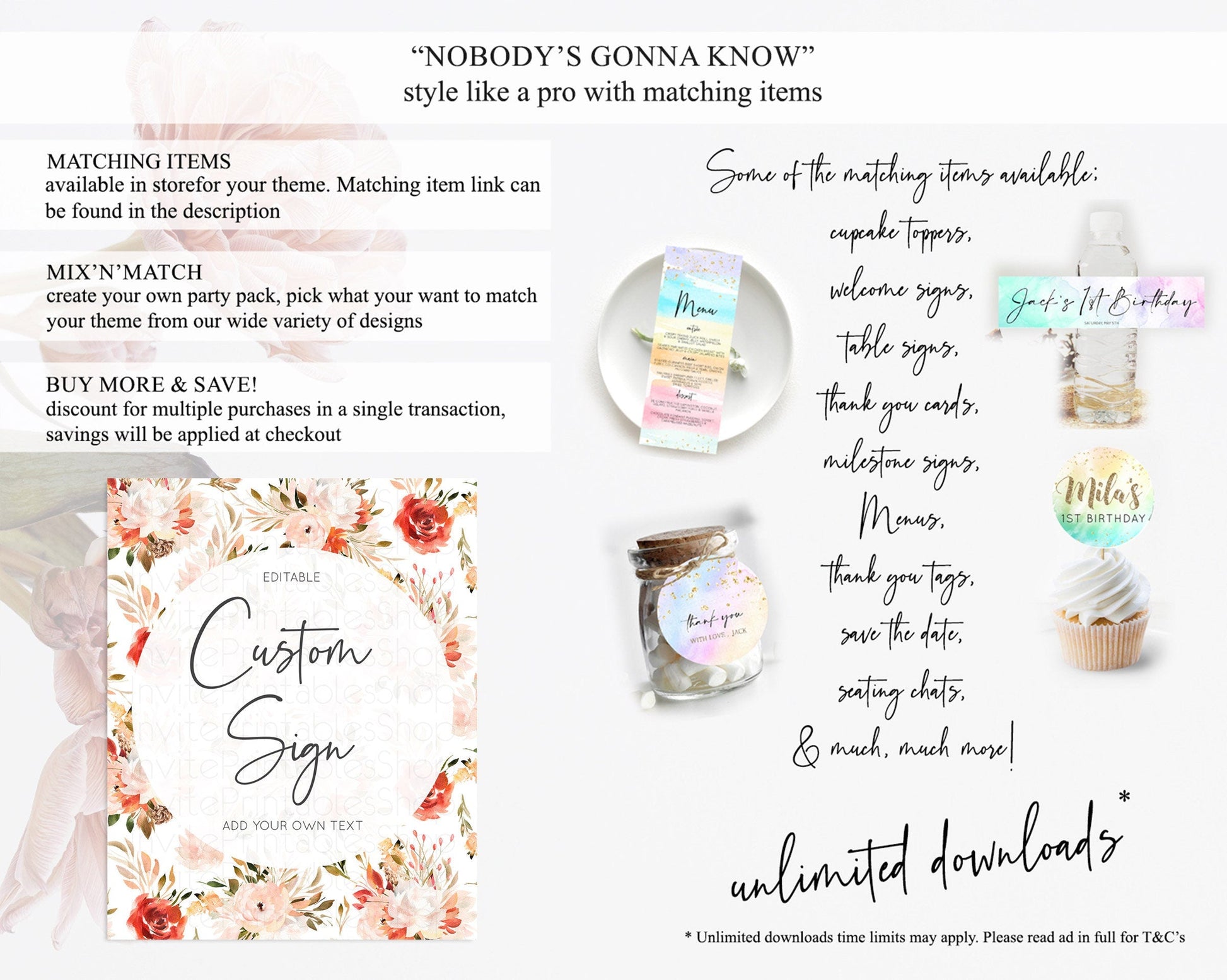 Wildflower Floral Table Sign Decor Secret Garden Sign Template Pastel Floral Garden Party Boho Flowers Birthday Baby Shower Wedding D10540