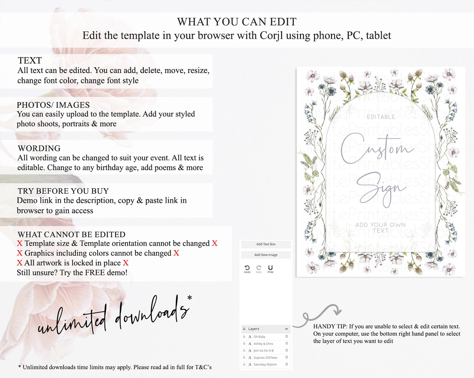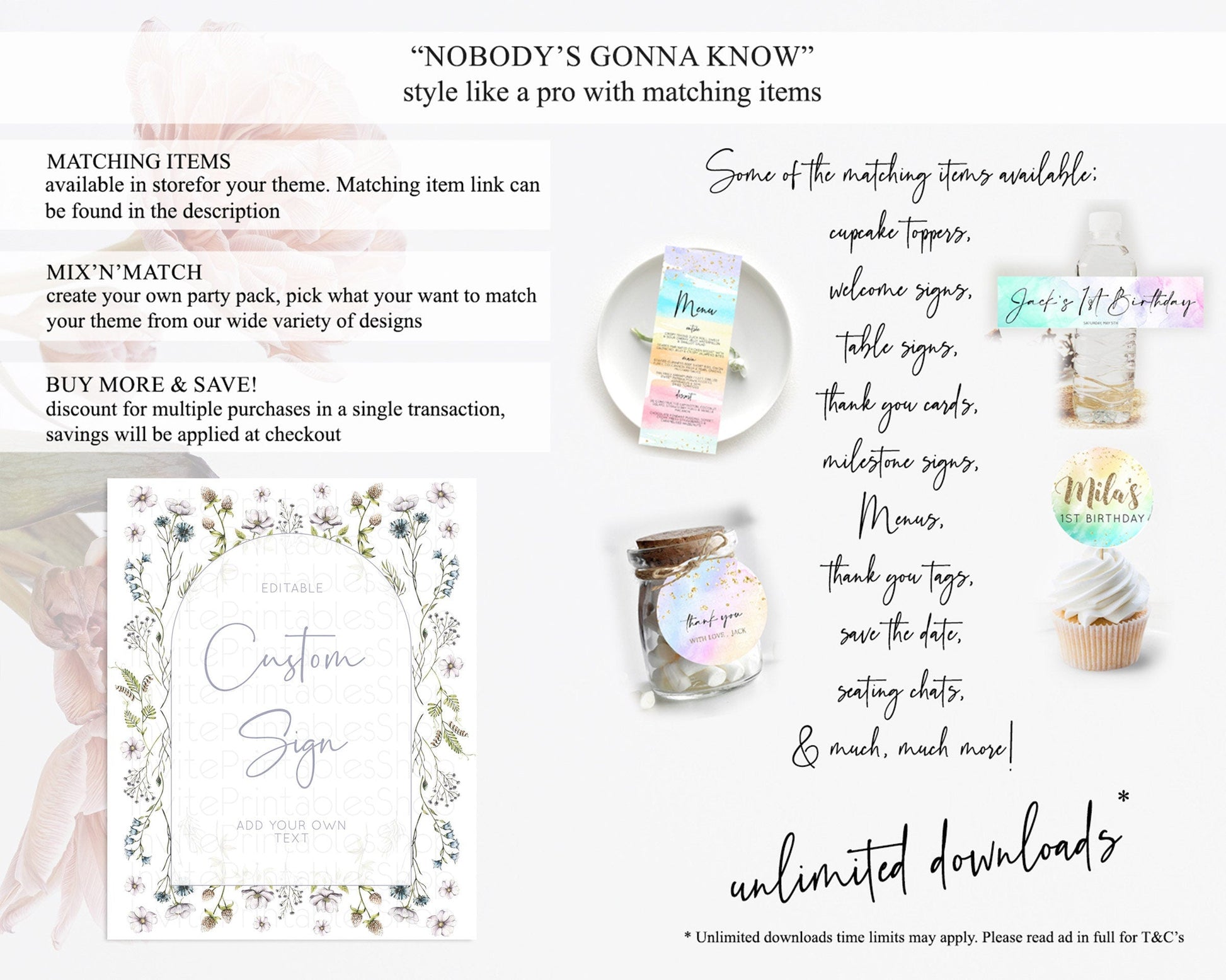 Wildflower Floral Table Sign Decor Secret Garden Sign Template Pastel Floral Garden Party Boho Flowers Birthday Baby Shower Wedding D10603