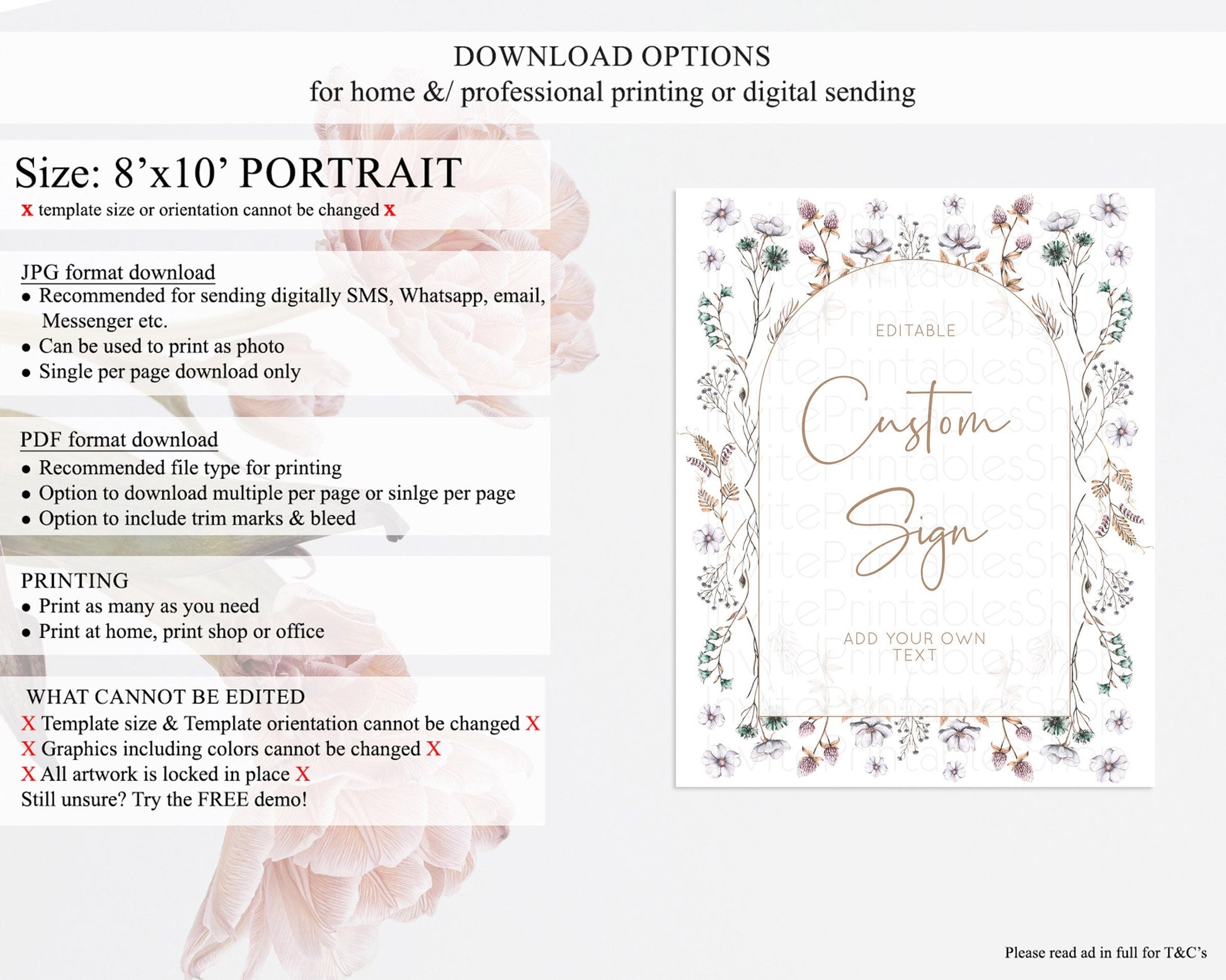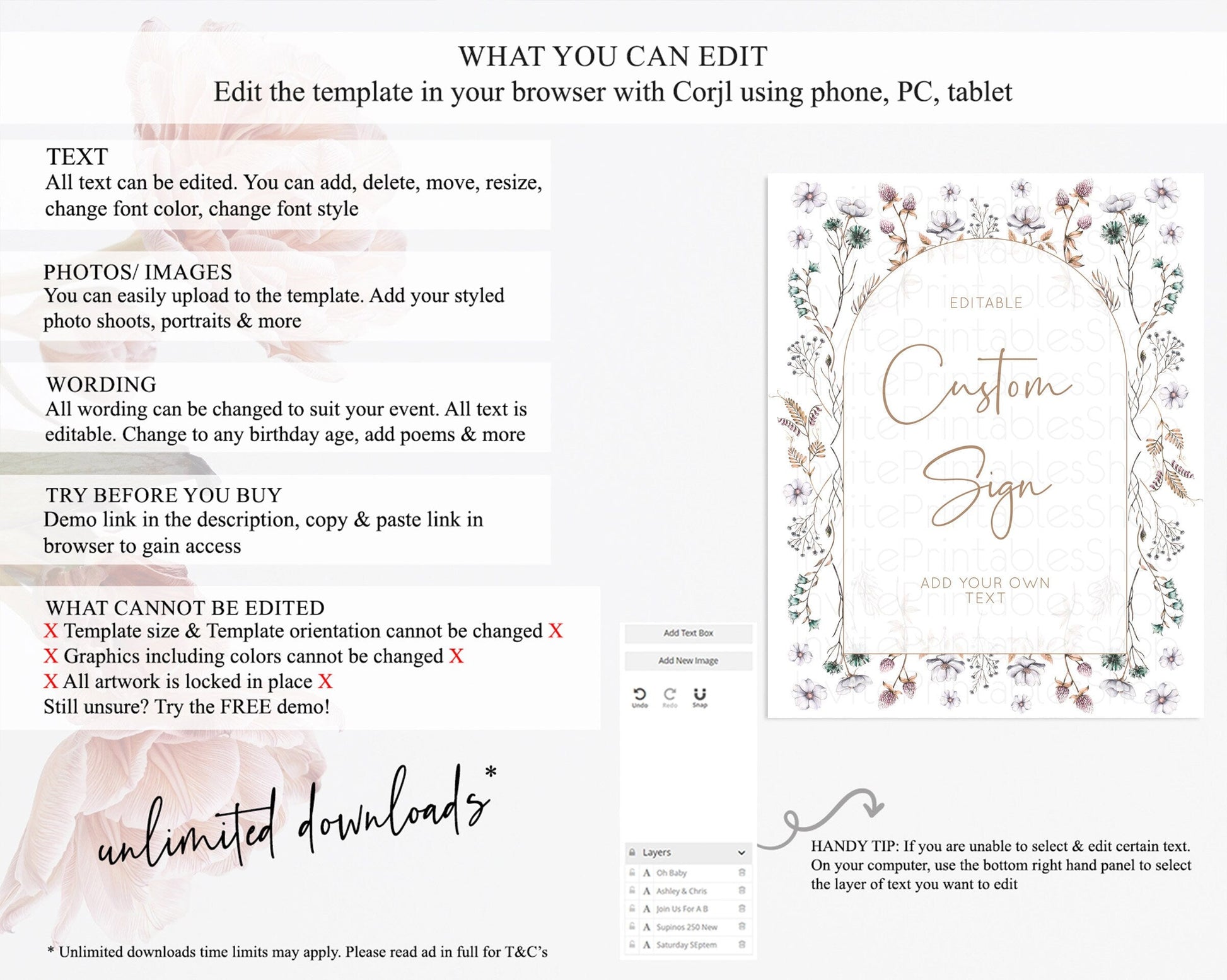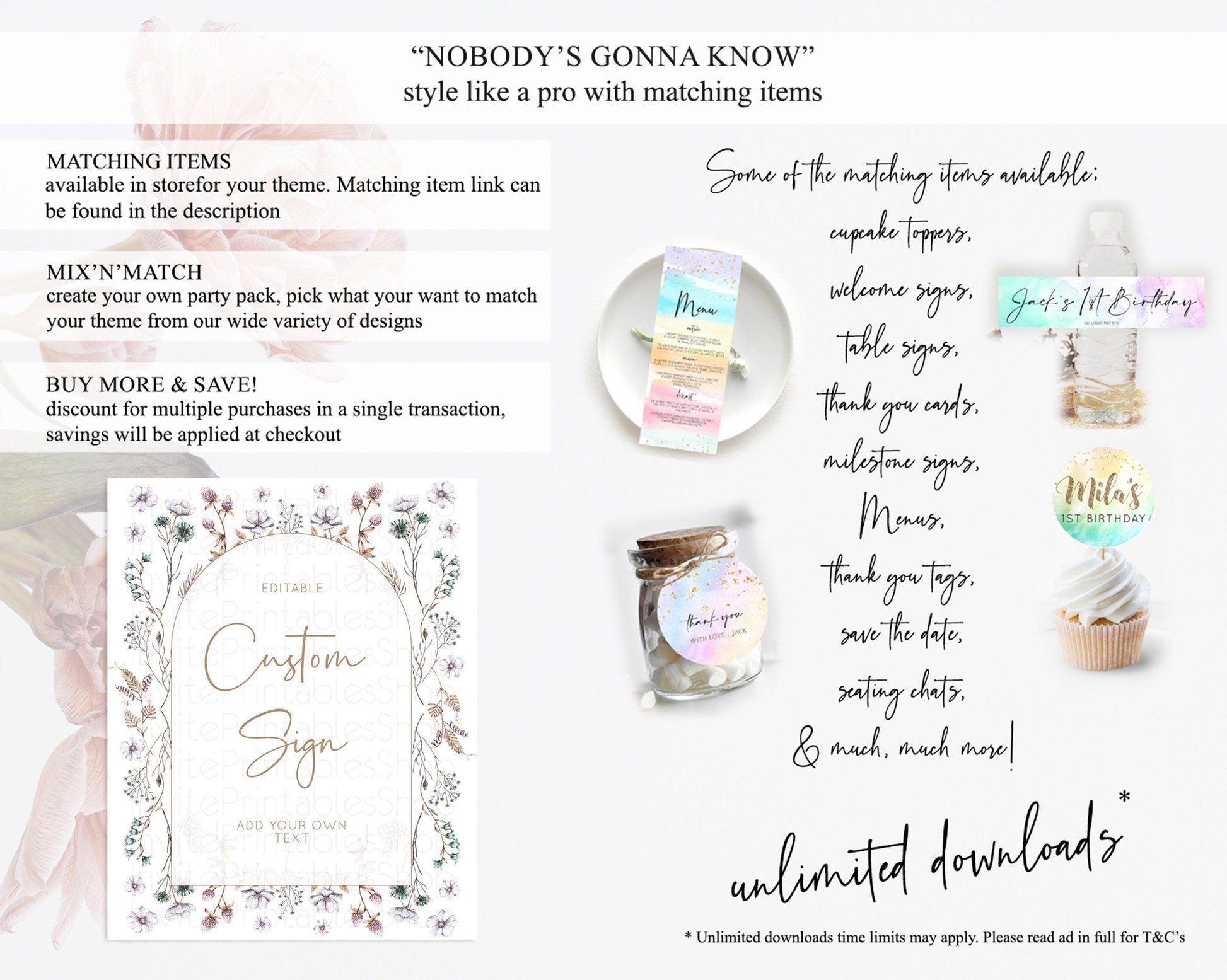Wildflower Floral Table Sign Decor Secret Garden Sign Template Pastel Floral Garden Party Boho Flowers Birthday Baby Shower Wedding D10604
