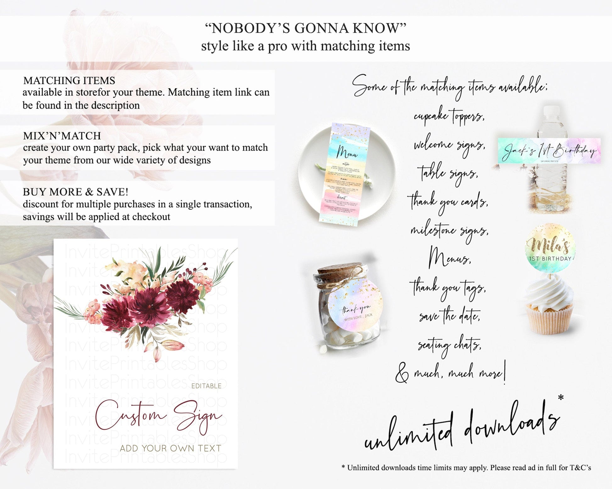 Wildflower Floral Table Sign Decor Secret Garden Sign Template Pastel Floral Garden Party Boho Flowers Birthday Baby Shower Wedding D10685