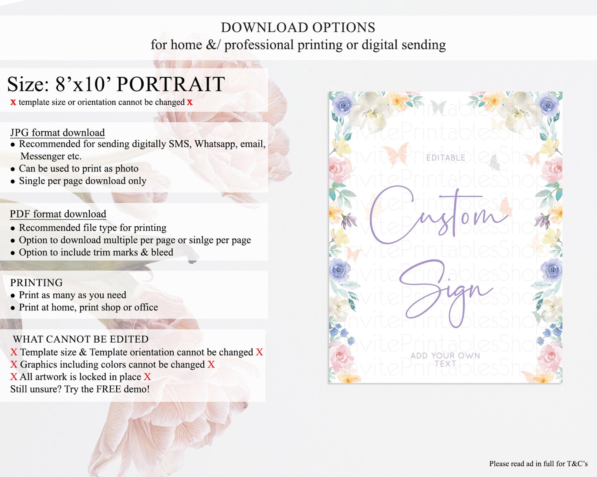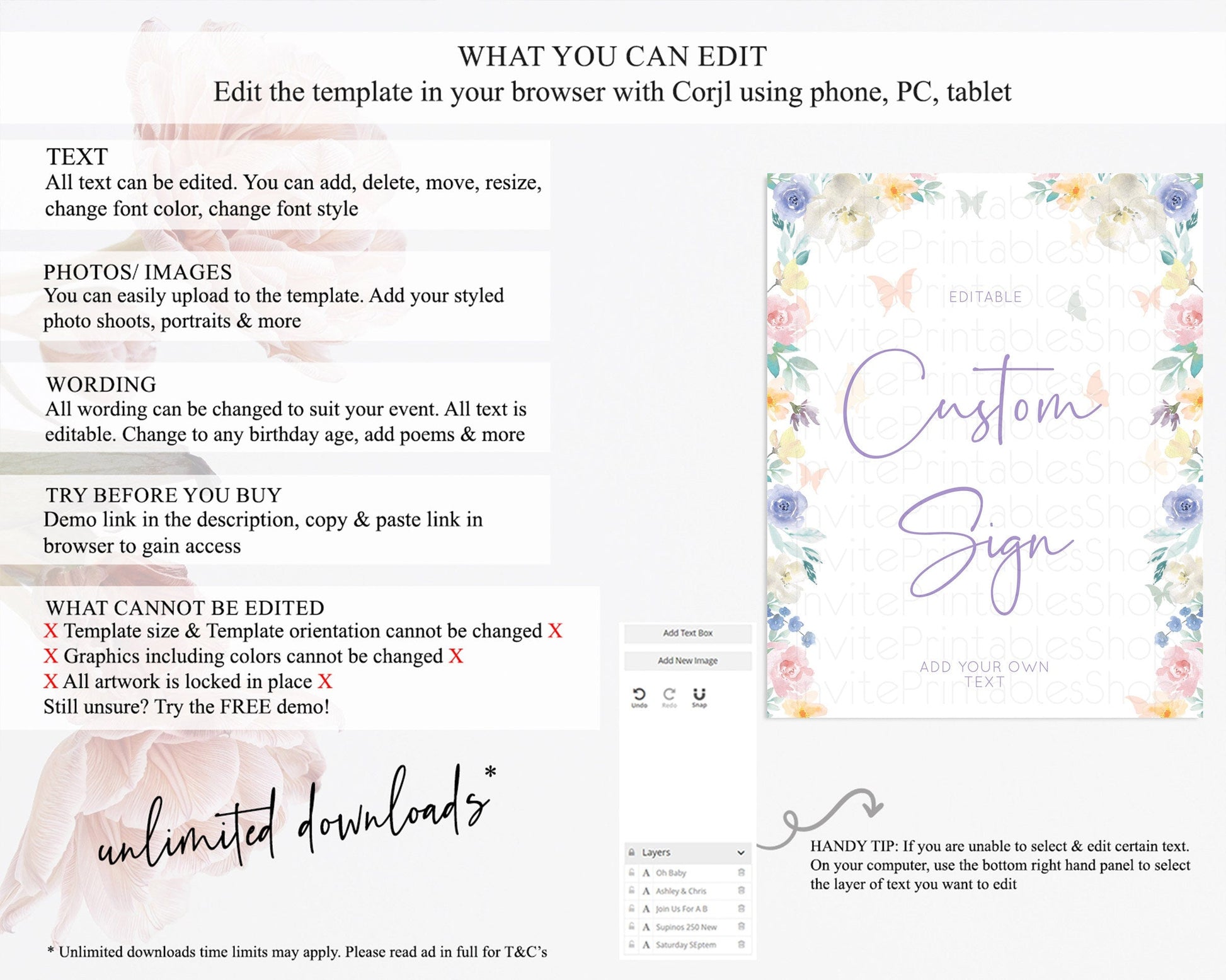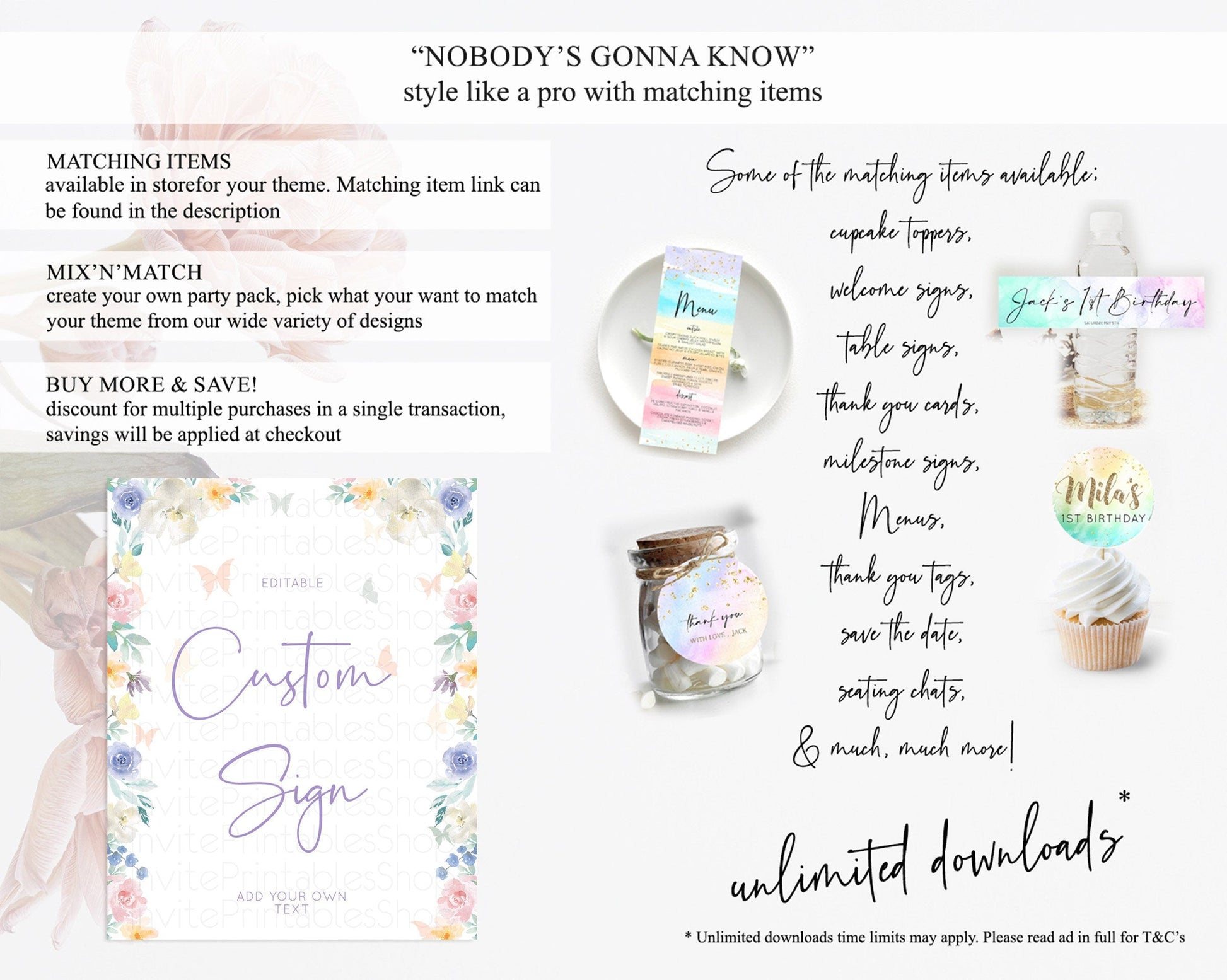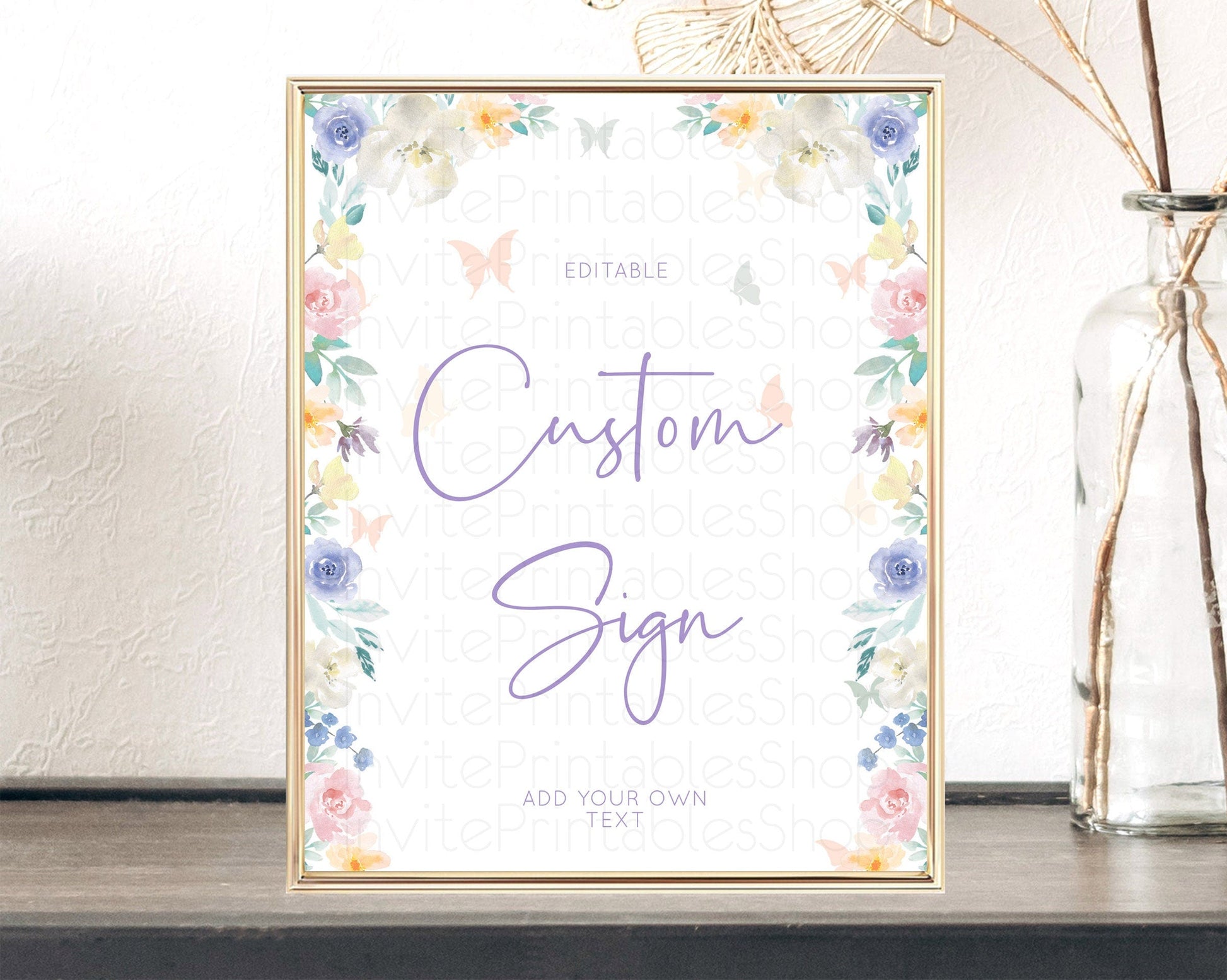 Wildflower Floral Table Sign Decor Secret Garden Sign Template Pastel Floral Garden Party Boho Flowers Birthday Baby Shower Wedding D10710