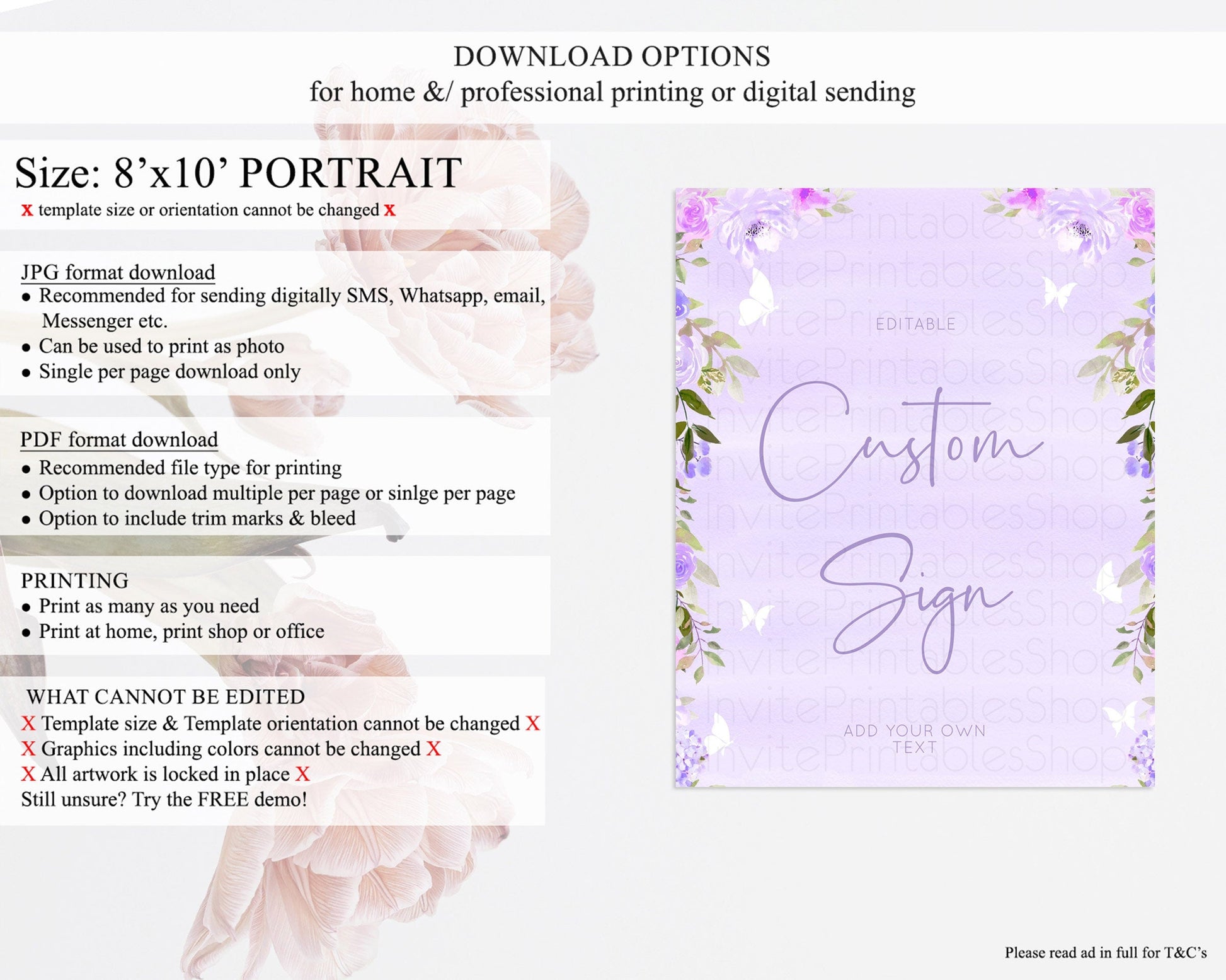 Wildflower Floral Table Sign Decor Secret Garden Sign Template Pastel Floral Garden Party Boho Flowers Birthday Baby Shower Wedding D10719