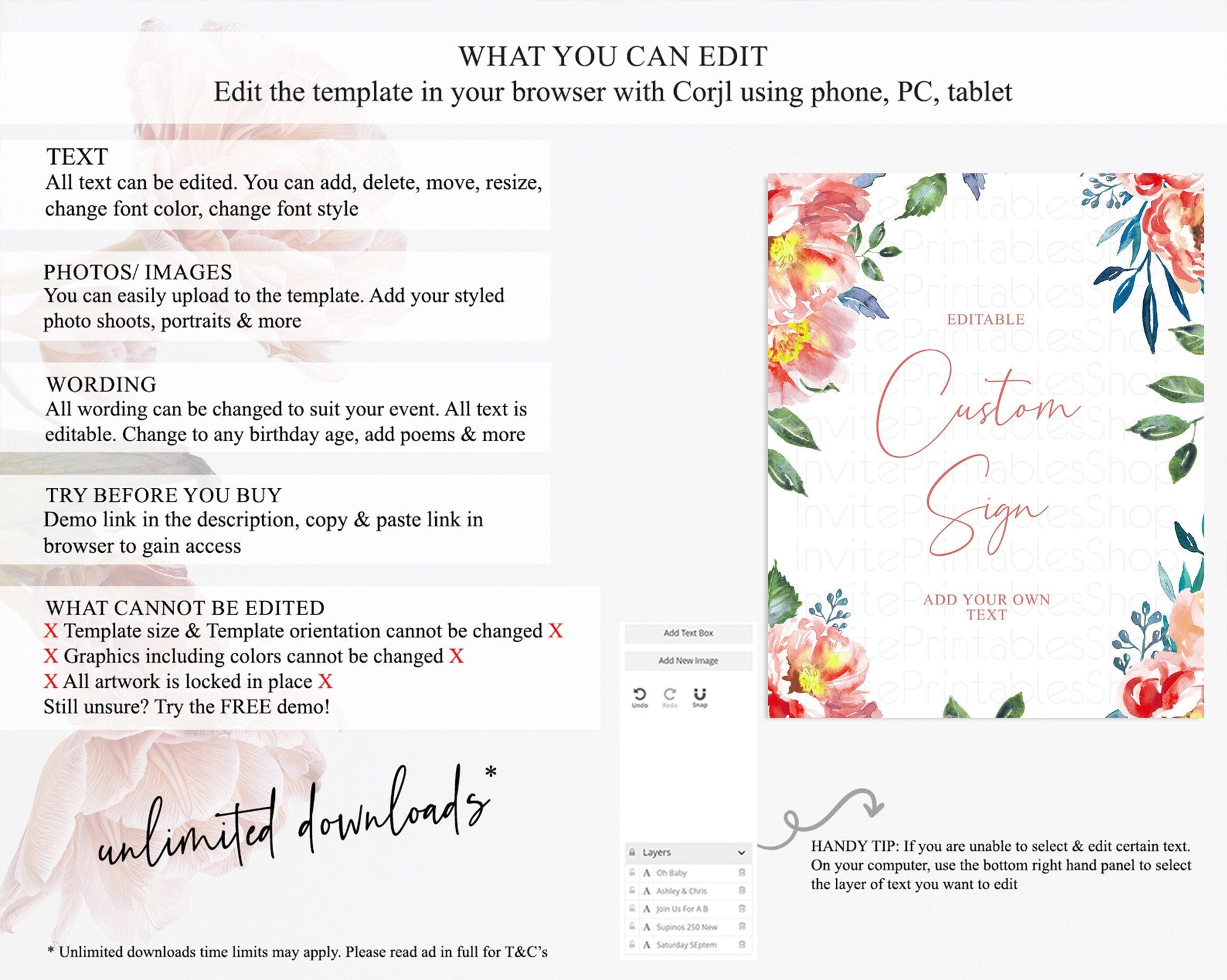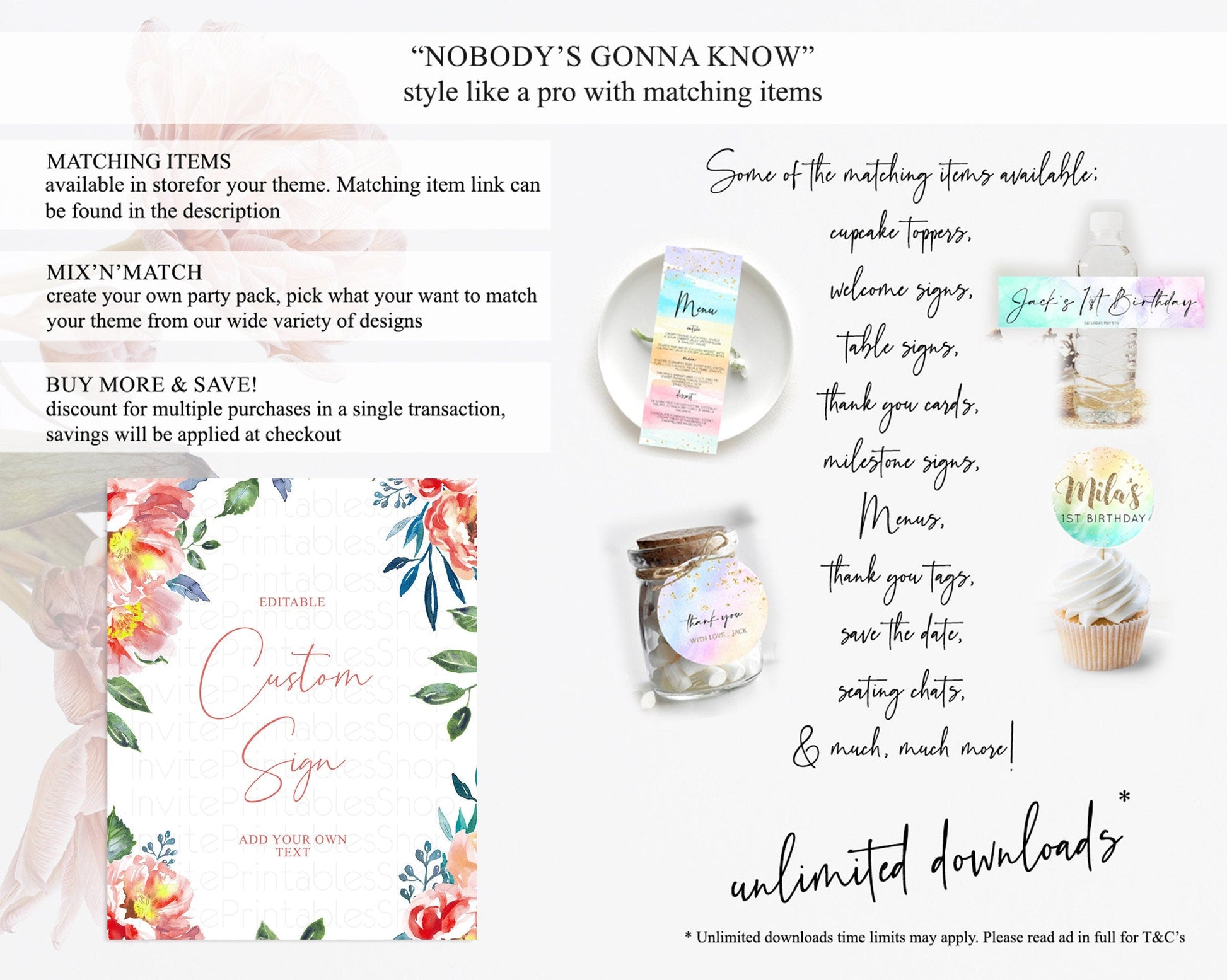 Wildflower Floral Table Sign Decor Secret Garden Sign Template Pastel Floral Garden Party Boho Flowers Birthday Baby Shower Wedding D10751