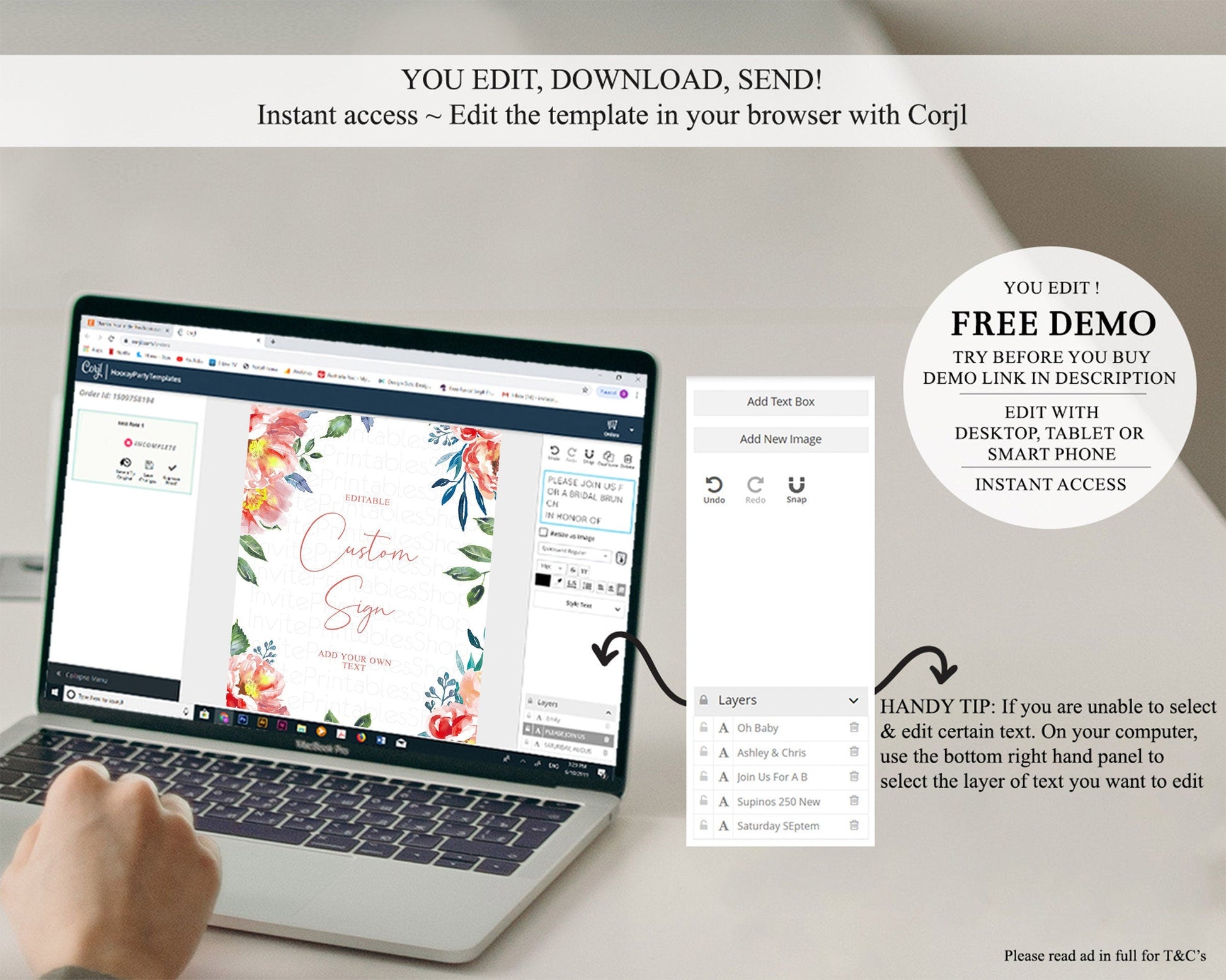 • After purchase, Corjl emails your editing link. Allow up to 15 minutes for delivery.