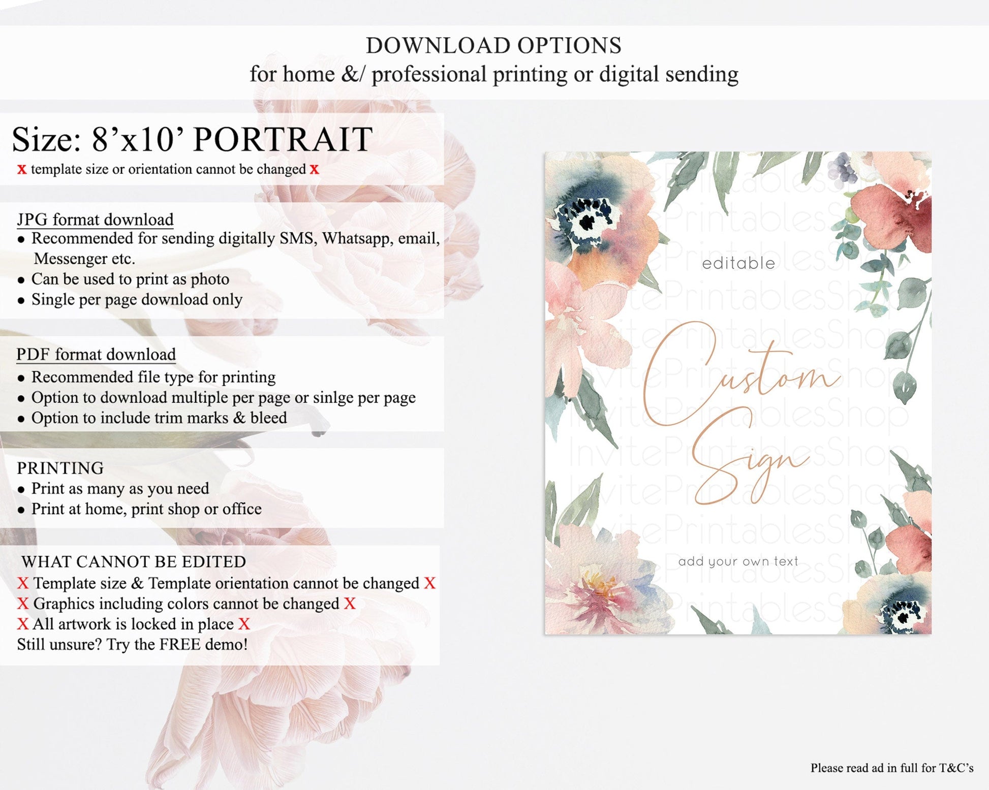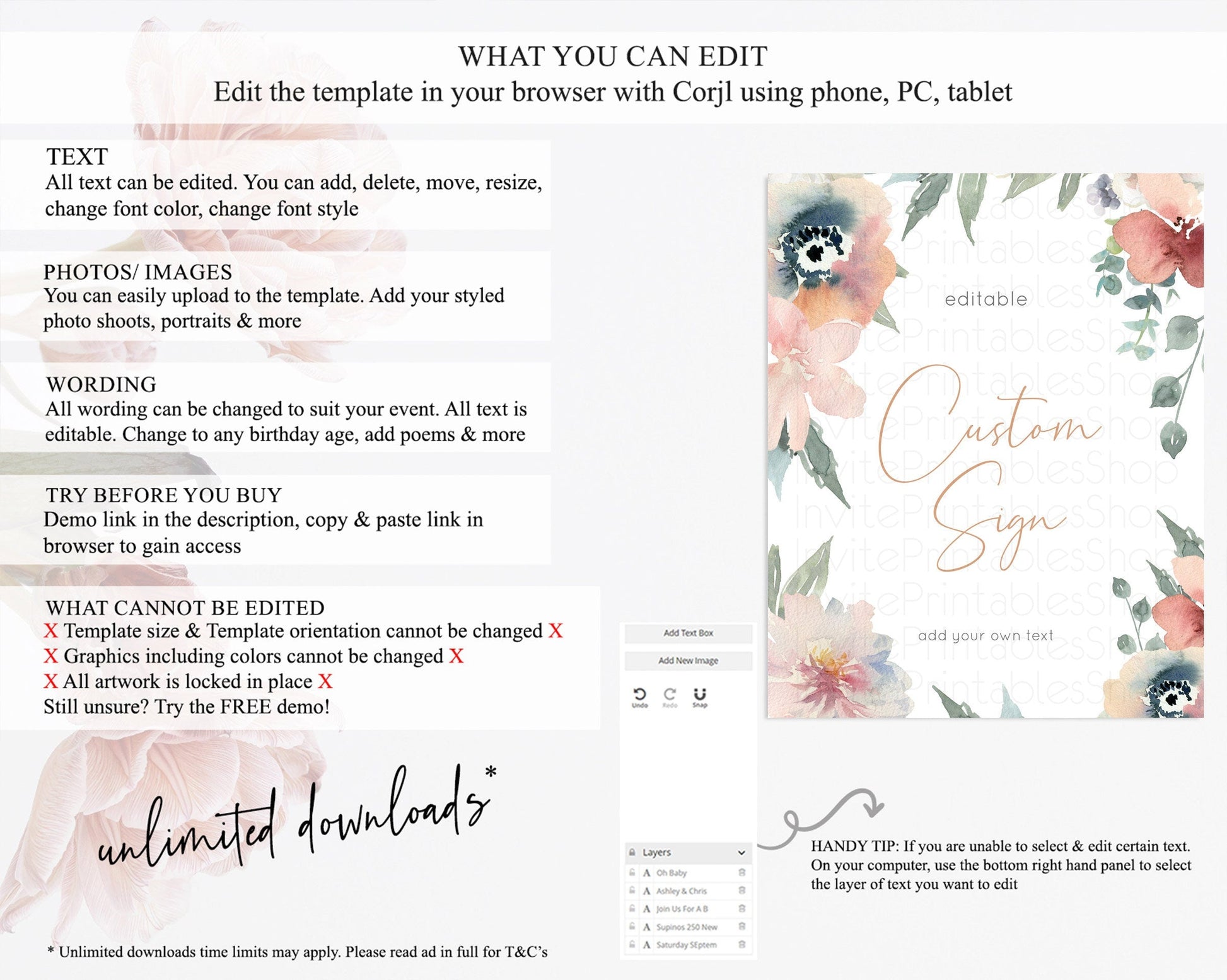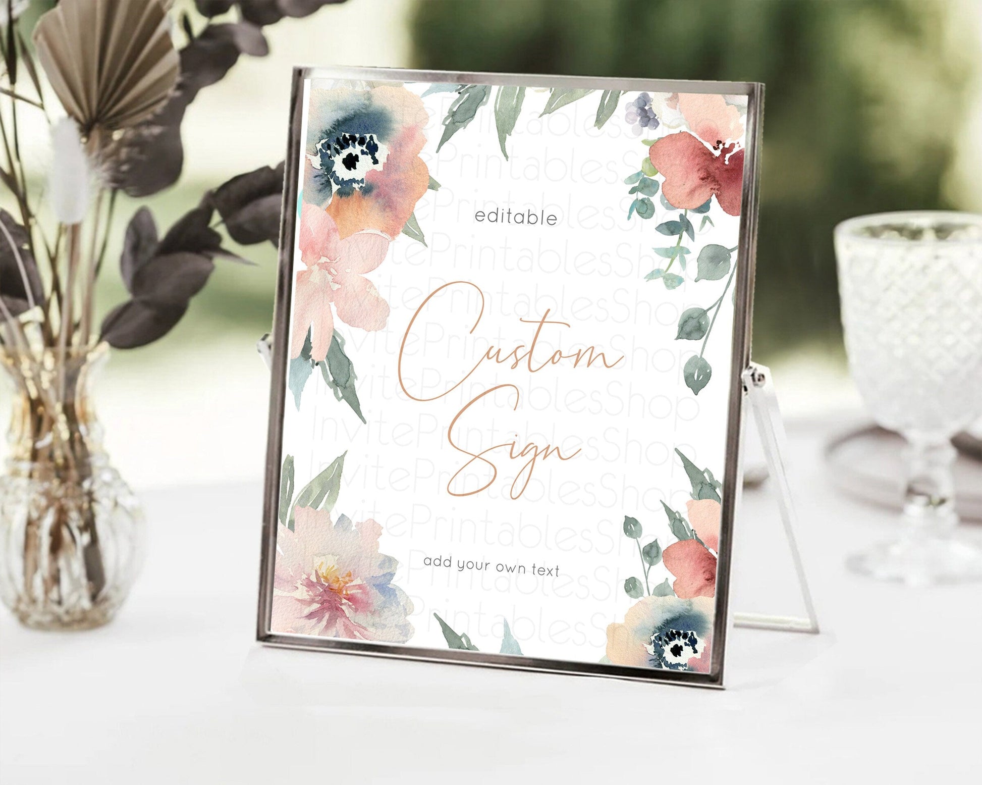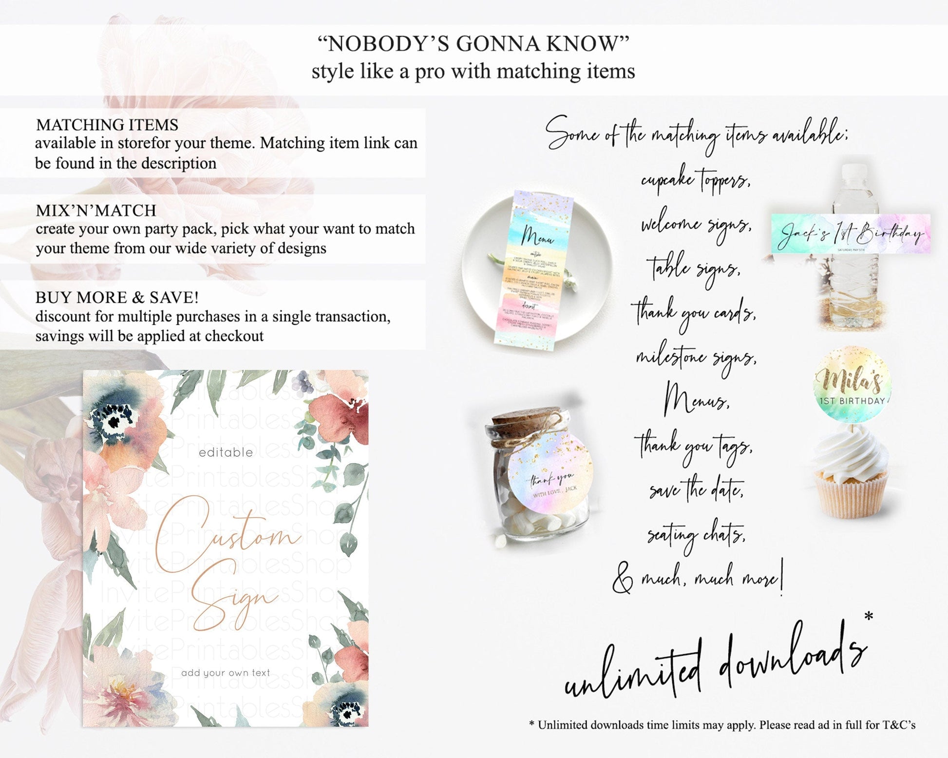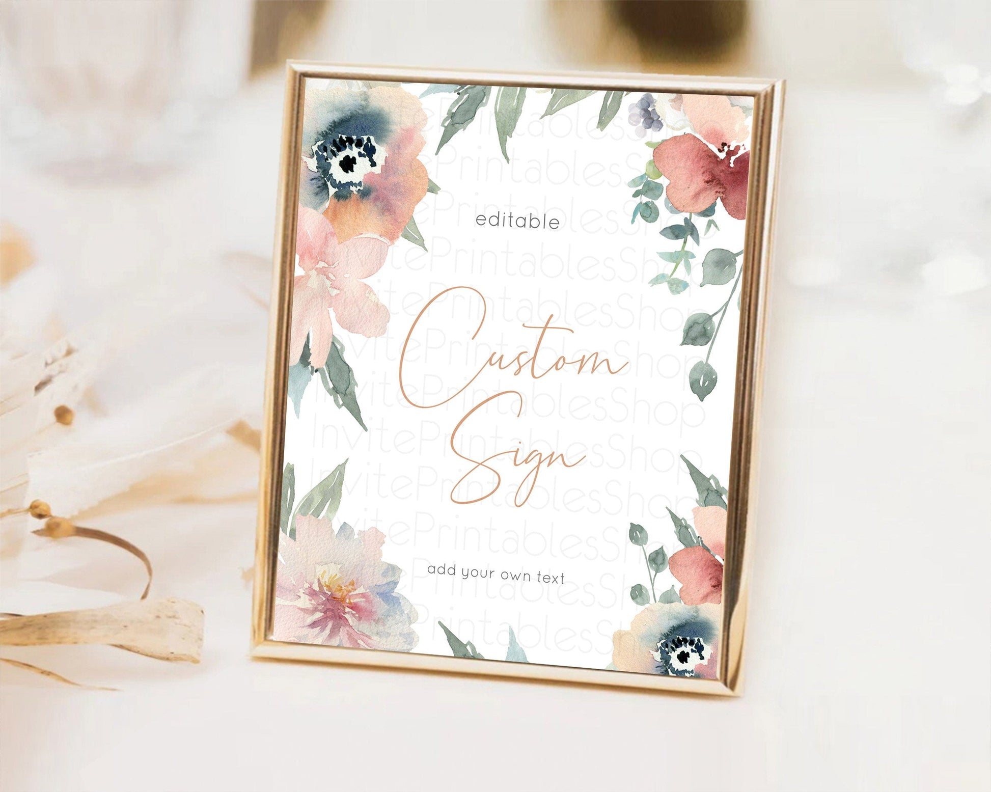 Wildflower Floral Table Sign Decor Secret Garden Sign Template Pastel Floral Garden Party Boho Flowers Birthday Baby Shower Wedding D10787