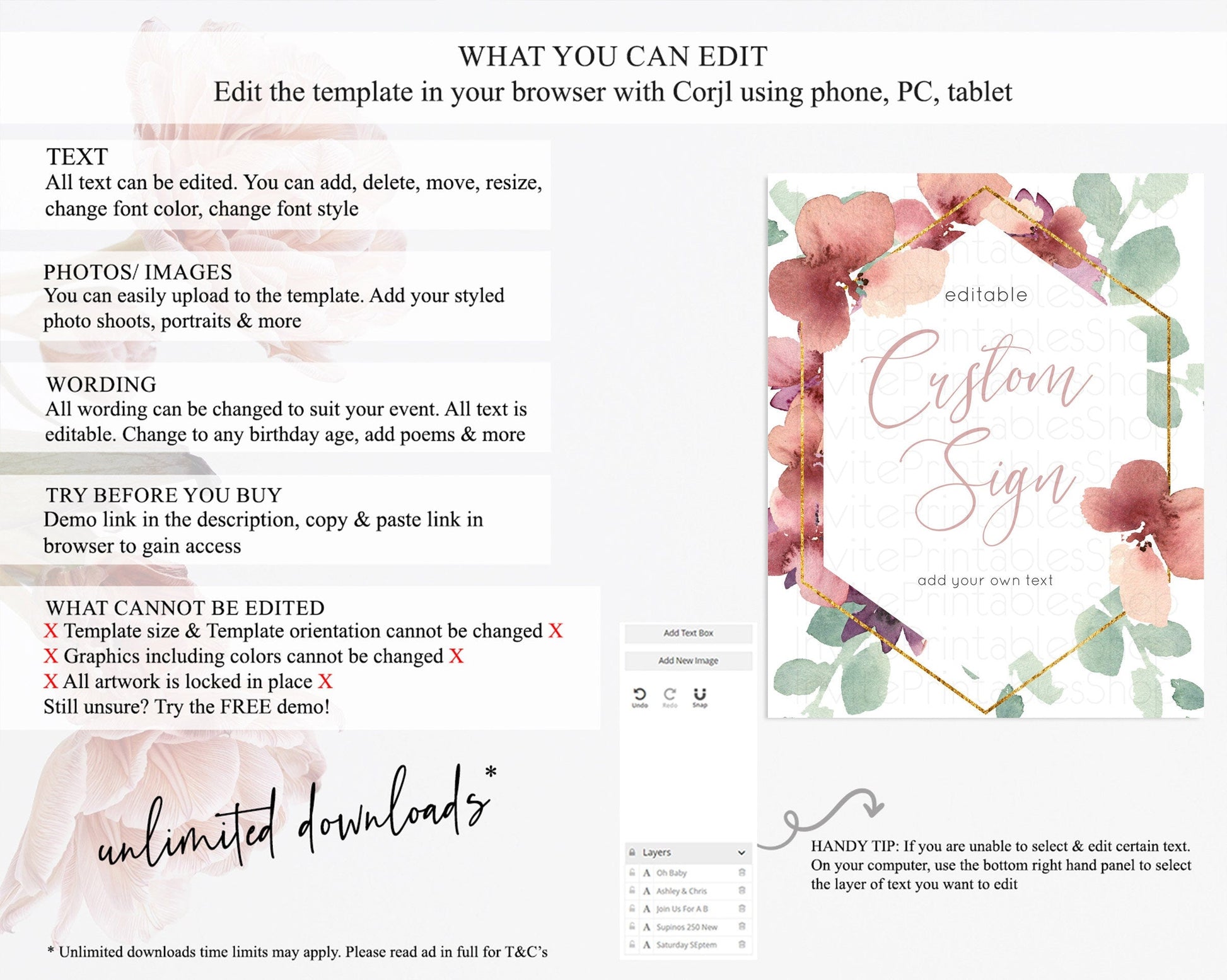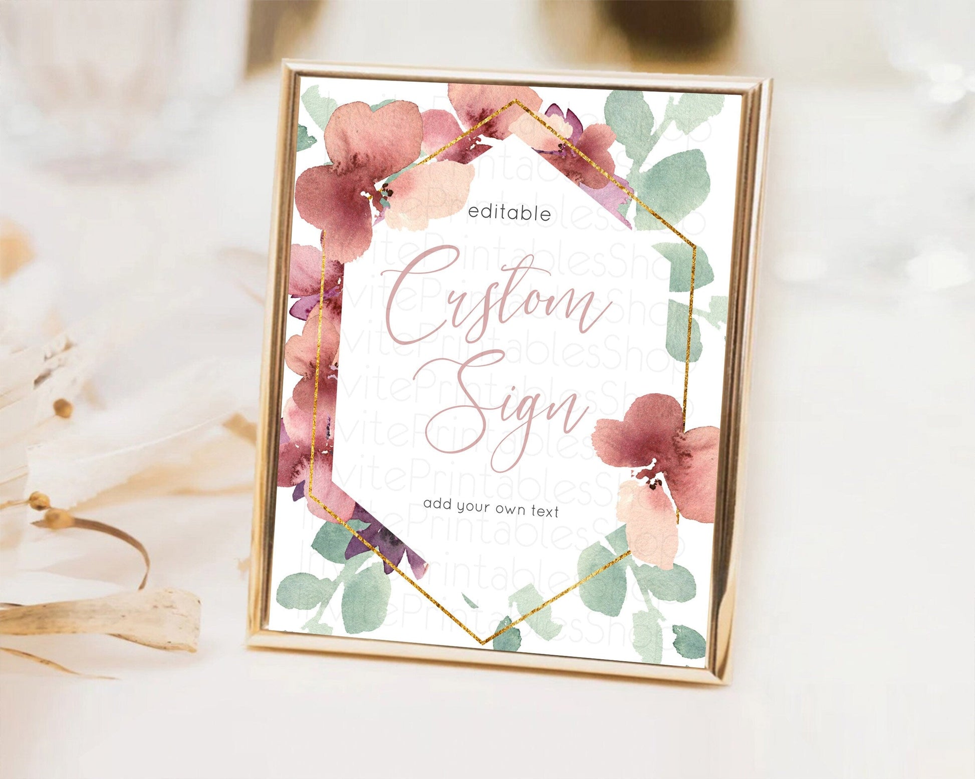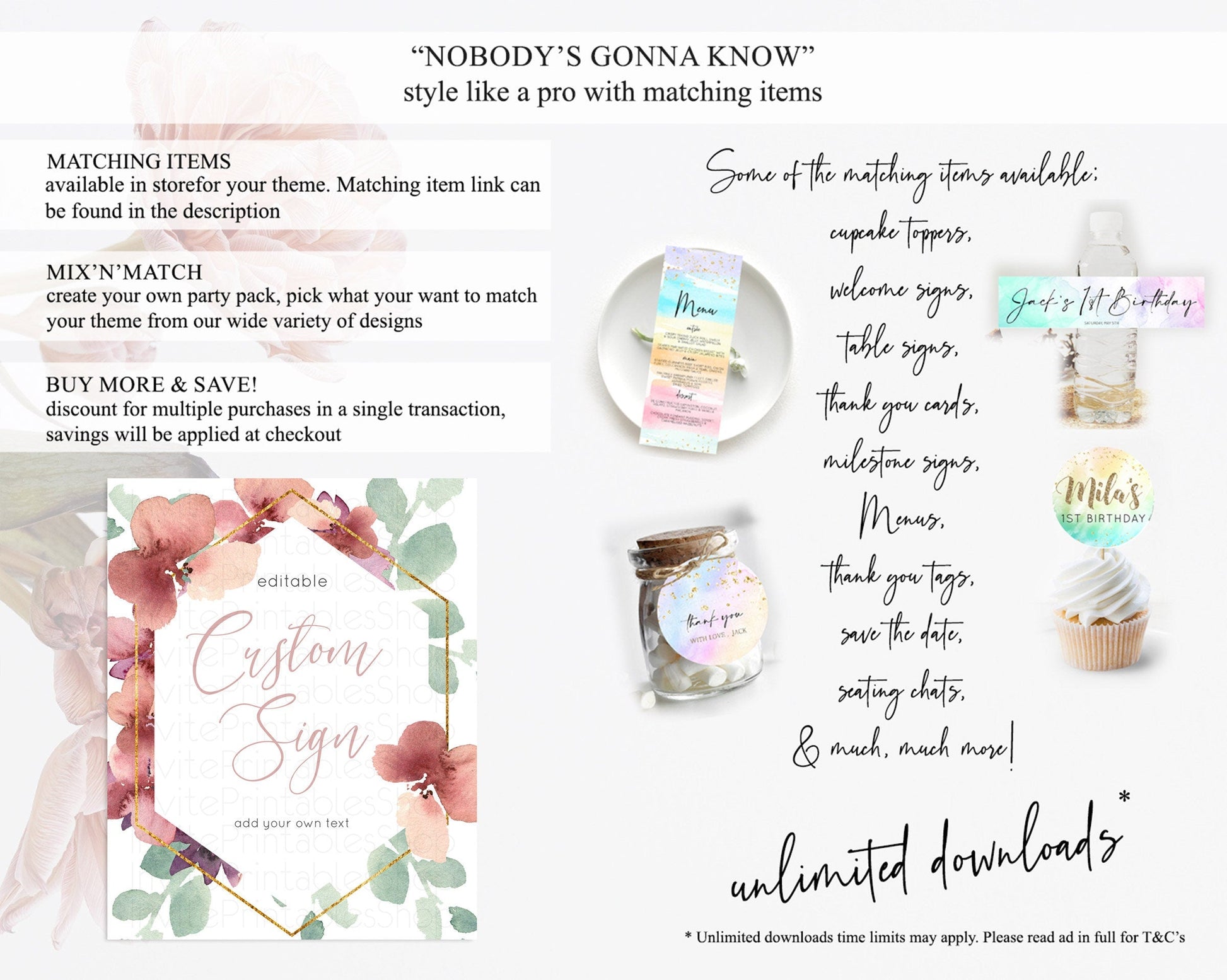 Wildflower Floral Table Sign Decor Secret Garden Sign Template Pastel Floral Garden Party Boho Flowers Birthday Baby Shower Wedding D10964