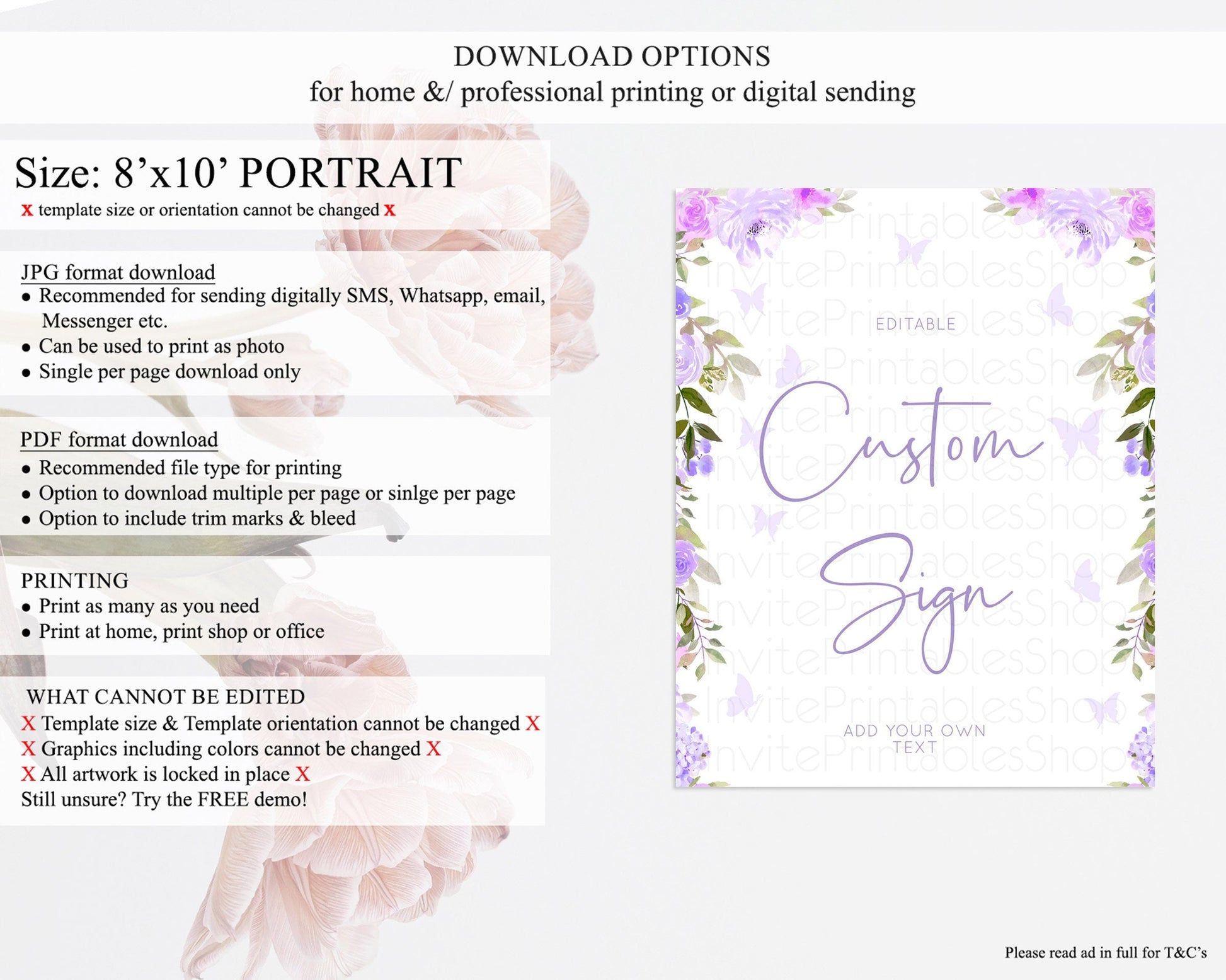 • Template size & orientation cannot be changed. Please use the demo link to confirm this product suits your needs.