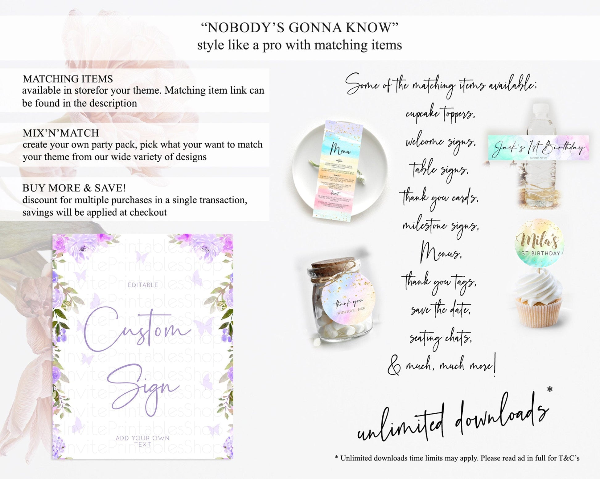 Wildflower Floral Table Sign Decor Secret Garden Sign Template Pastel Floral Garden Party Purple Flowers Birthday Baby Shower Wedding D10719